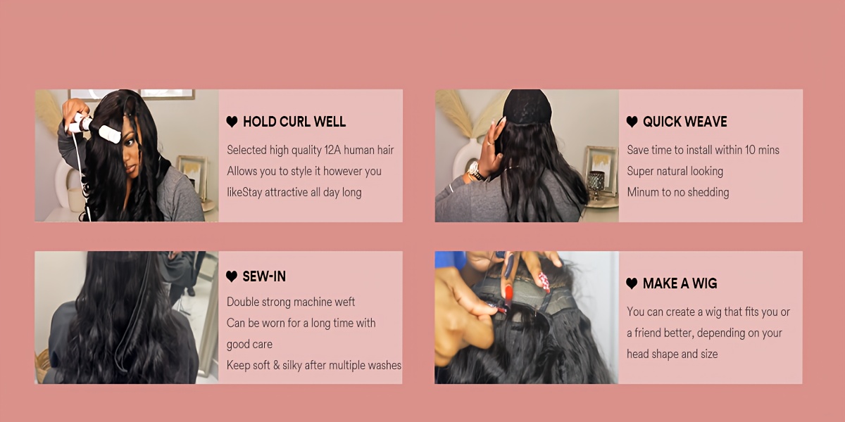 Please be aware that you can cut the hair weft into smaller sections prior to installation. Make sure to secure the weft with glue to minimize shedding. This will allow you to wear it comfortably in everyday situations, whether you're out and about, on a date, at a wedding, at a party, or traveling, making you the center of attention.