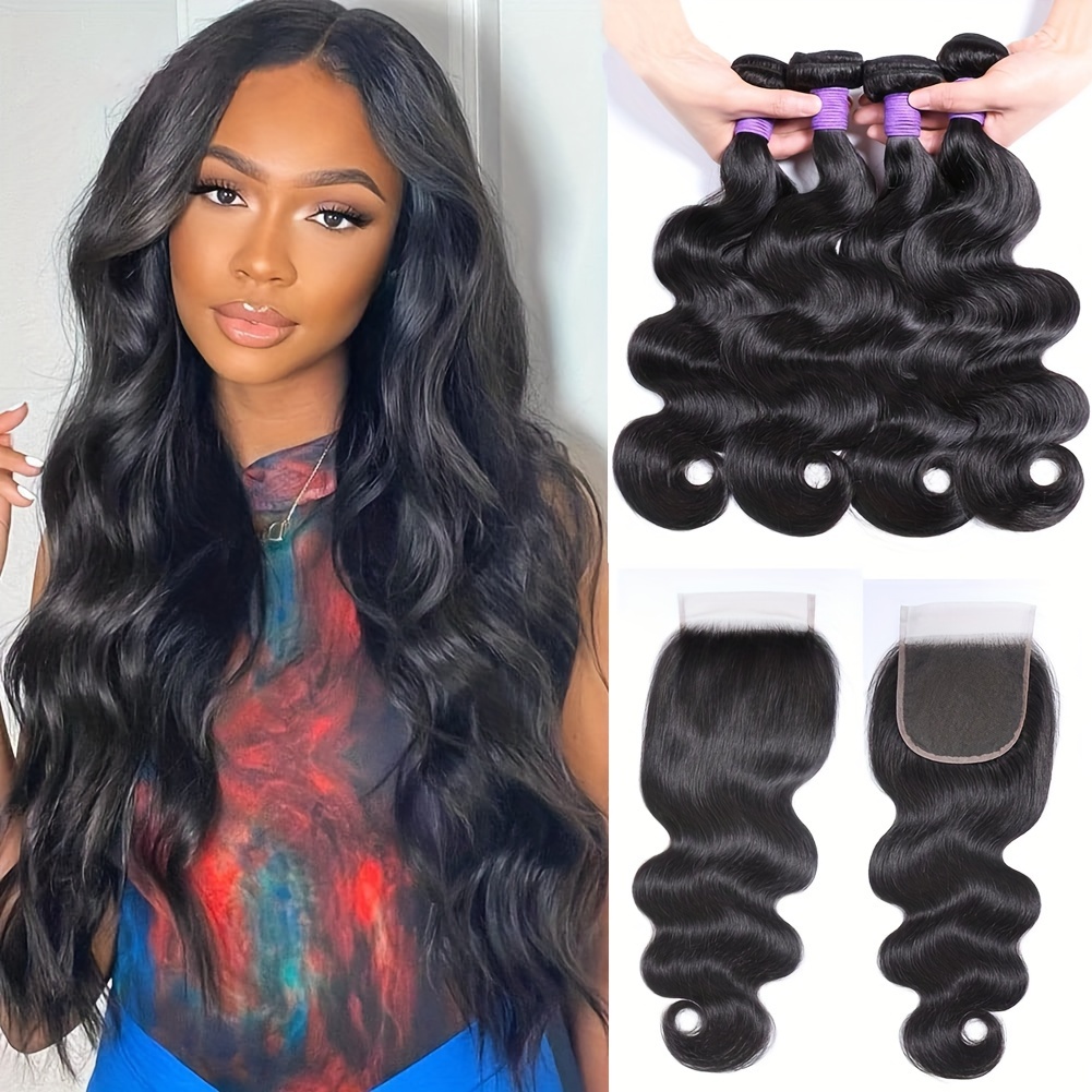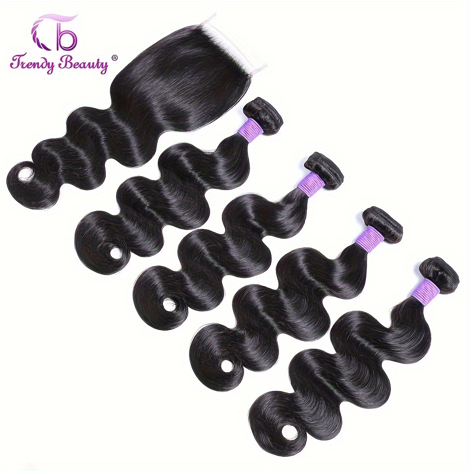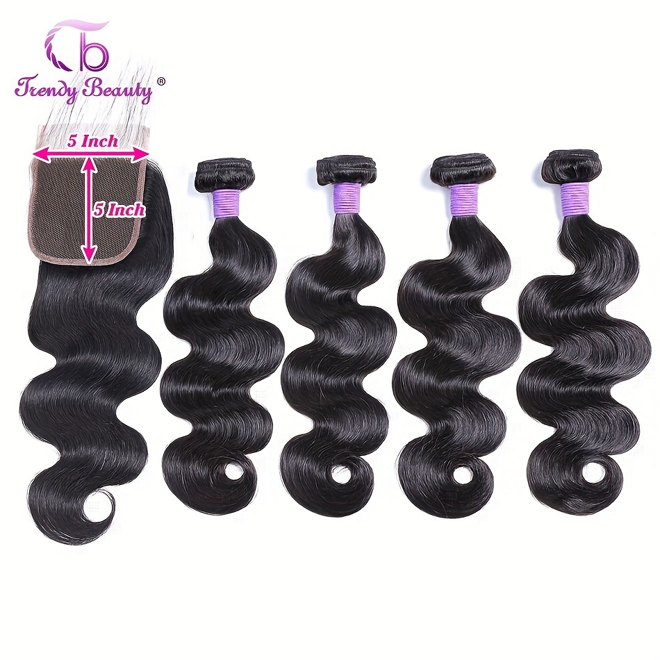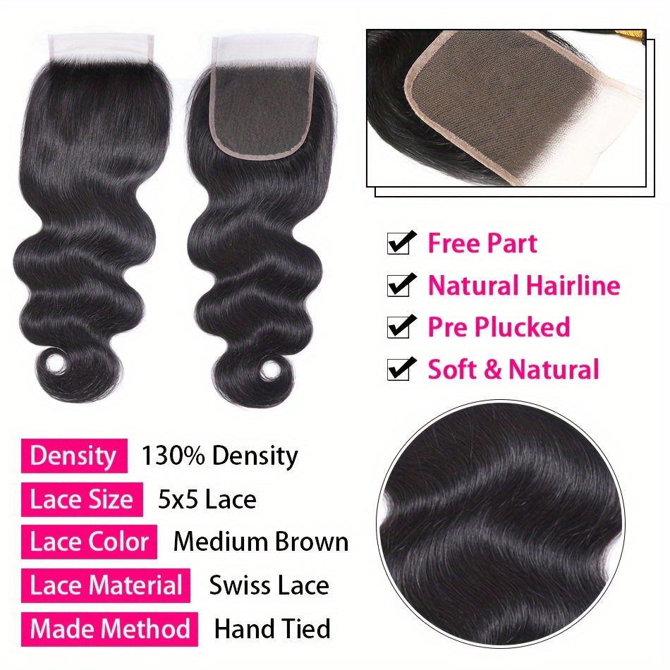 Peruvian Body Wave Virgin Hair Bundles With Lace 5x5 Closure Human Hair Unprocessed Body Wave Hair With Closure 5x5 Lace Free Part Natural Black Hair 5 Bundles In Total