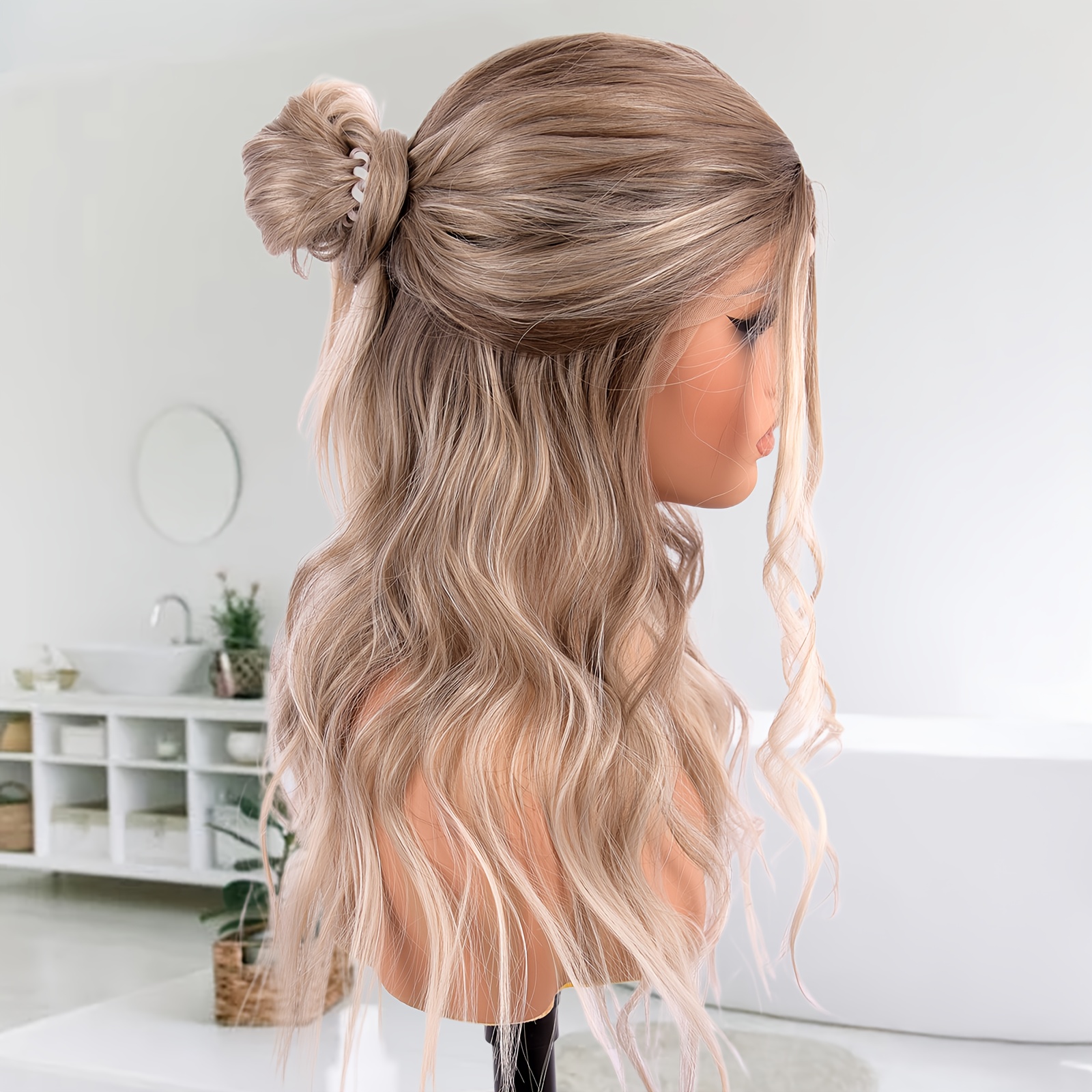 Realistic Glueless Lace Front Wig for Women - Brown Rooted Ash Blonde Body Wave 20" Shoulder Length, 130% Density Synthetic Hair with 13x4x1 Lace Area, Middle Part Elegant Unisex Wig for All Ethnicities, Versatile Hairpiece |