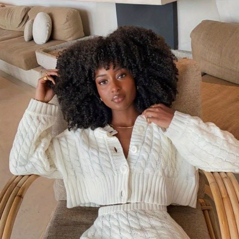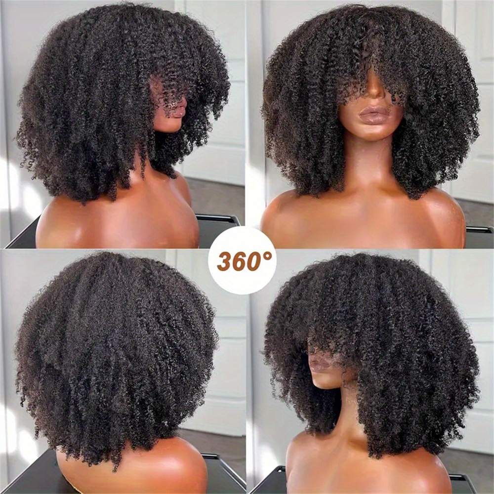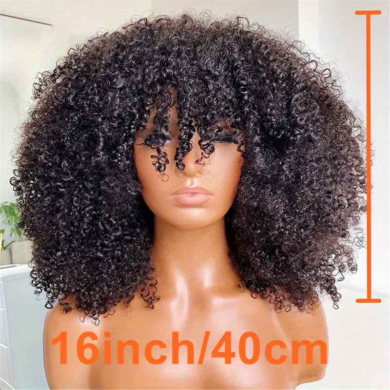 16" Soft & Fluffy Afro Kinky Curly Wig with Bangs - Natural Black Human Hair for Women, Perfect for Daily Wear, Parties, and Cosplay