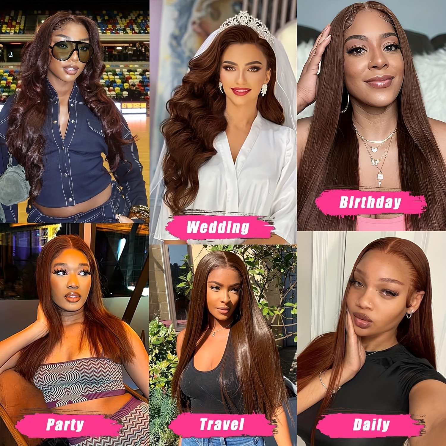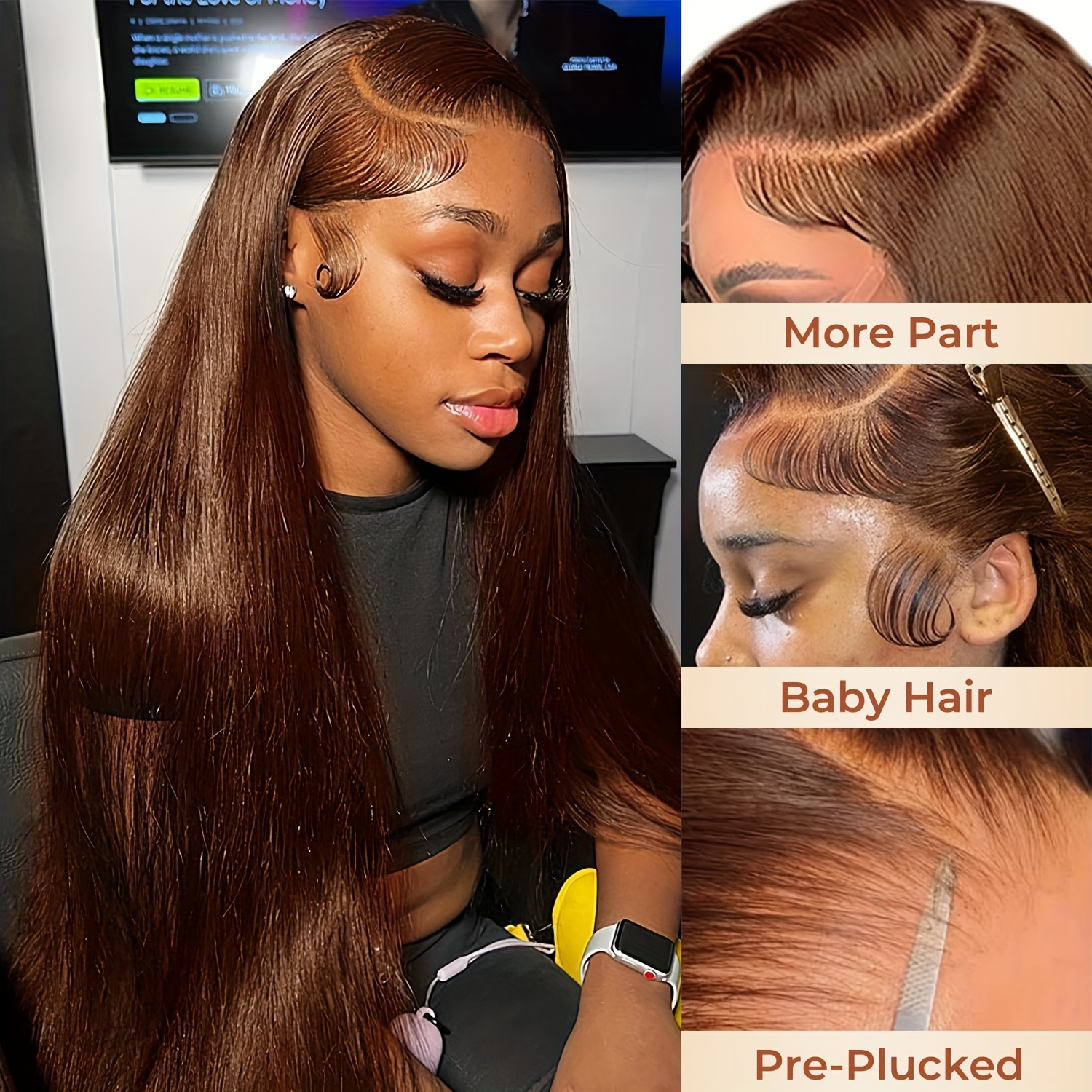250% Density Brazilian Virgin Human Hair Wig - Chocolate Brown Straight 13x6 HD Transparent Lace Front Wig for Women, Pre-Plucked with Baby Hair, Natural Look for All Ethnicities, Fashion Accessory | Sleek Hairstyle | Silky S