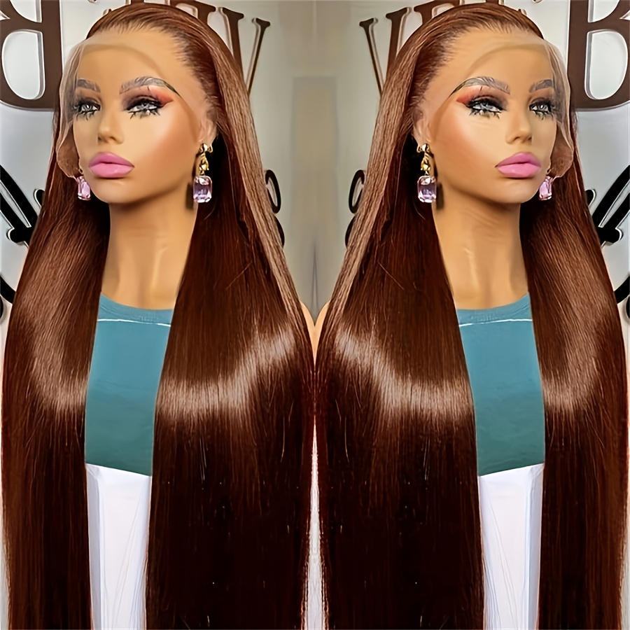 30-40 Inch Long Straight 13x4 Lace Front Wig for Black Women - Brazilian Remy Human Hair, Pre-Plucked Natural Hairline, Glueless HD Lace, Bone Straight, Full Coverage, Elegant Style