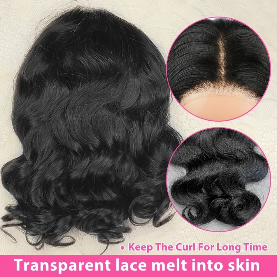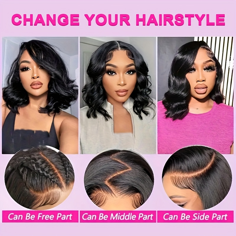 4x6 Lace Framing Short Wavy Bob Wig - Invisible Knots 3D Body Wave Human Hair Wig, 220 Density Shoulder Length Natural Look for Women, Elegant Style Fits All Ethnicities, Versatile Hairpiece, Sophisticated Hairpiece