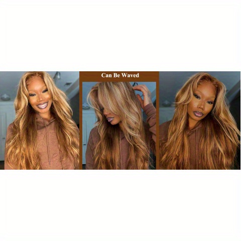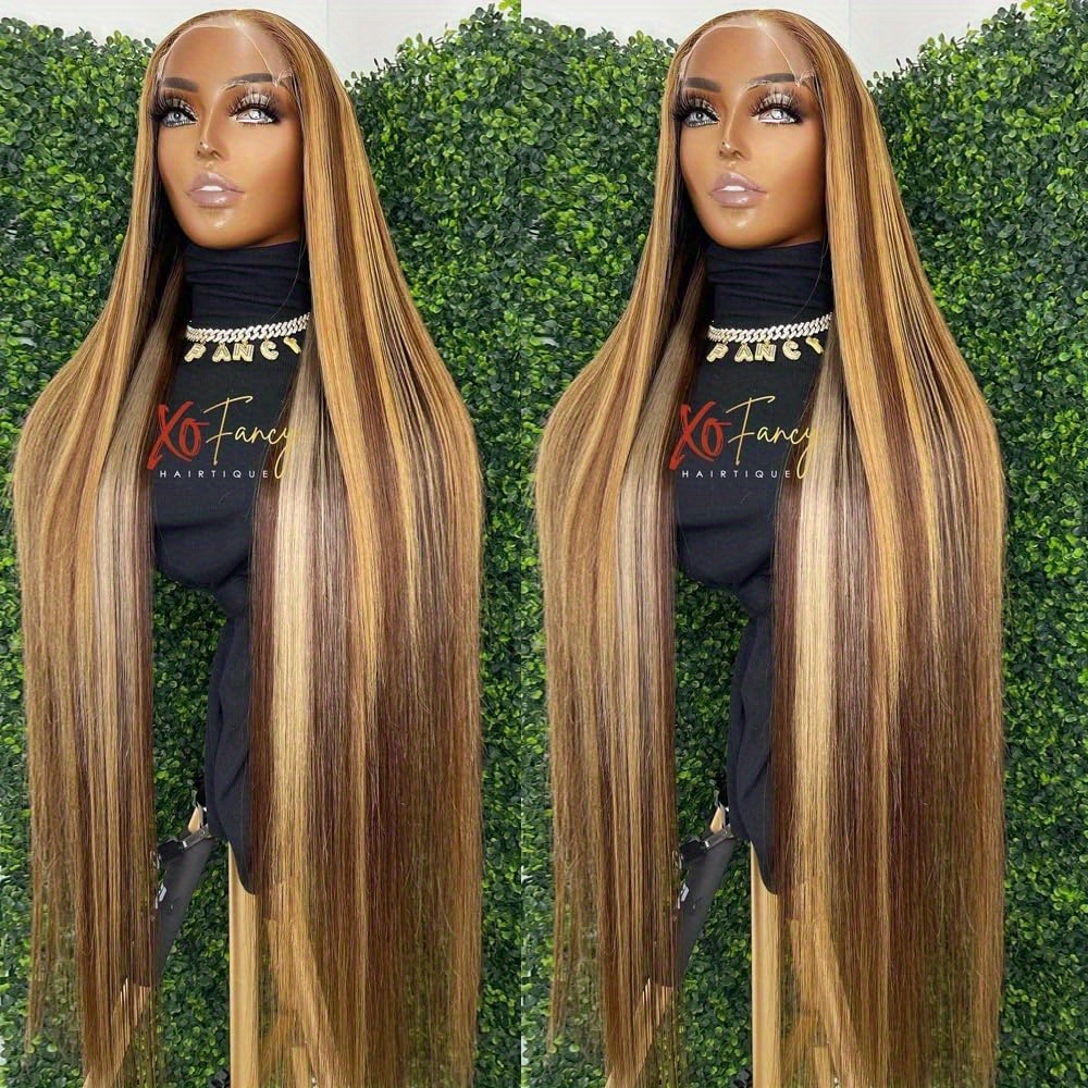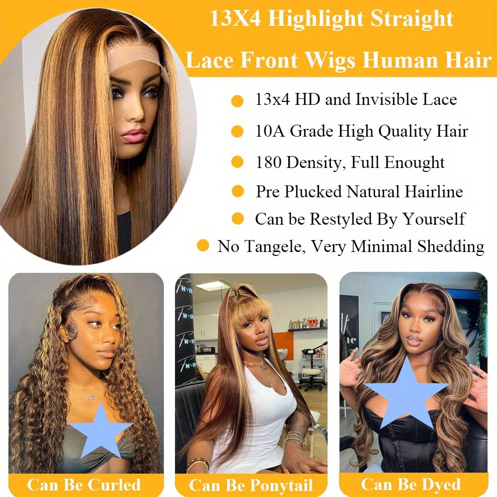 Honey Blonde 13X4 HD Lace Front Wig Human Hair Highlight Straight Lace Frontal Wigs Human Hair Pre Plucked 28 Inch 180 Density Ombre Wigs for Women P4/27 Colored Glueless Wig with Baby Hair