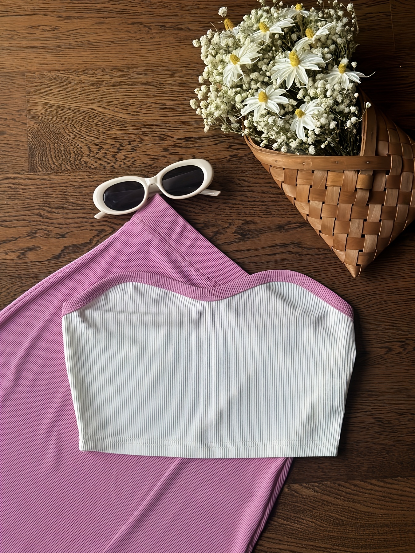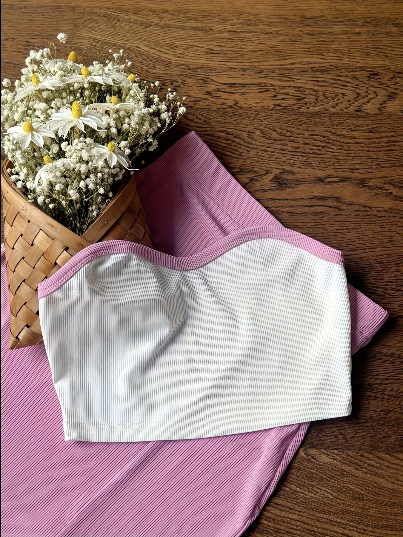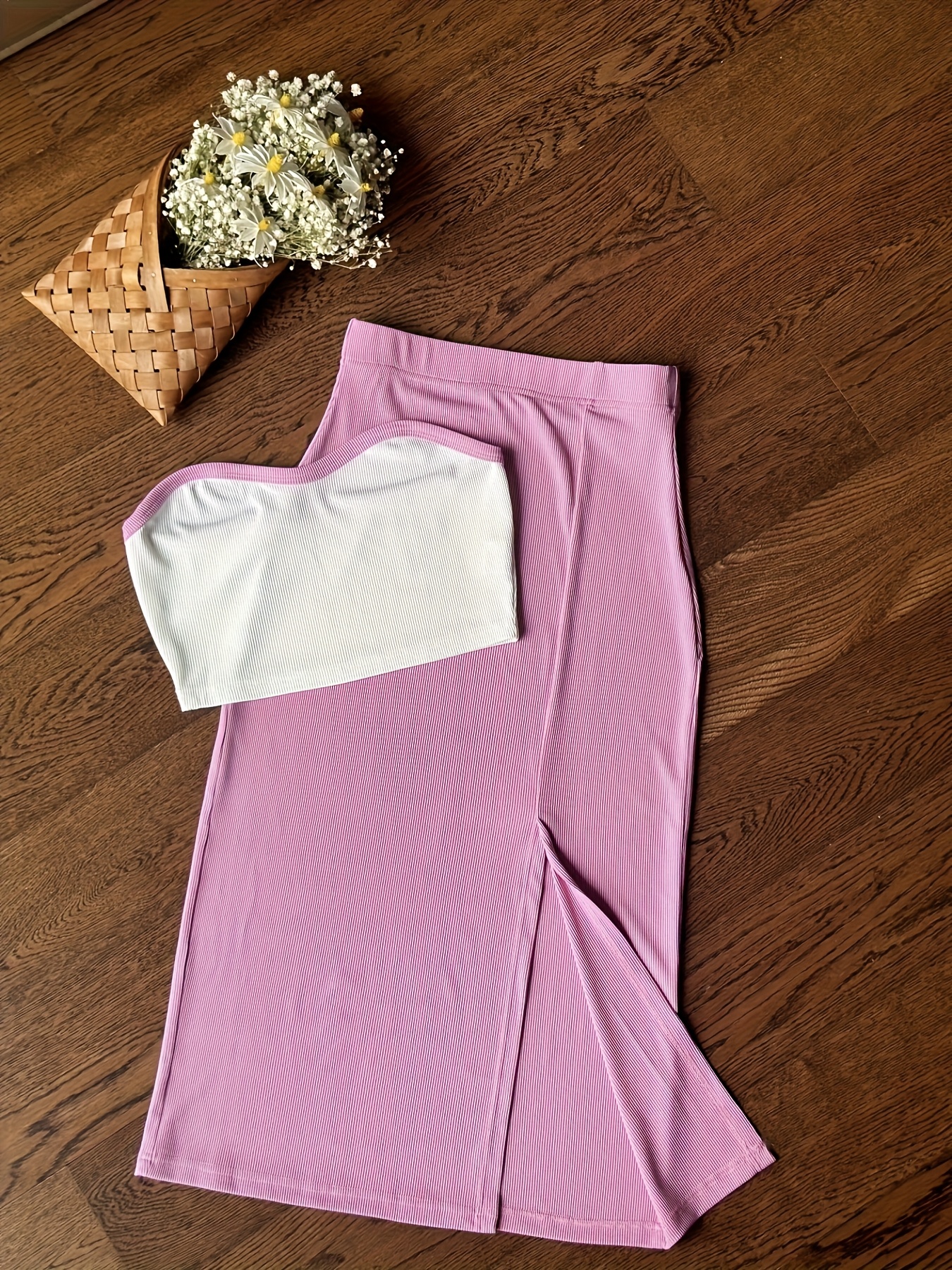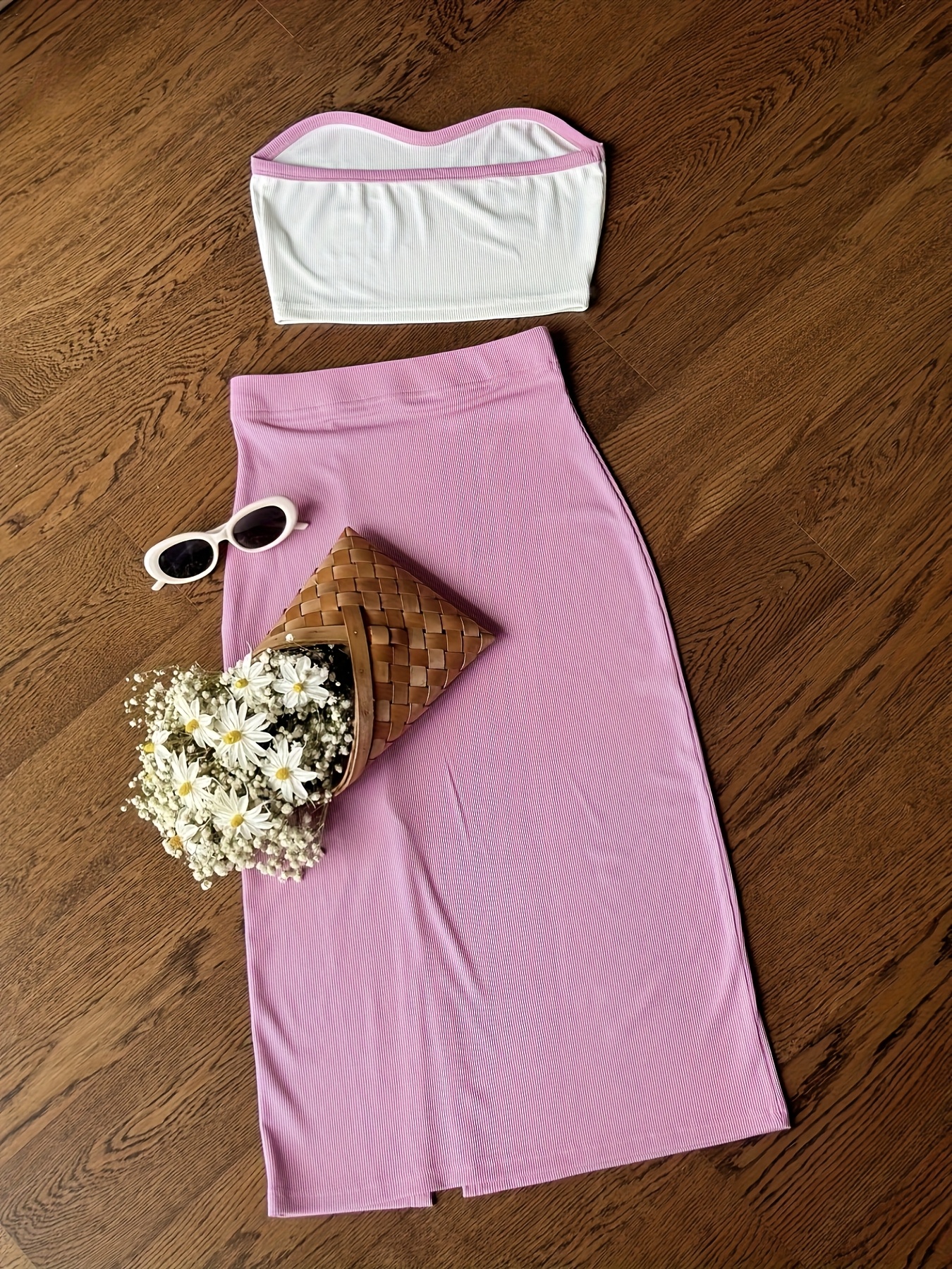 2pcs Women's Elegant Off-Shoulder Tube Top & Flared Skirt Set - Solid Color, Smooth Polyester Fabric, Medium Stretch - Spring/Summer Essentials | Machine Wash Safe | Contrast Binding Details