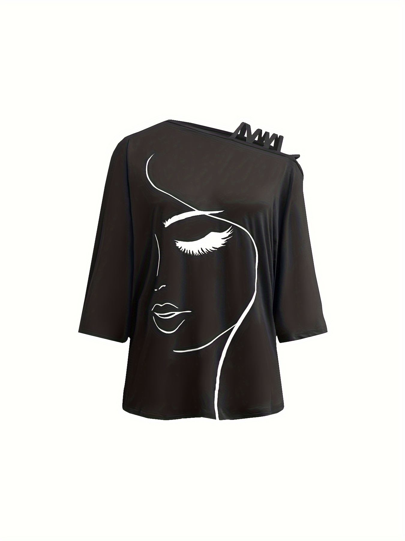Figure Print Cold Shoulder -Shirt, Casual Half Sleeve T-Shirt For Spring & Summer, Women's Clothing