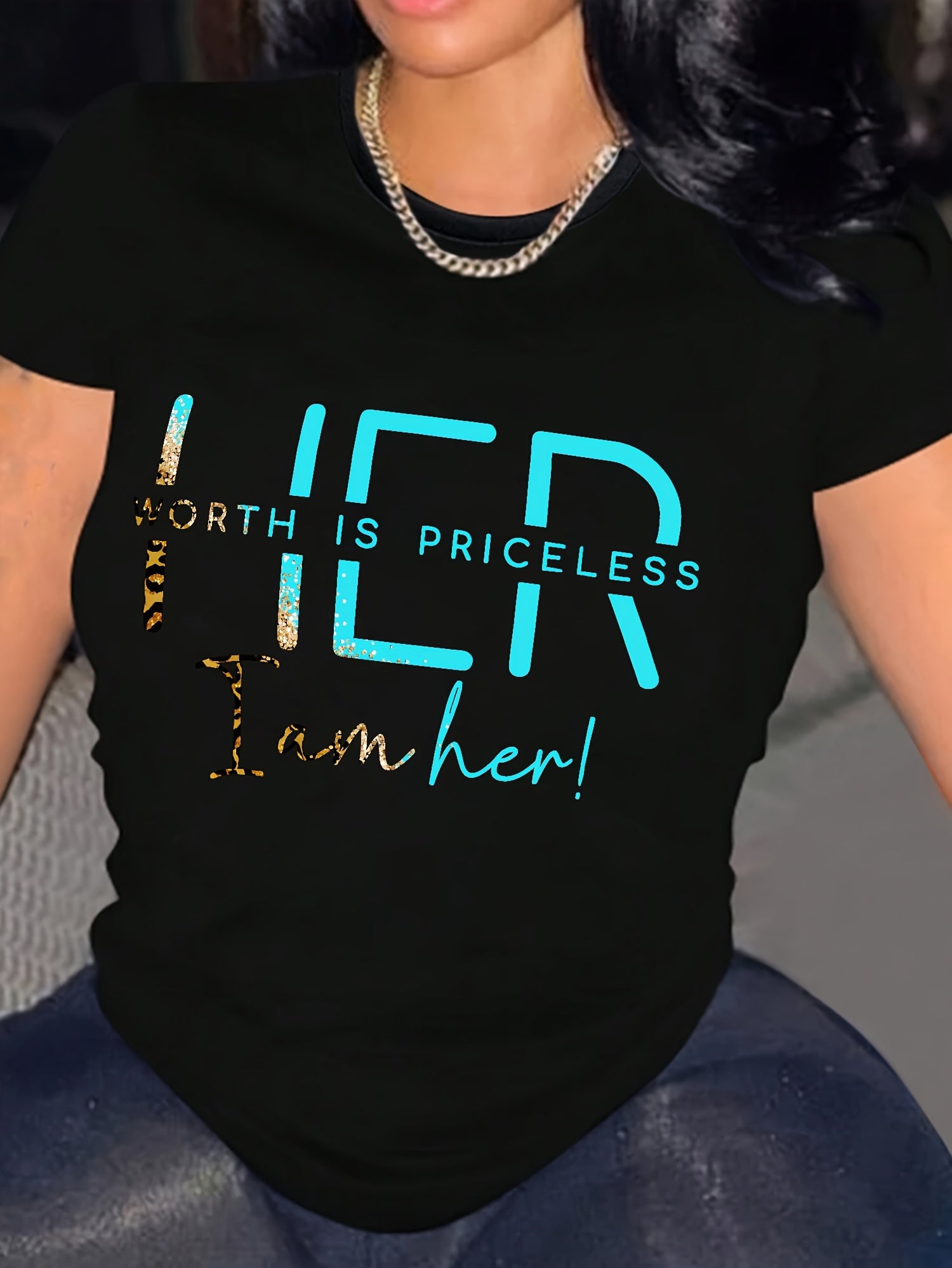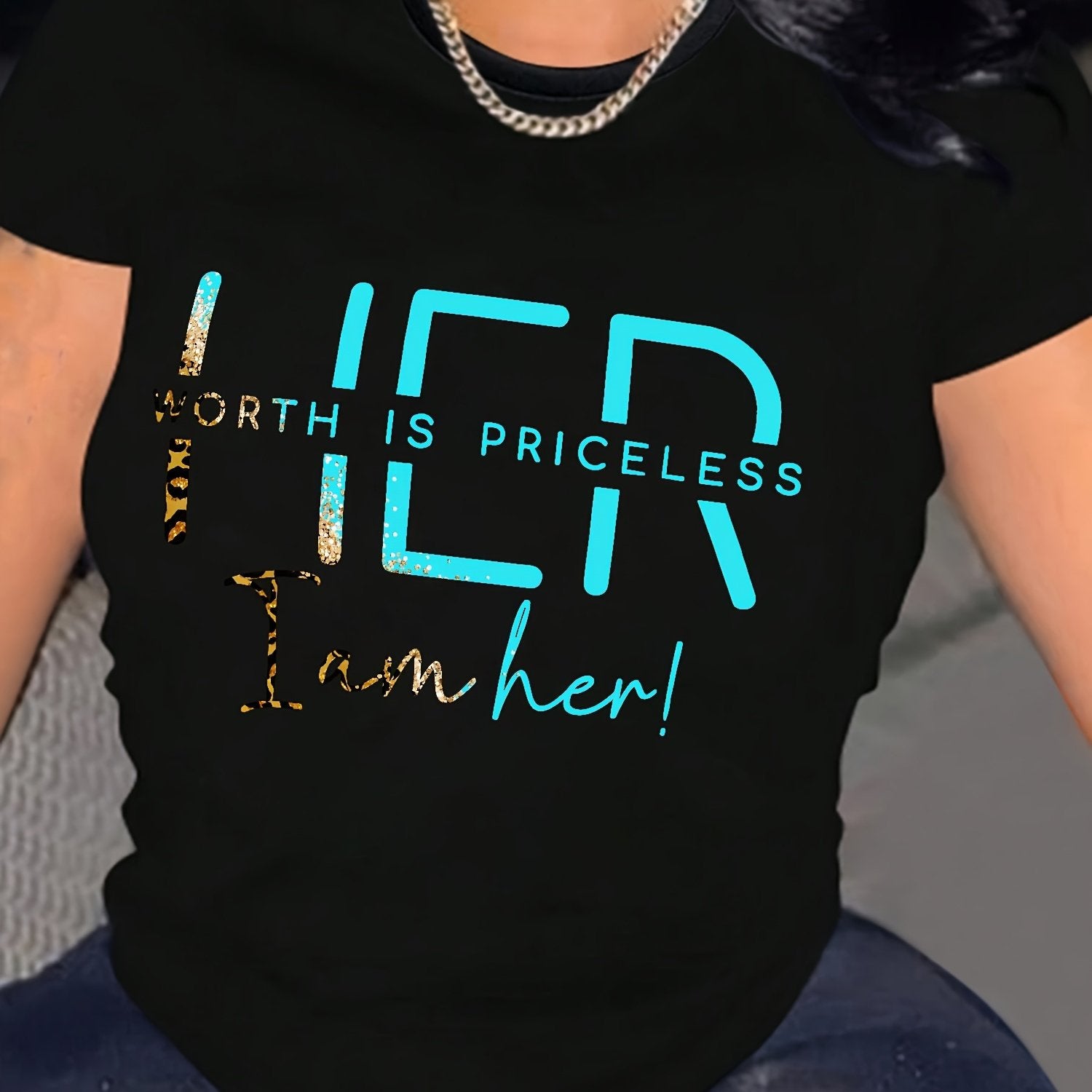 Women's Breathable Letter Print T-Shirt - Soft, Stretchy Crew Neck with Short Sleeves for Casual Spring & Summer Wear, YOUNG Style, Spring/Summer/Autumn