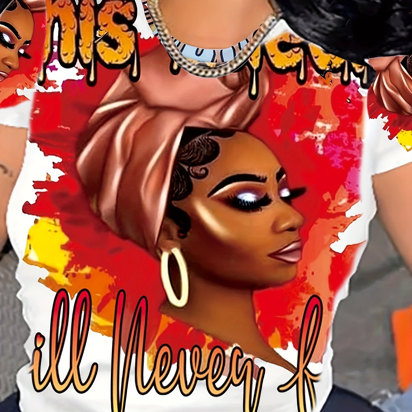 Women's Empowerment Portrait Print T-Shirt - "His Heart Belongs to Her" White High-Stretch Regular Fit Short Sleeve Round Neck Top for Spring Summer Fall Casual Wear, Seasonal Fashion, Bold Text Design, Quality Construction,