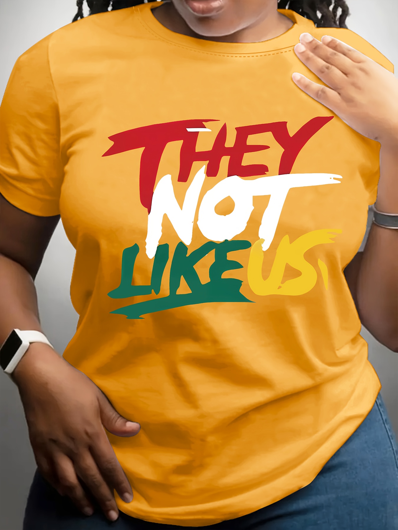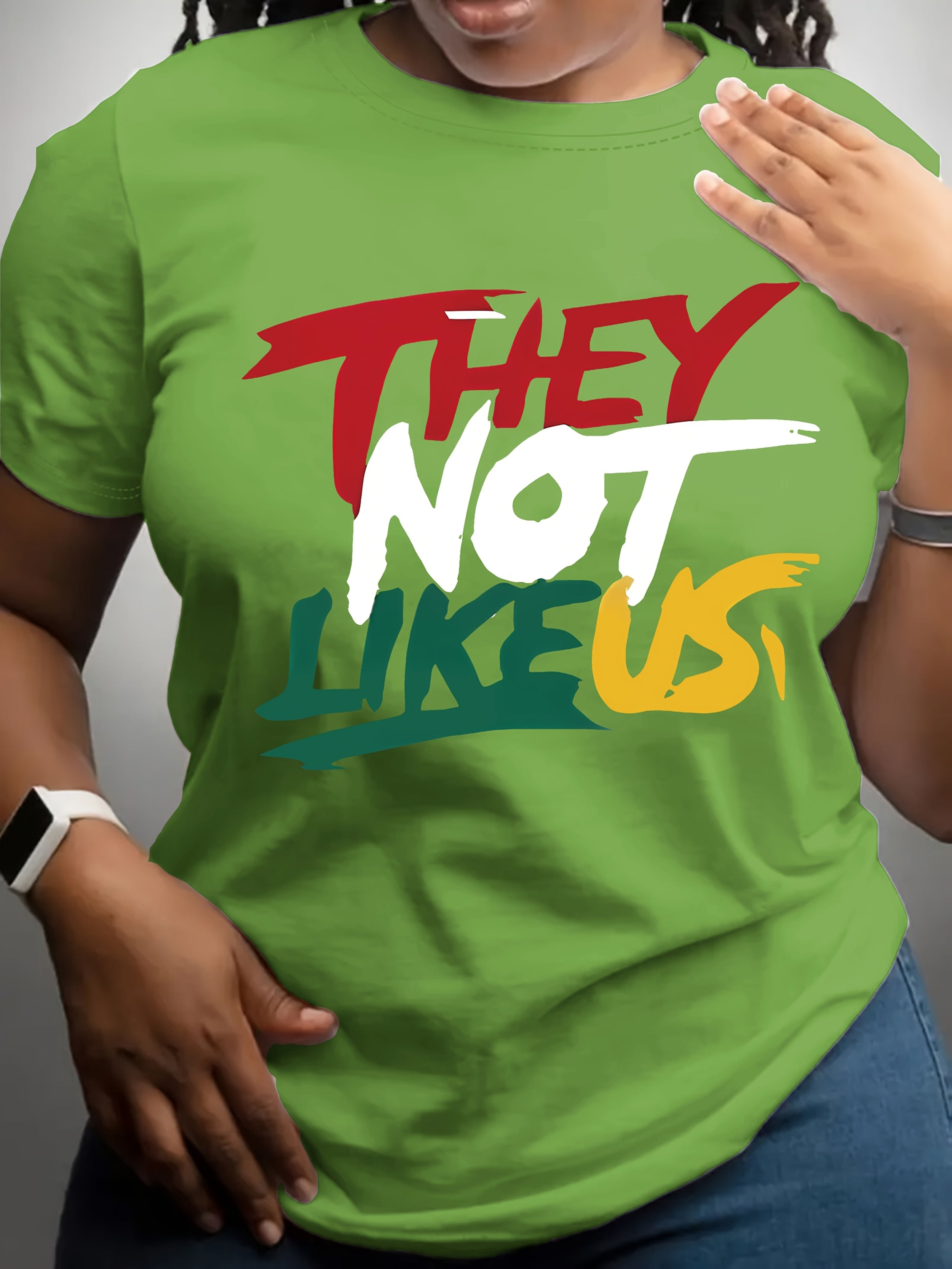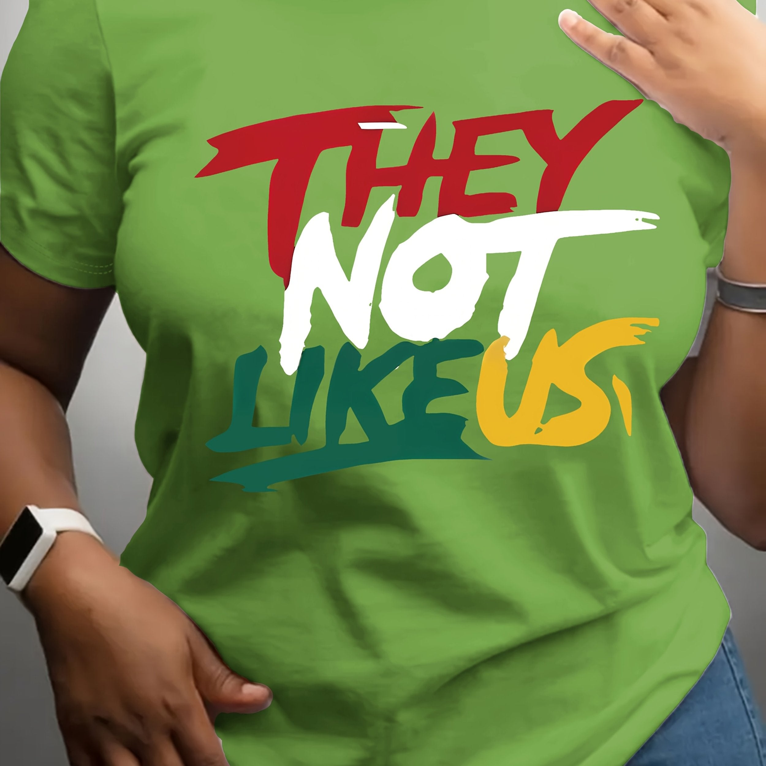 Women's "THEY NOT LIKE US" Bold Letter Print T-Shirt - Vibrant Green Short Sleeve Crew Neck Casual Top, Machine Washable Regular Fit Tee for Spring & Summer