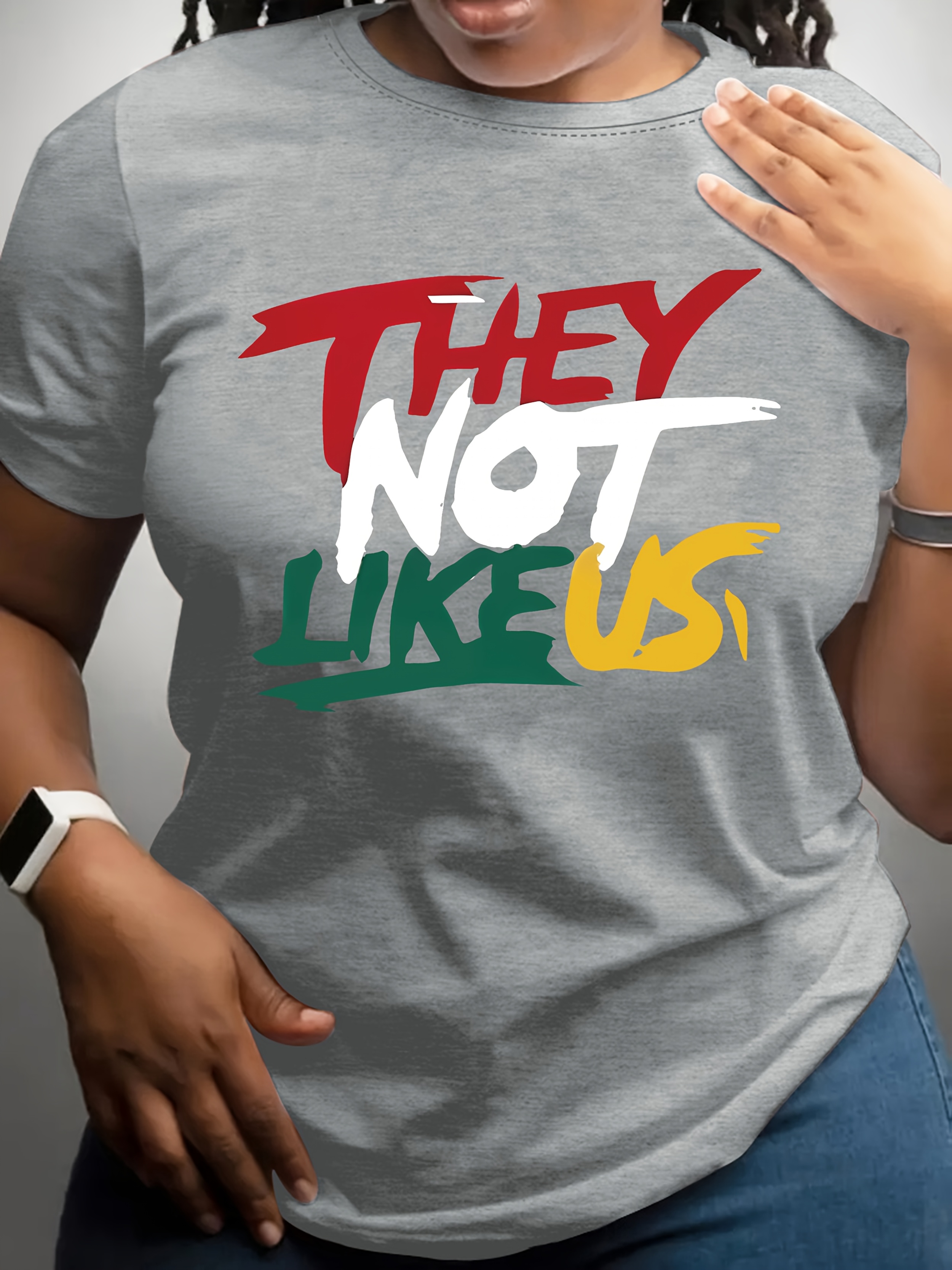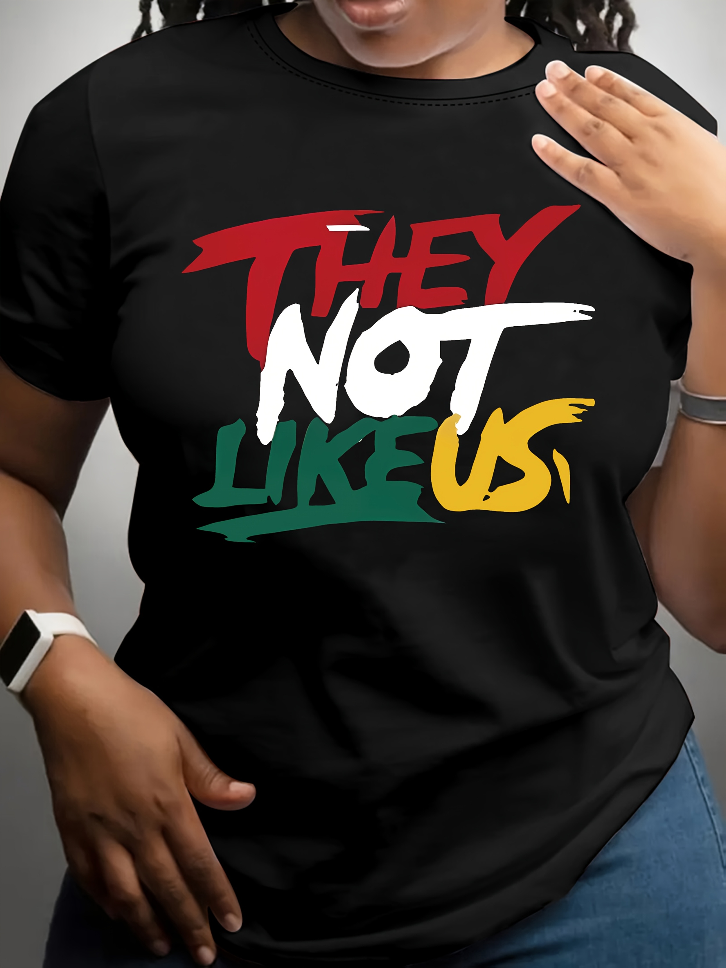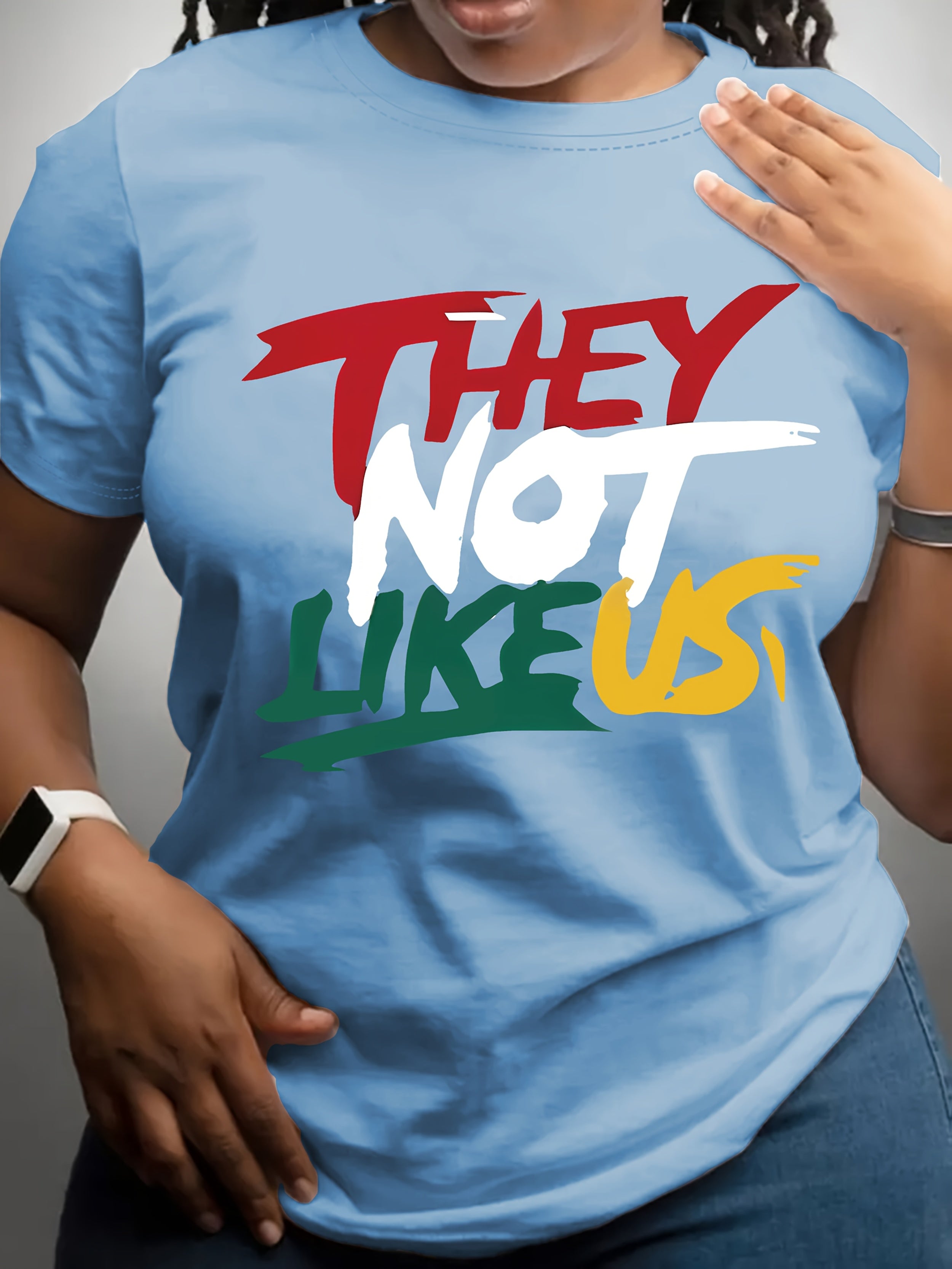 Women's "THEY NOT LIKE US" Bold Letter Print T-Shirt - Vibrant Green Short Sleeve Crew Neck Casual Top, Machine Washable Regular Fit Tee for Spring & Summer