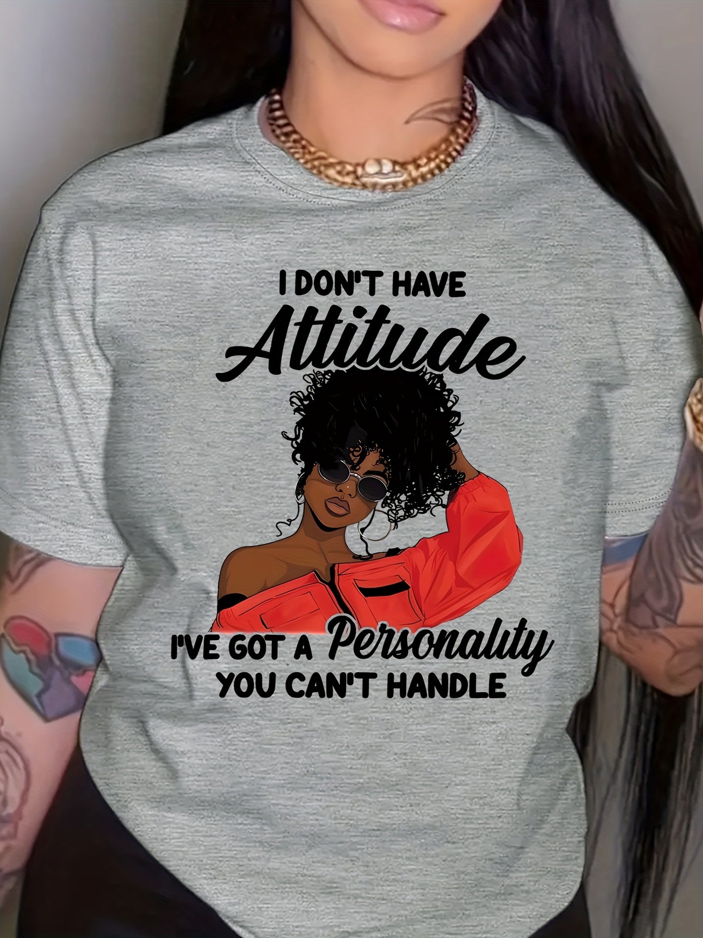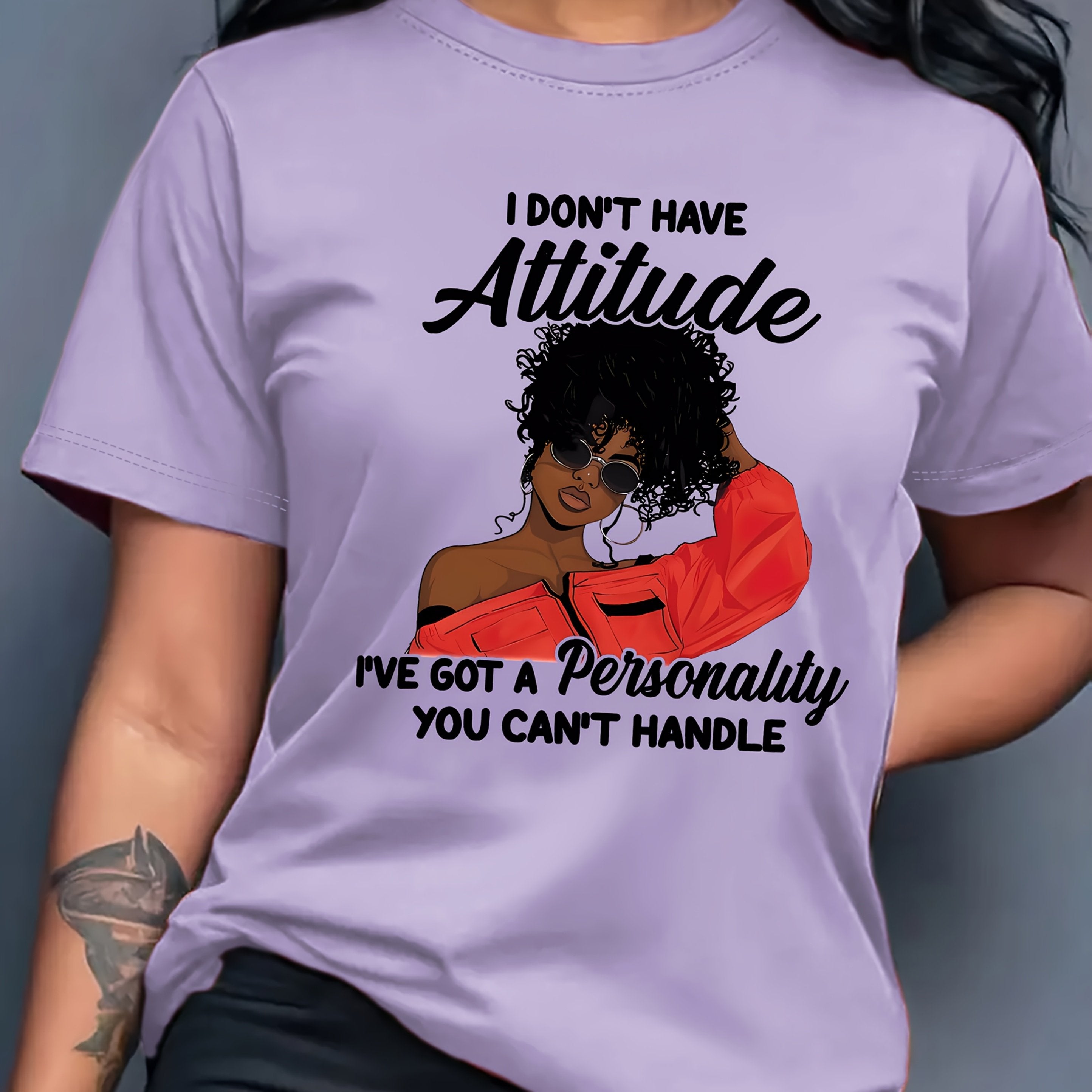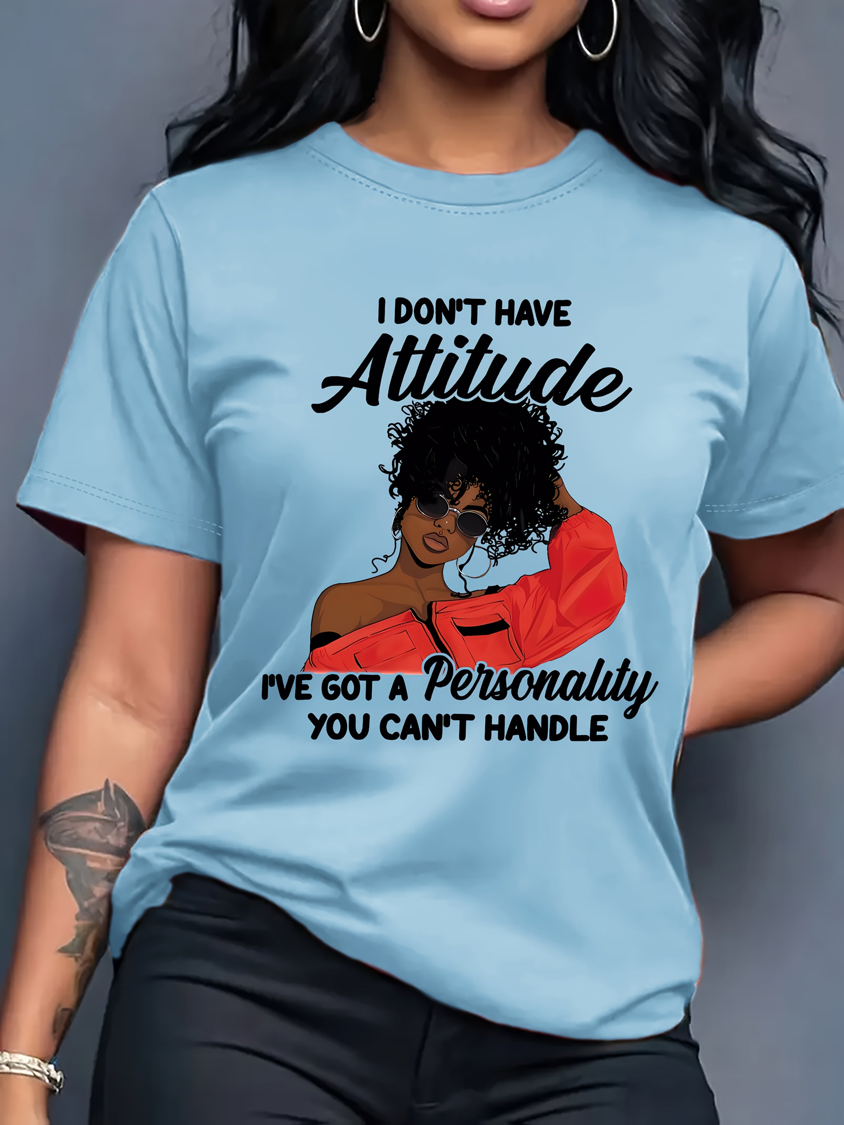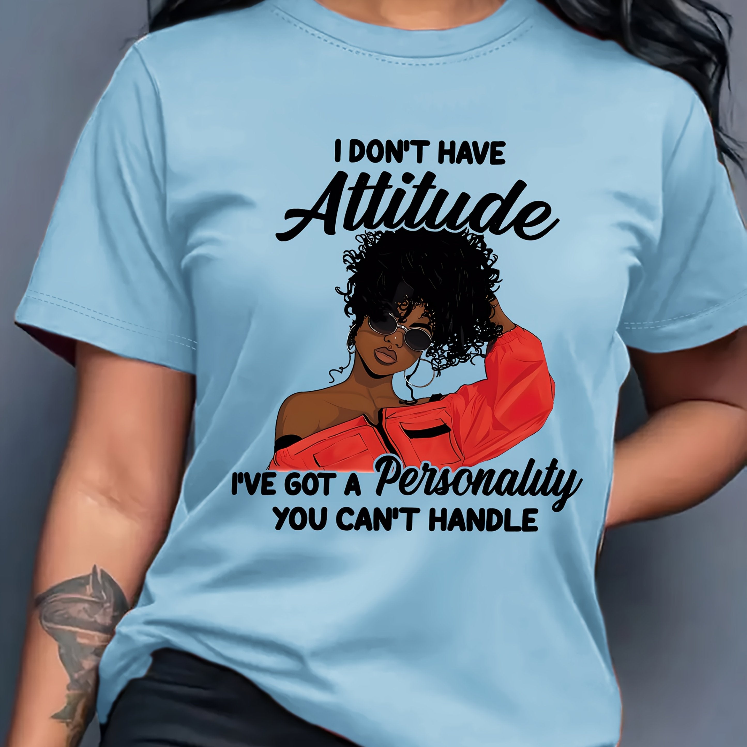 Women'S Casual Crew Neck T-Shirt with "I Don't Have Attitude, I've Got a Personality You Can't Handle" Print - Short Sleeve, Round Neck, Allseason Top, Casual Wear | Playful Print Top | Comfortable Fit, Ladies T Shirts