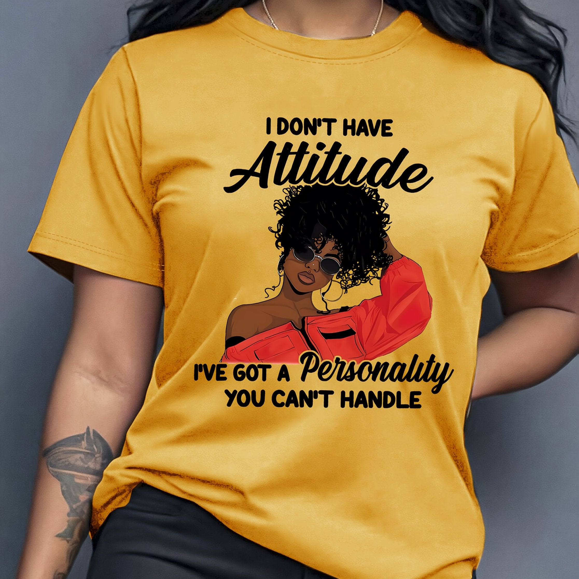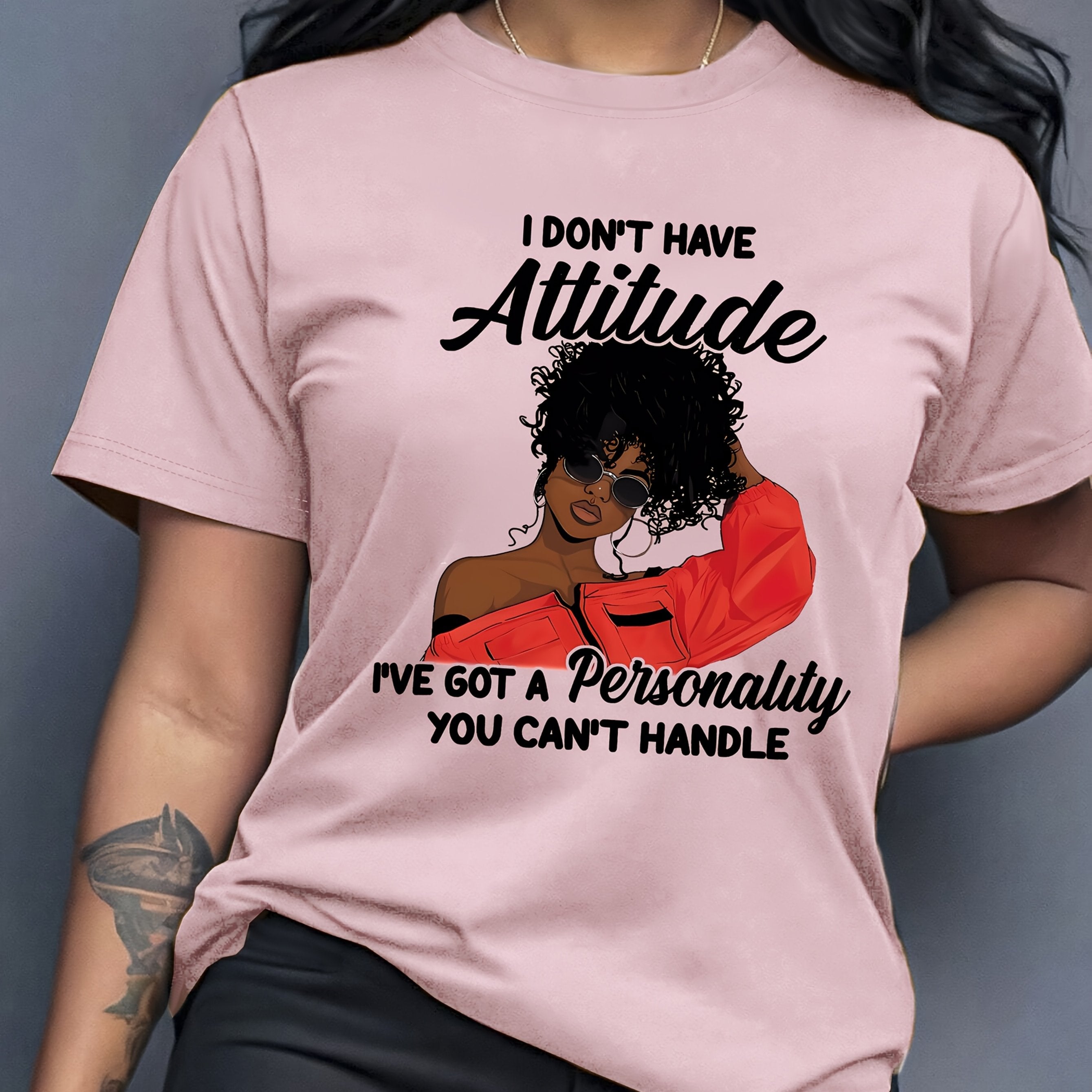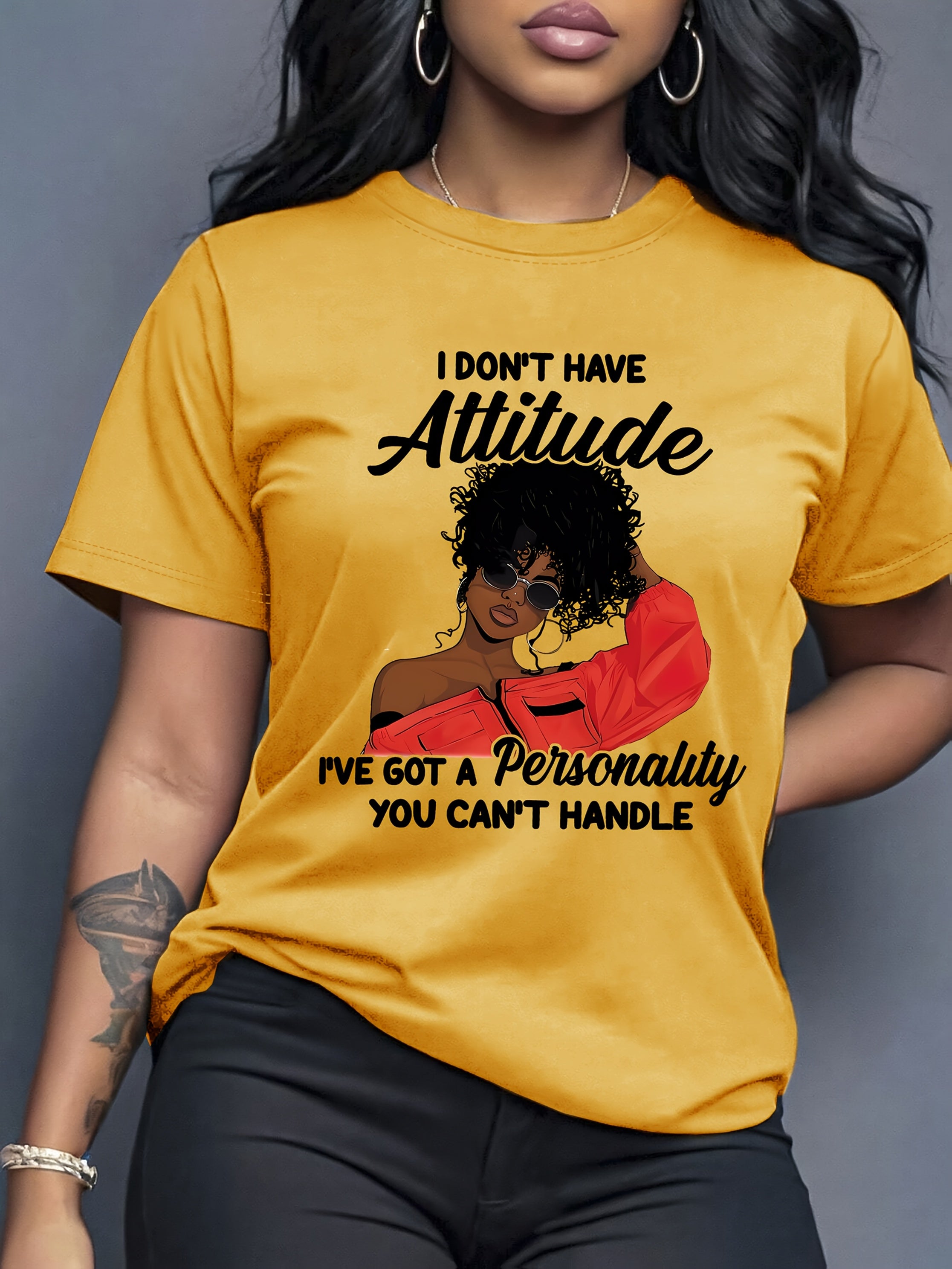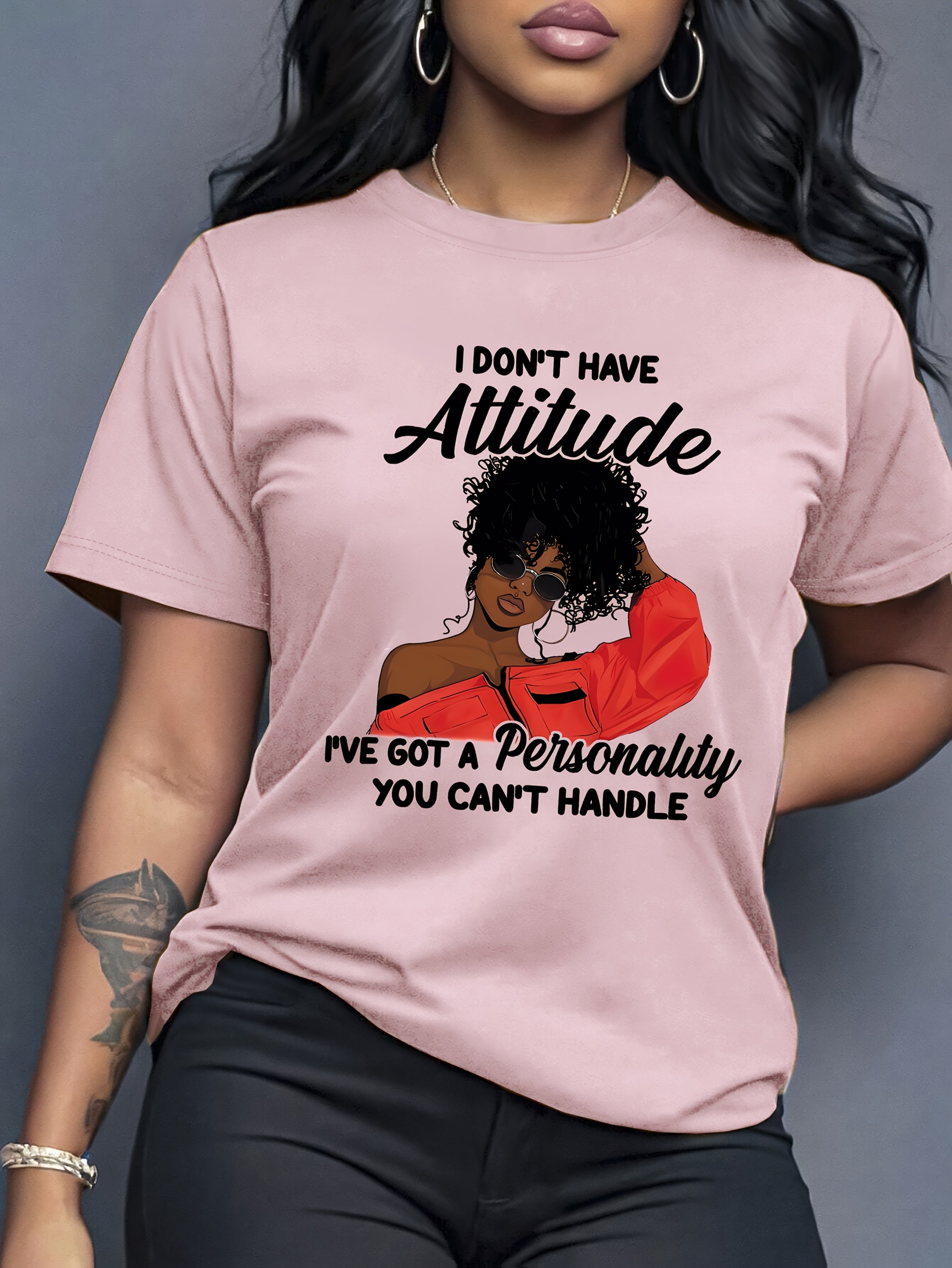 Women'S Casual Crew Neck T-Shirt with "I Don't Have Attitude, I've Got a Personality You Can't Handle" Print - Short Sleeve, Round Neck, Allseason Top, Casual Wear | Playful Print Top | Comfortable Fit, Ladies T Shirts
