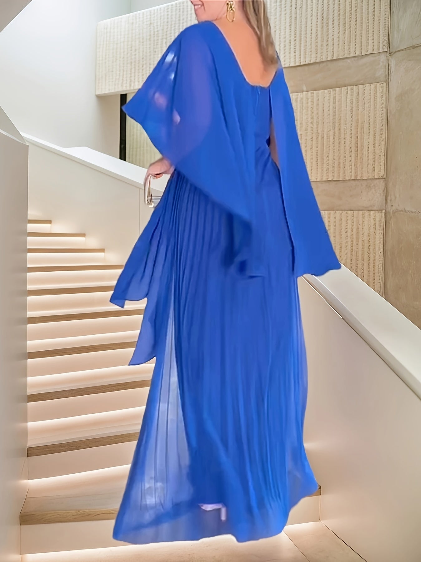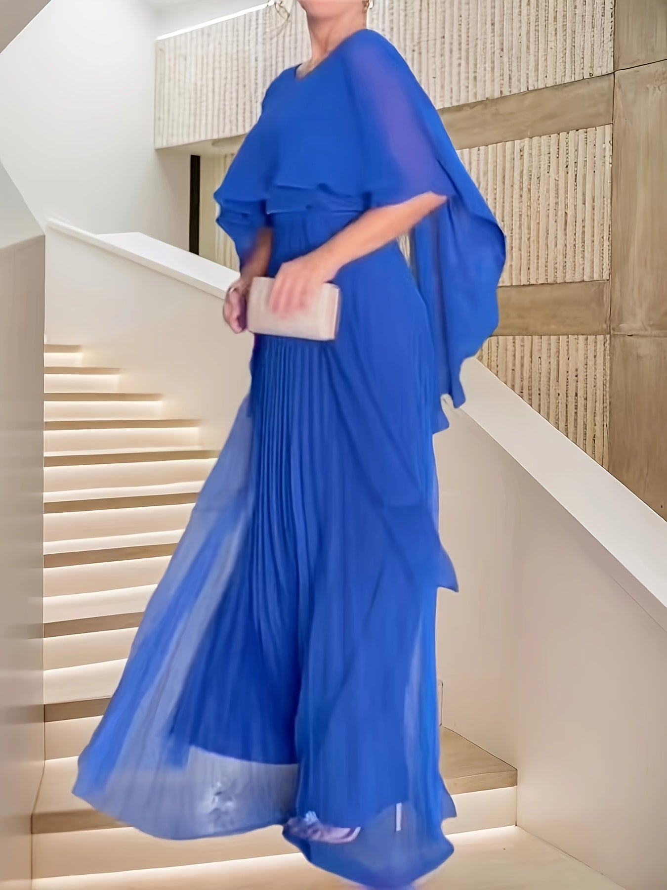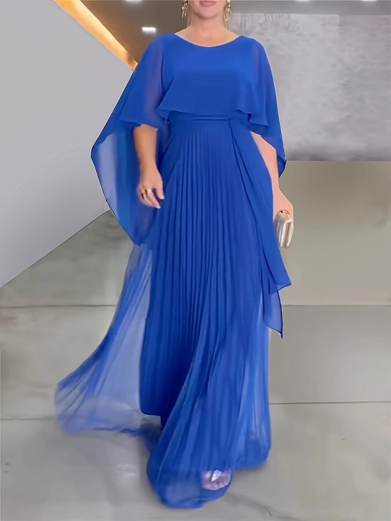 Elegant Solid Color Round Neck Pleated Fake Two-Piece Long Swing Dress