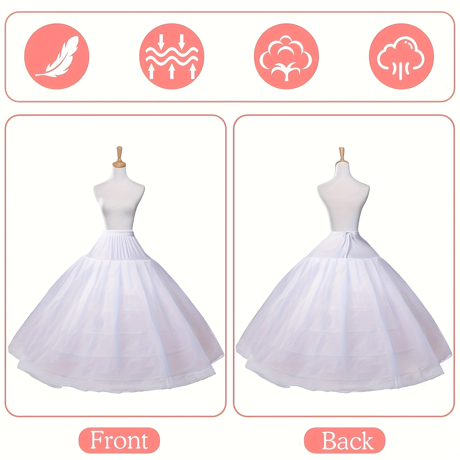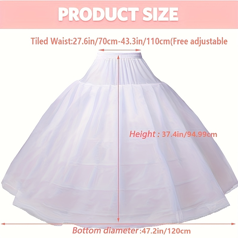 A bustle-style petticoat: This full-shaped 6-ring petticoat for girls is ideal for pairing with wedding gowns, prom outfits, and any formal attire. It can be worn beneath a prom dress, vintage dress, bridesmaid dress, or cocktail dress, or even as a standalone skirt. Care instructions for the girls' 6-ring bustle petticoat: Only hand wash; do not machine wash; hang to dry; avoid prolonged exposure to sunlight.
