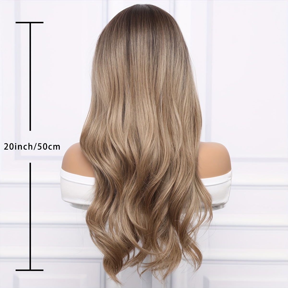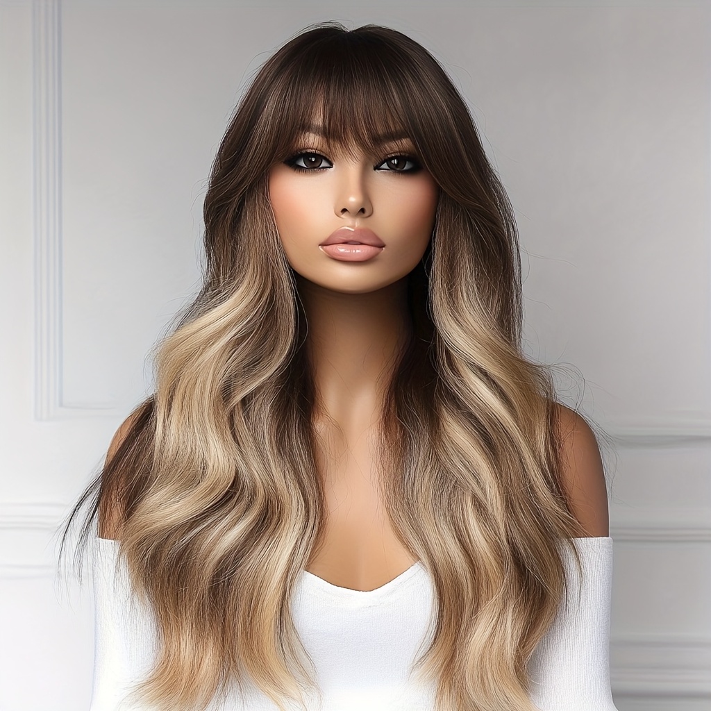 22" Ombre Brown to Blonde Curly Wig with Bangs - Natural Fluffy High-Temperature Fiber, Loose Waves for Everyday & Party Wear, Rose Net Cap, 180% Density