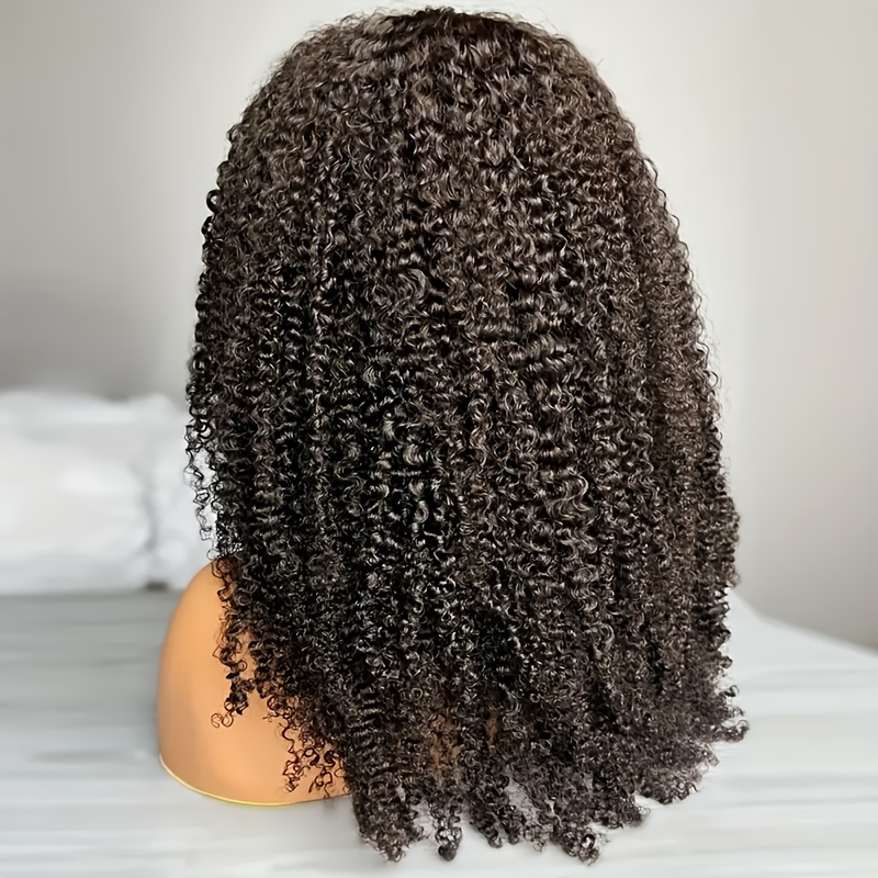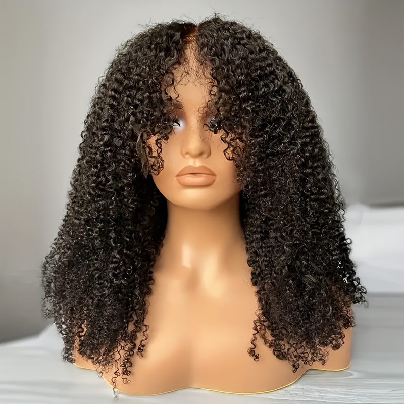 4x4 Lace Closure Kinky Curly 200% Density Human Hair Wigs, 22Inch, Transparent Lace, PrePlucked, No Shedding, Brazilian Hair, Small Knots, Unisex Adult, Deep Curly, With Curtain Bangs, Ready To Wear