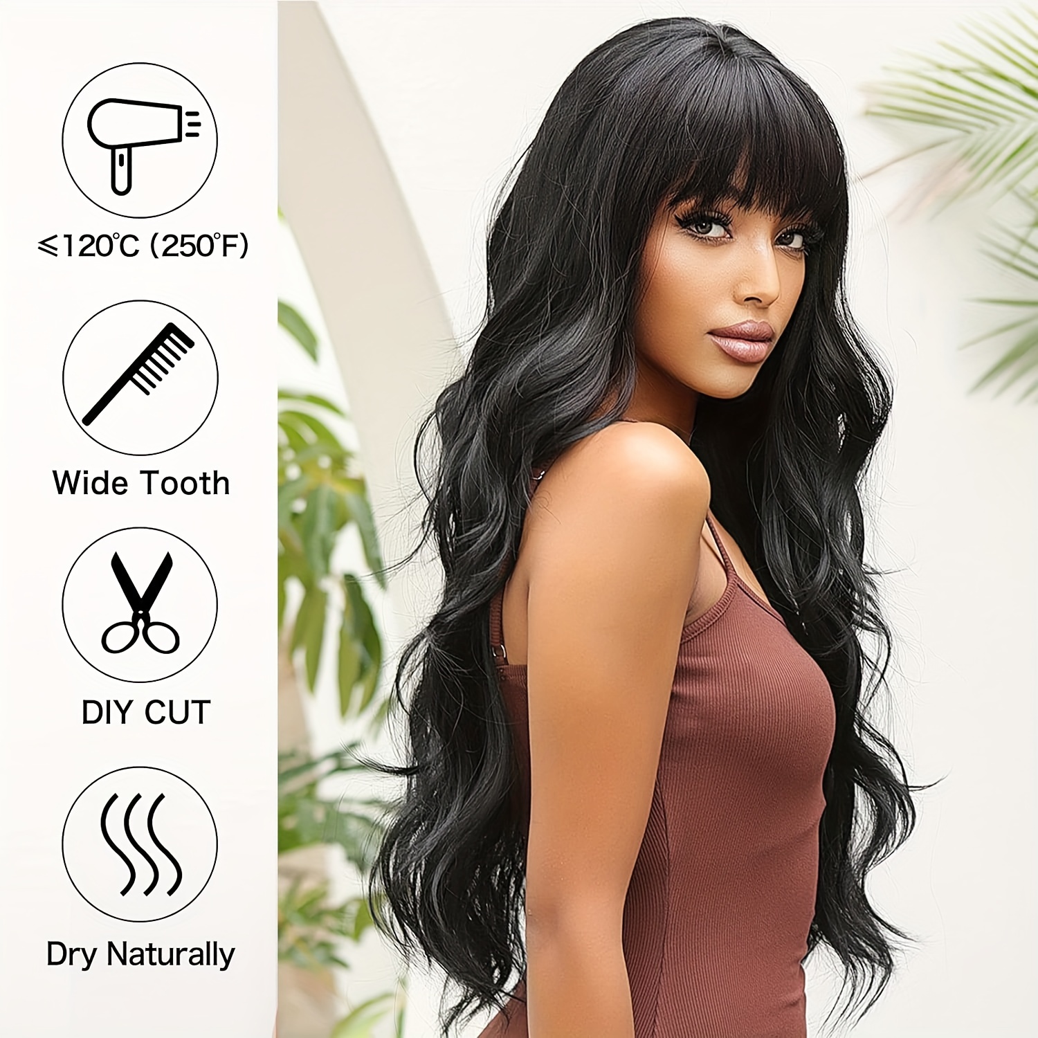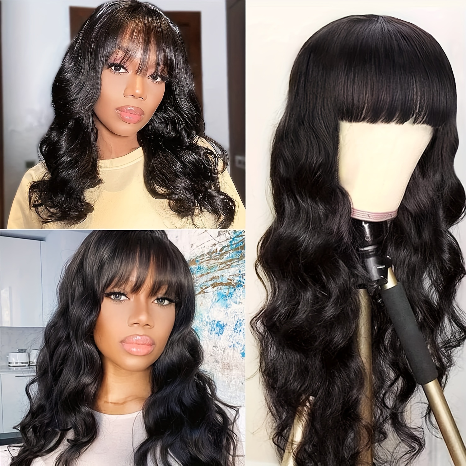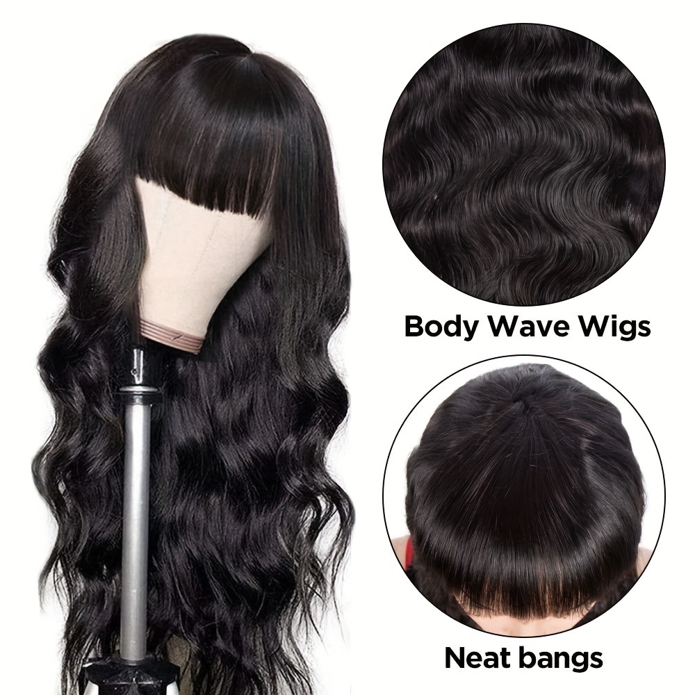 Body Wave Wigs with Bangs 100% Human Hair Wigs for Women None Lace Front Wigs 200%Density Brazilian Virgin Hair Glueless Machine Made Wig Human Hair Wigs with Bangs Natural Color