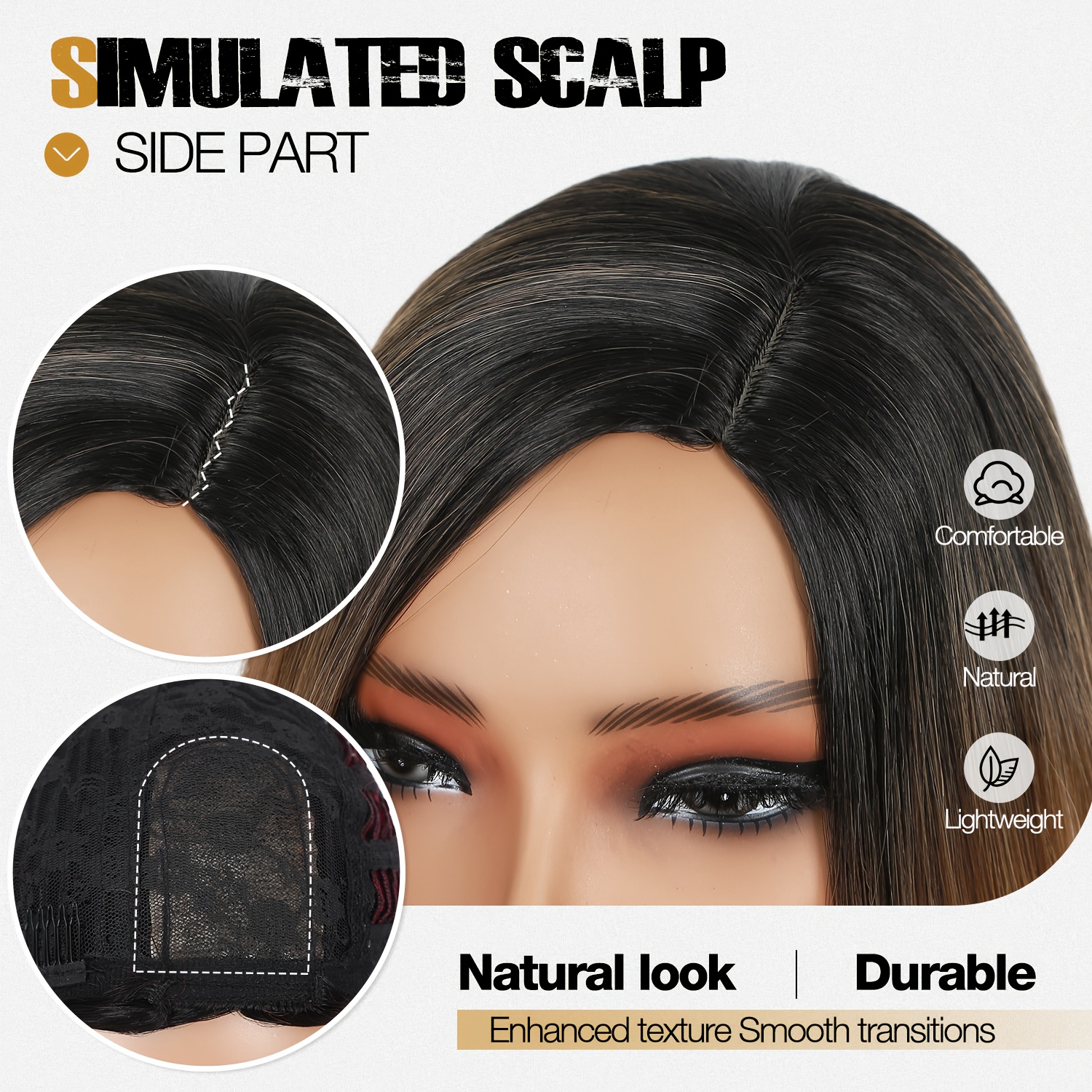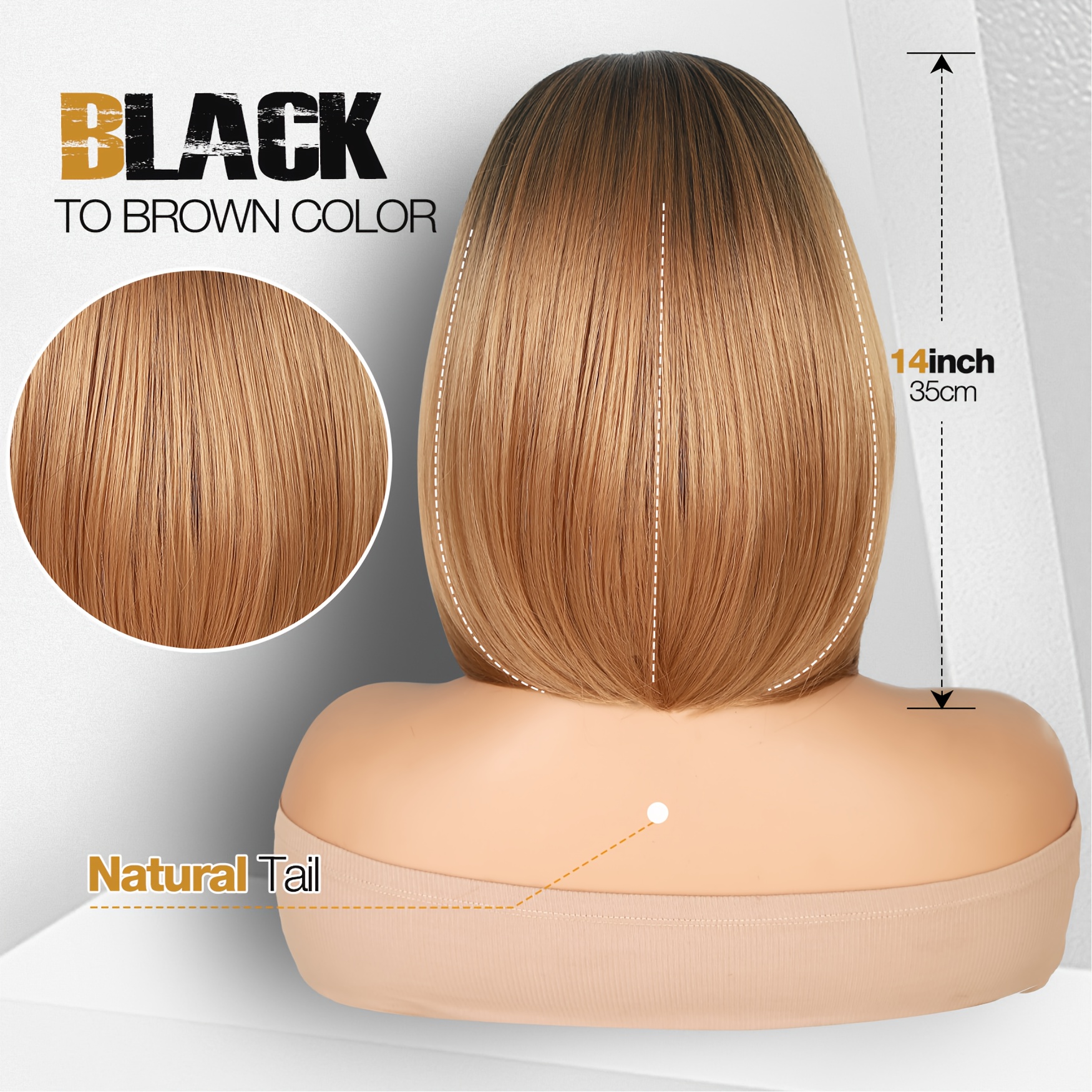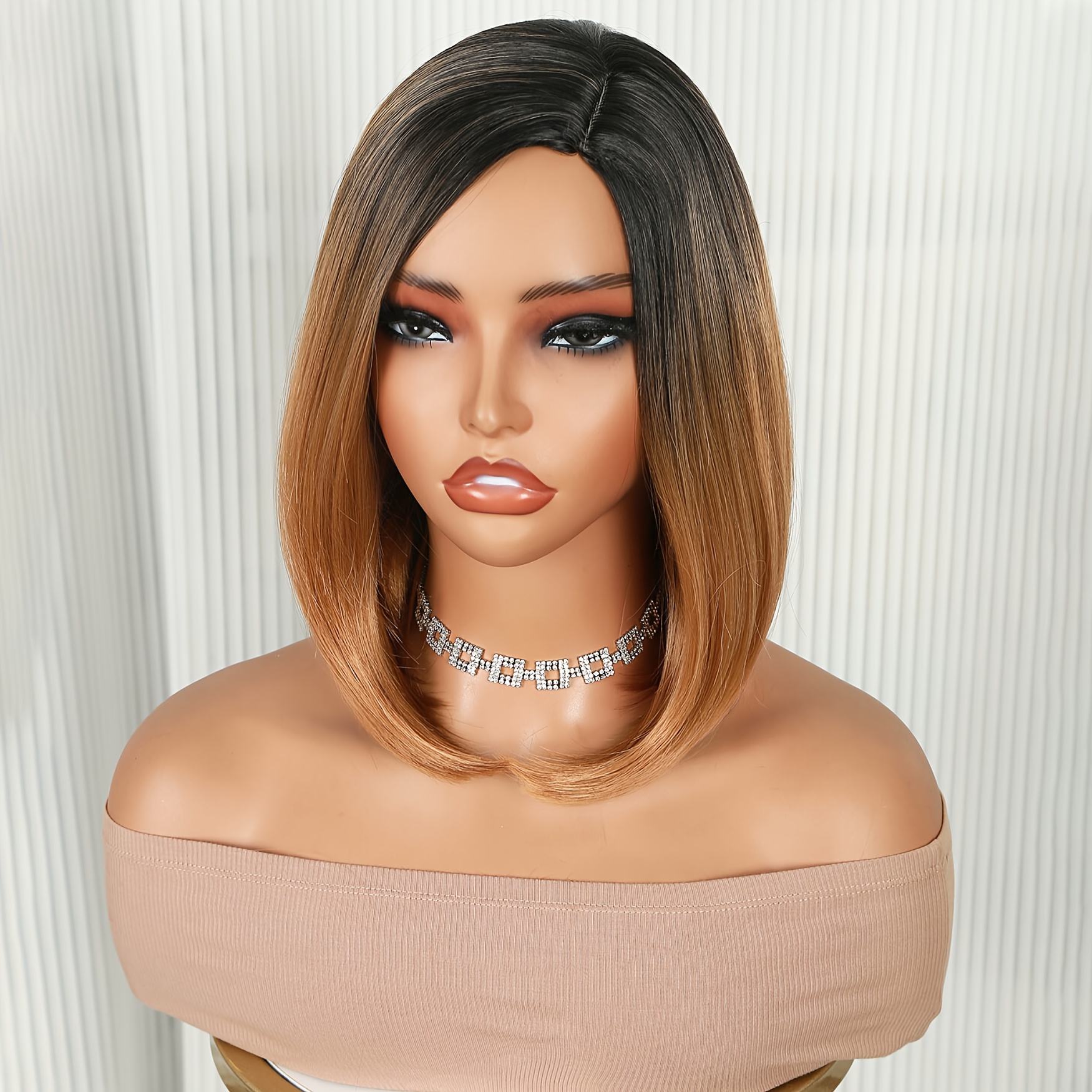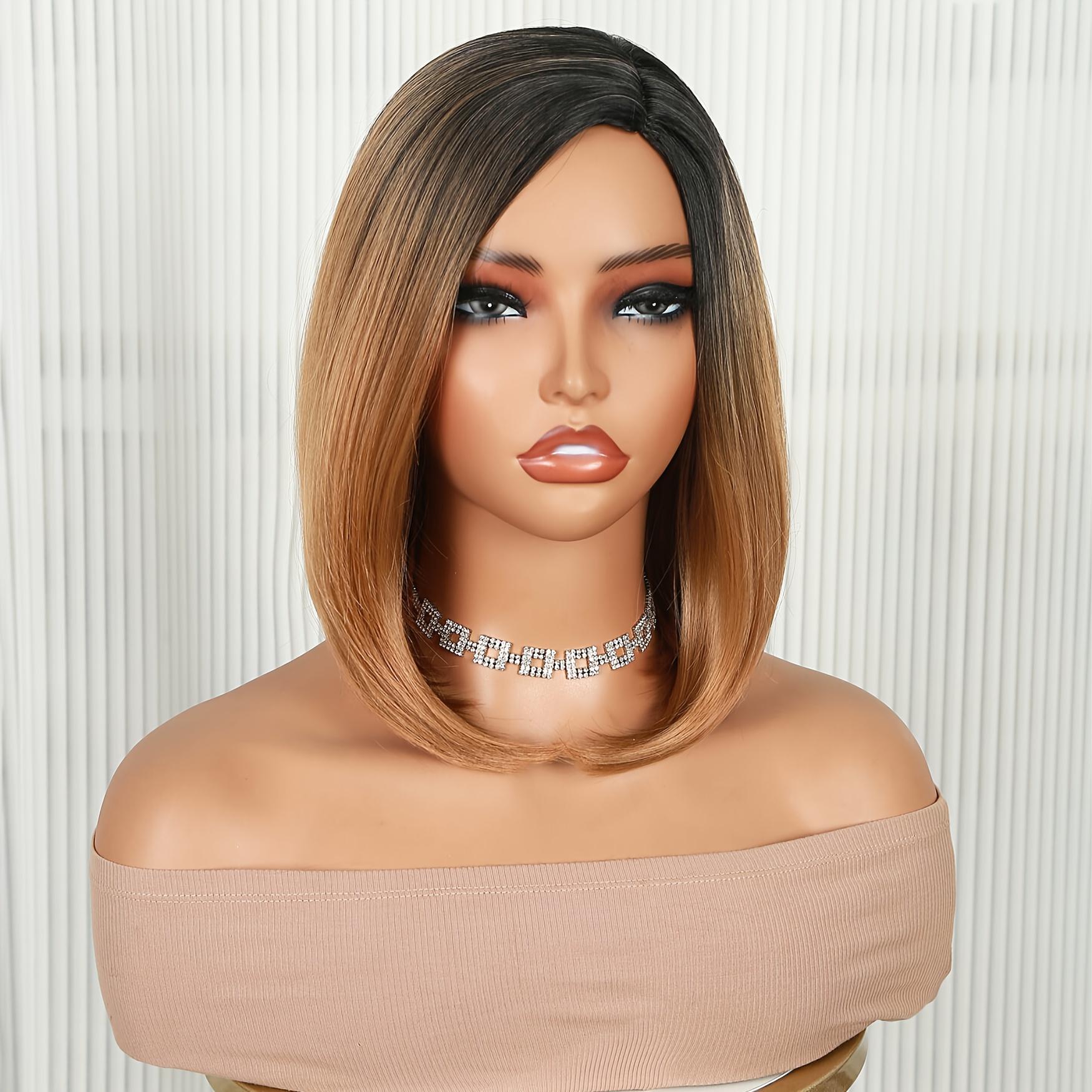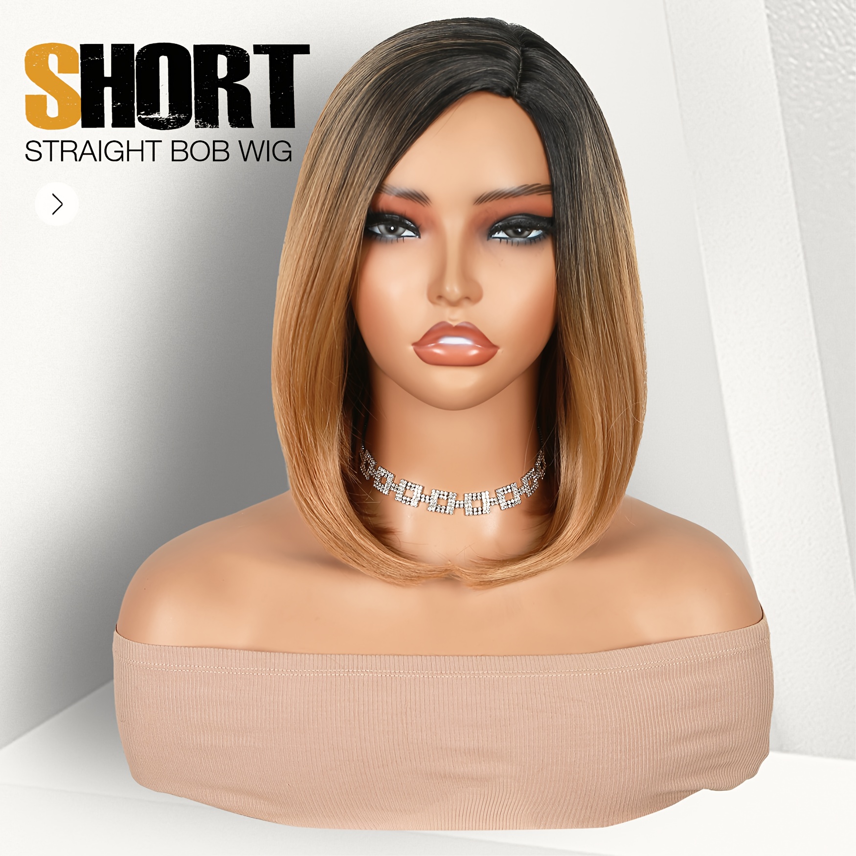 Chic Ombre Brown 12" Bob Wig for Women - Soft, Straight Synthetic Hair with Side Part, No Bangs | Natural-Looking, Easy to Style & Wear, High-Quality Shoulder-Length Wig, Versatile Hair Wig|Side Part Wig|Highquality Synthetic