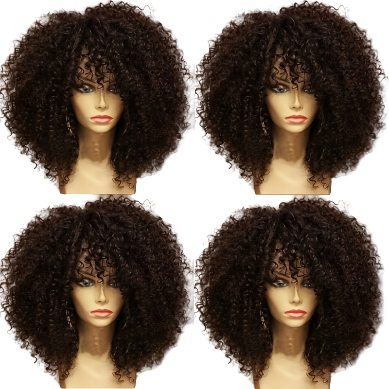 Curly Afro Wig With Bangs Short Kinky Curly Wig For Women Synthetic Black Curly Wigs Shoulder Length Glueless Afro Wig