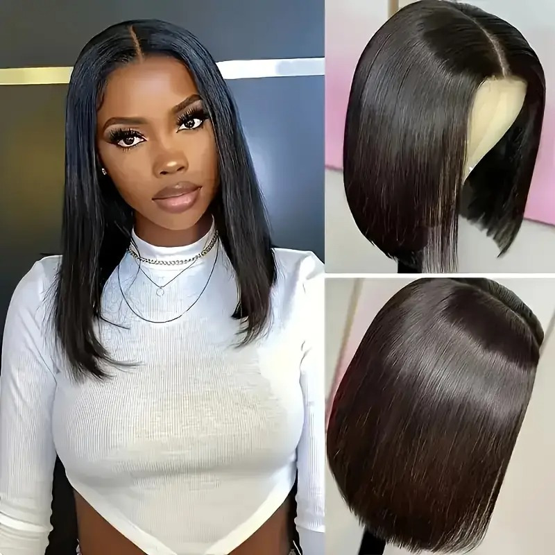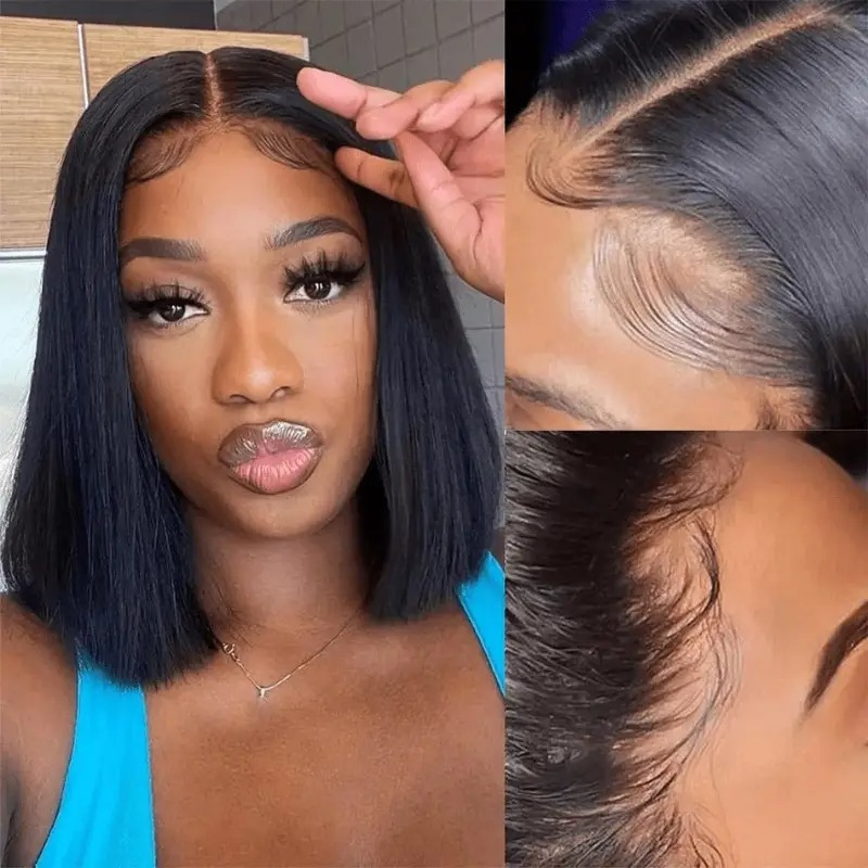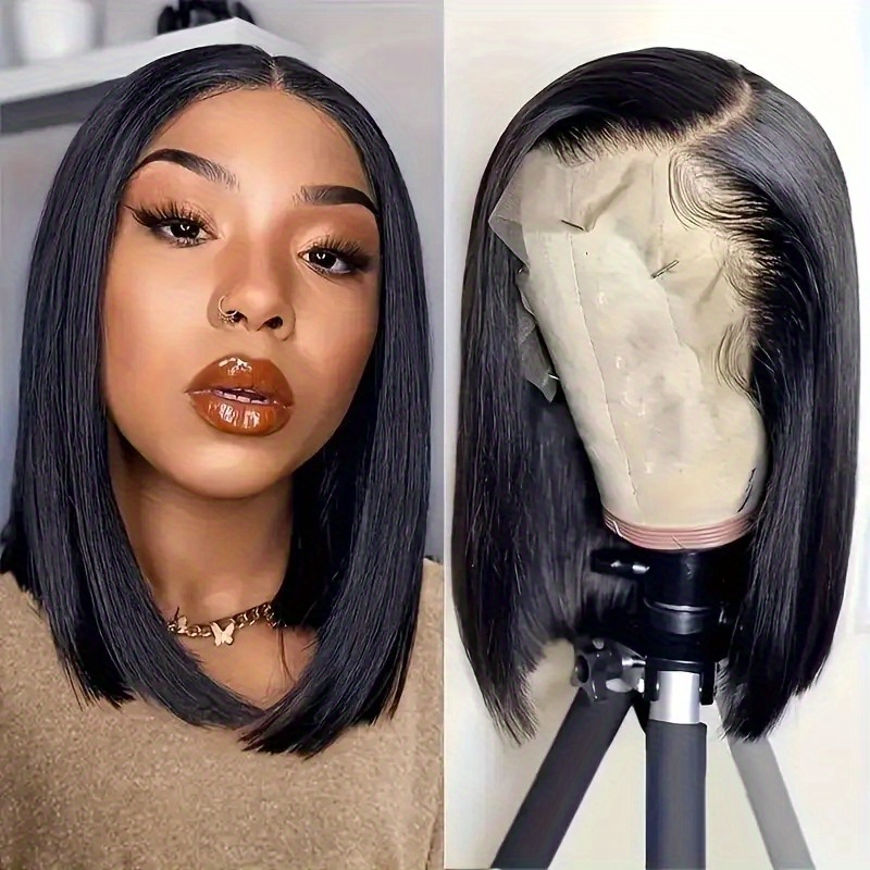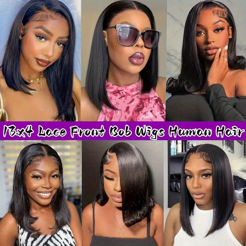Elegant Straight Bob Wig - 200% Density 13x4 HD Lace Front, Pre-Plucked with Baby Hair, Glueless Brazilian Human Hair, Shoulder-Length Bob Style for Women, Natural Look, 100% Real Human Hair, Short Hair Wig