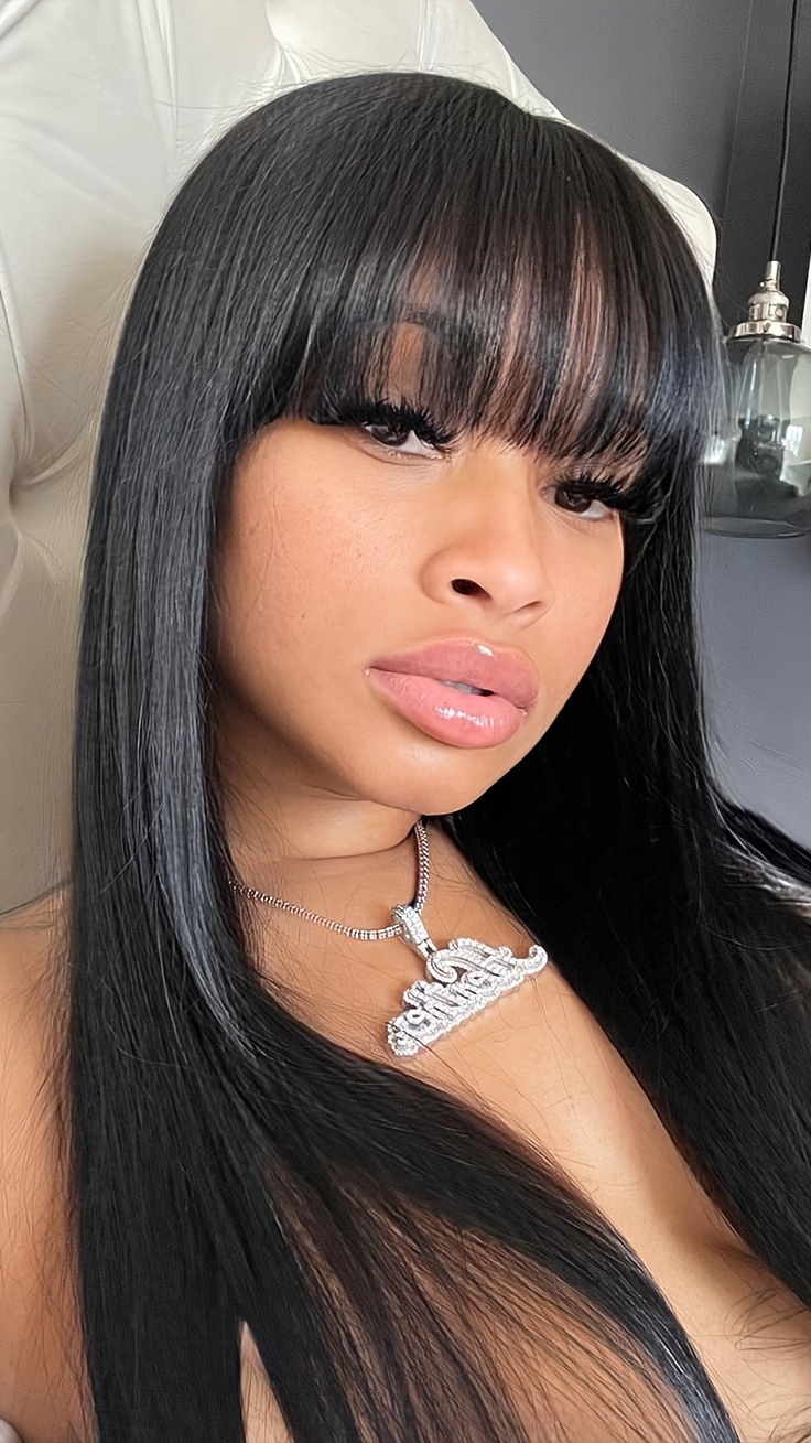 Glueless Bone Straight Wigs with Bangs 100% Long And True Length Human Hair Natural Black Color Wigs for Women Party Gifts Full Machine Made Rose Cap Straight No Glue No Lace Wigs 16inch-40inch