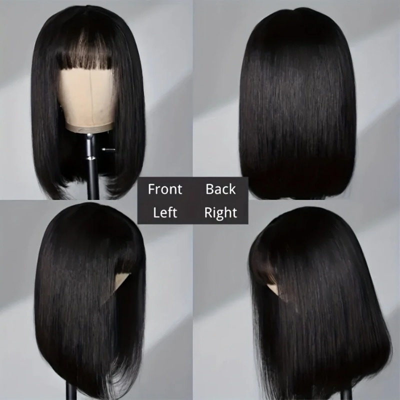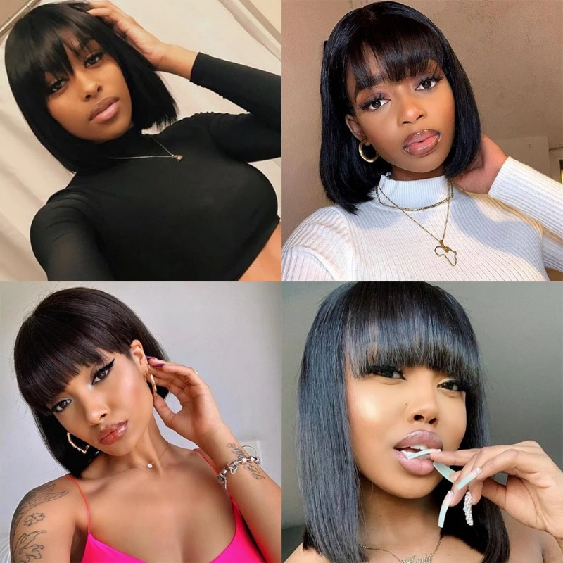 Straight Short Bob Wig With Bangs 100% Human Hair Full Machine Made Bob Wigs Glueless Straight Wigs For Women