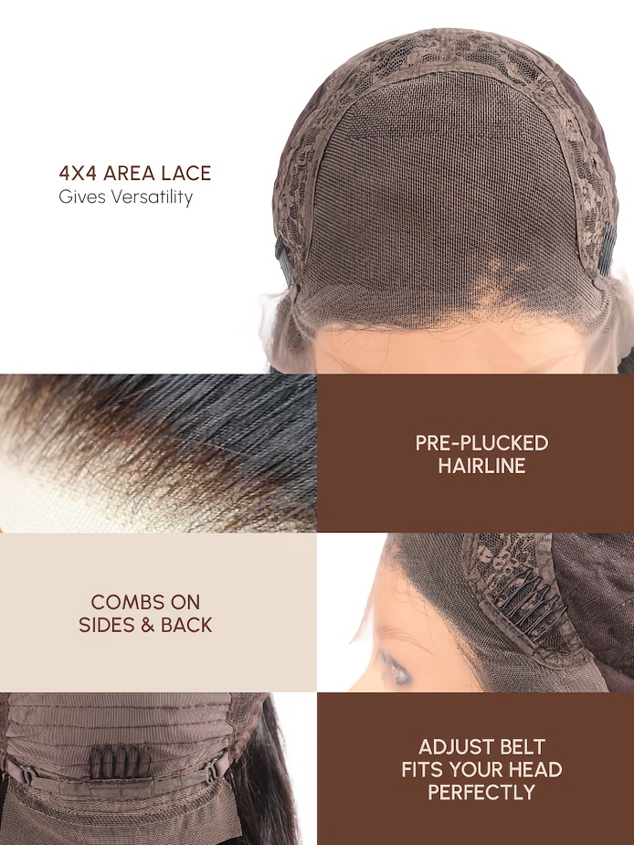 UNice 4x4 Lace Closure Bob Human Hair Wig with Side-Swept Bangs - 150% Density, Pre-Plucked Natural Hairline, Adjustable Fit, Curly/Styleable, Soft & Comfortable for Men & Women, Special Occasion Wig | Sleek Black Wig | Durab