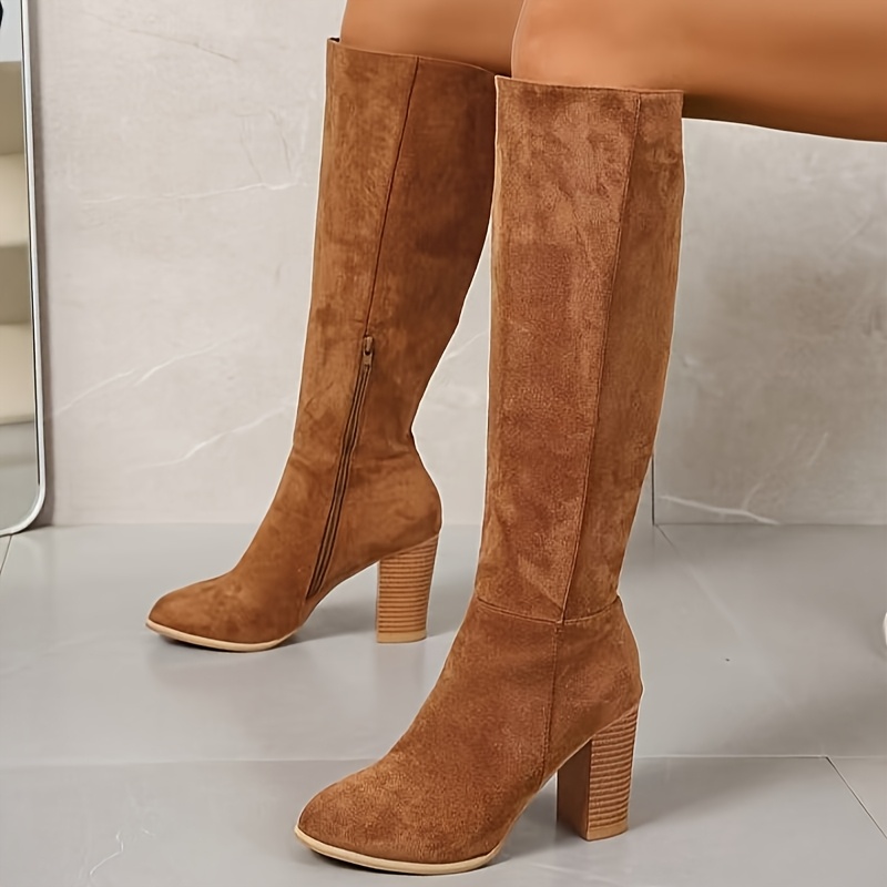Fashion Forward, Elegant Women's Long Fashion Boots in Light Brown - Non-Slip, Comfortable & Lightweight with Chic Pointed Toe and Side Zipper Closure, TPU Sole, Fabric Lining for Stylish Horseback Riding