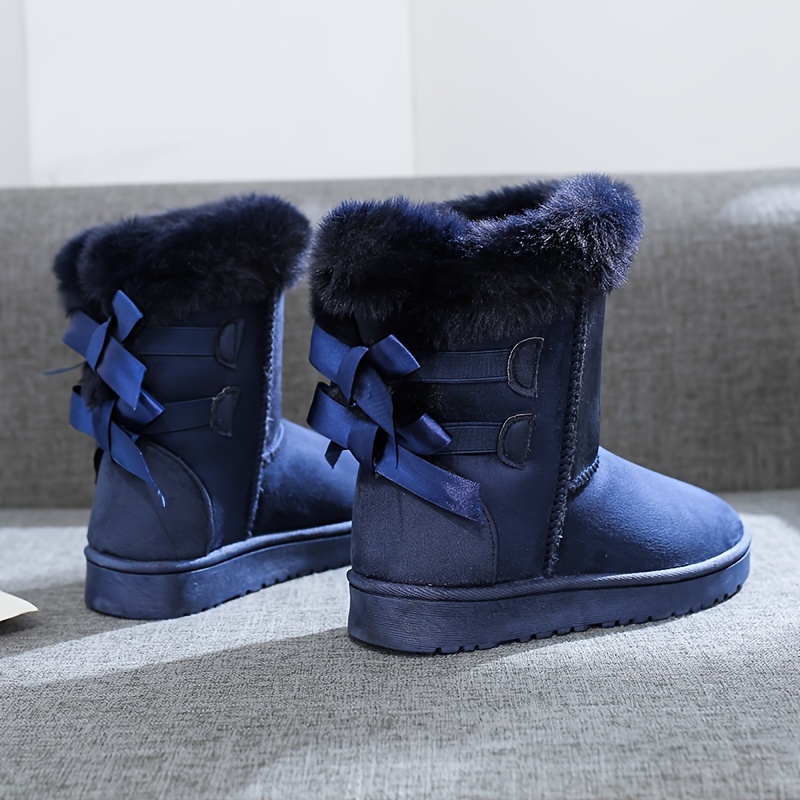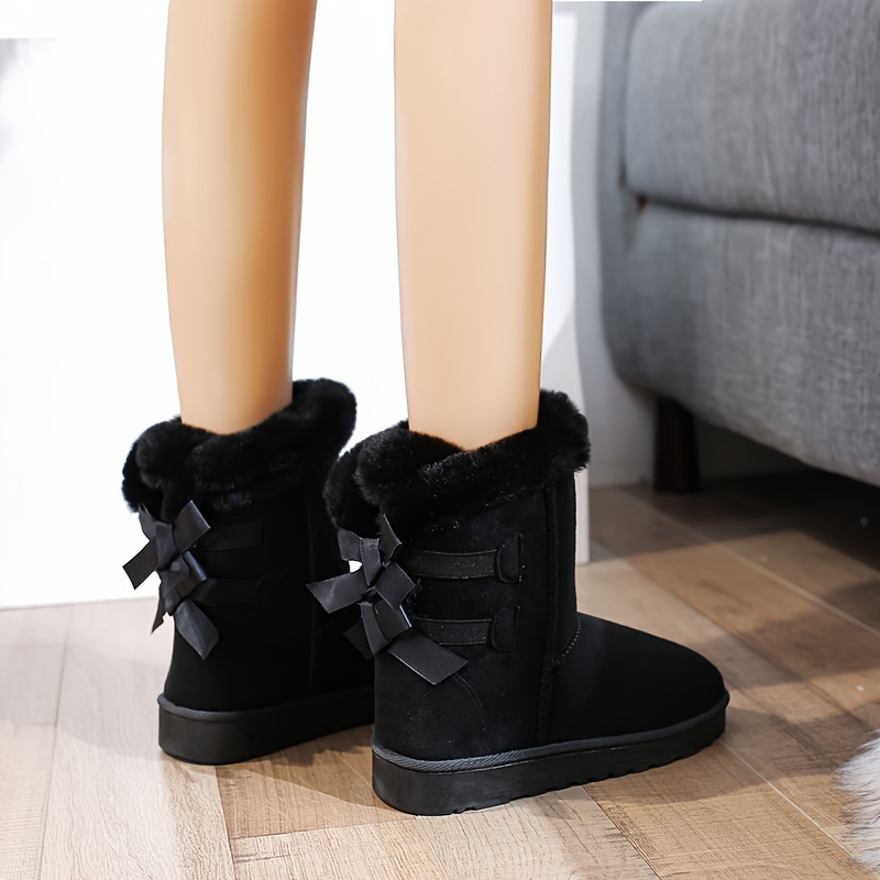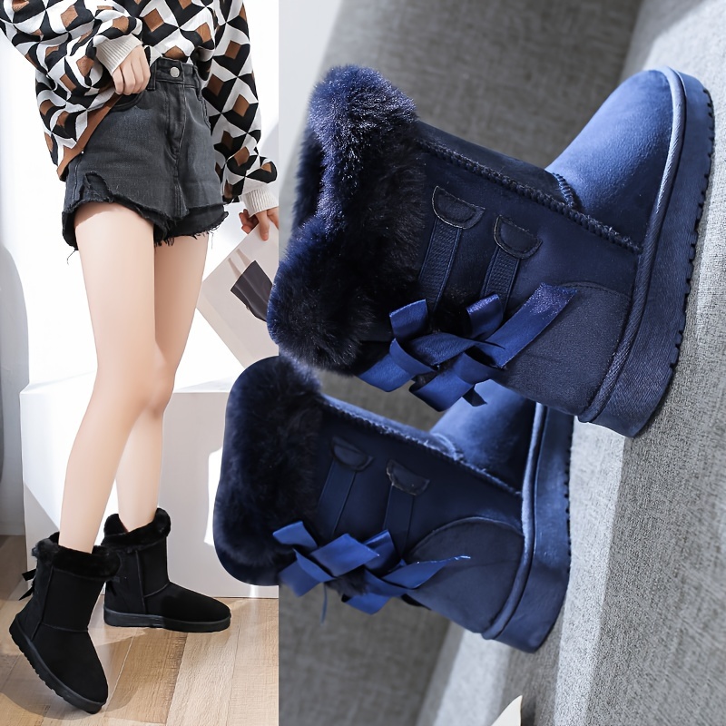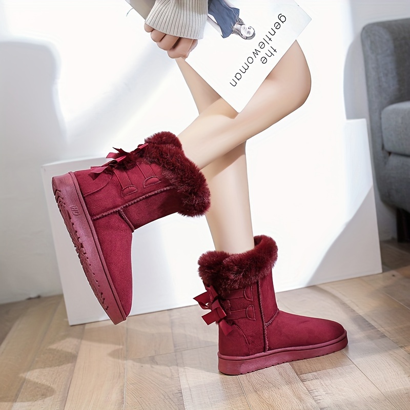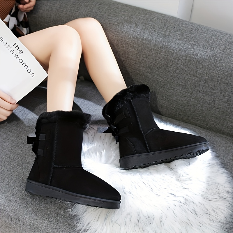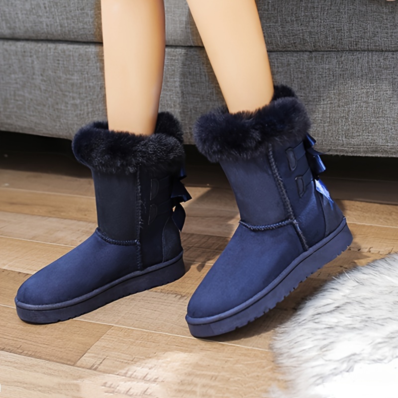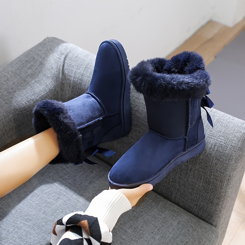 Women'S Mid-Calf Snow Boots with Faux Fur Trim, Round Toe, Non-Slip PVC Sole, Thick Warm Flannel Lined, Solid Color Winter Footwear