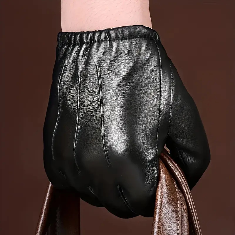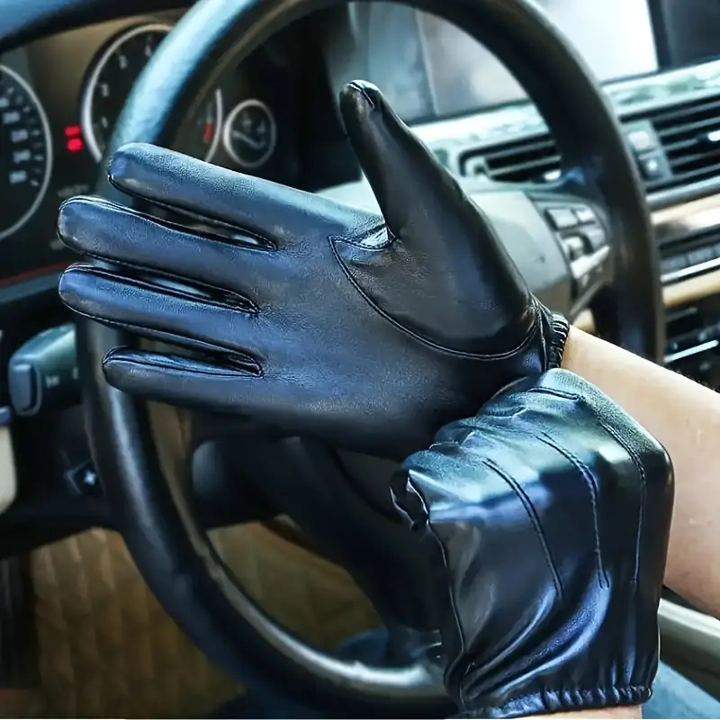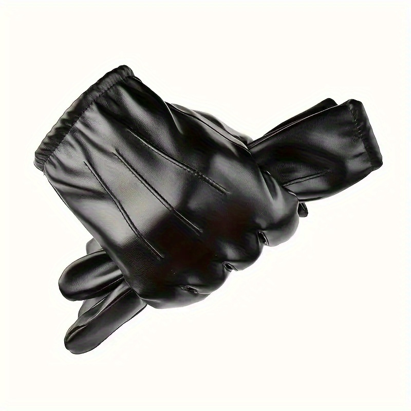 2pcs Men's PU Leather Touchscreen Driving Gloves - Texting Compatible, Hand-Washable, Pull-On Closure, Non-Textile Weave, for Autumn and Winter Warmth