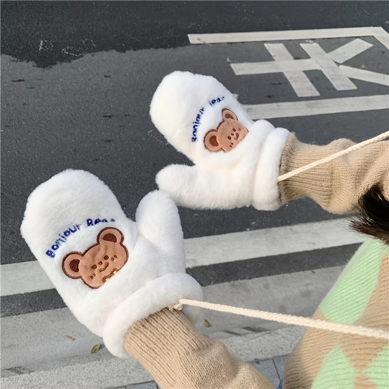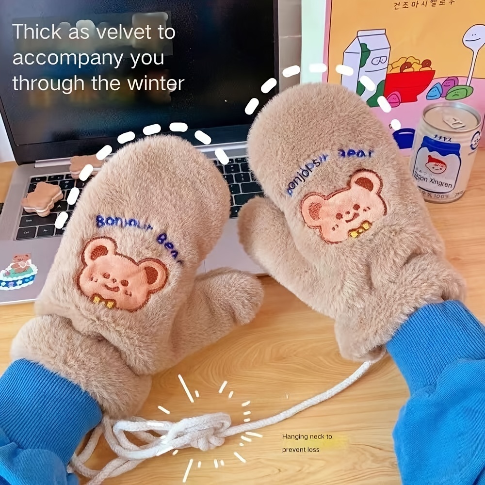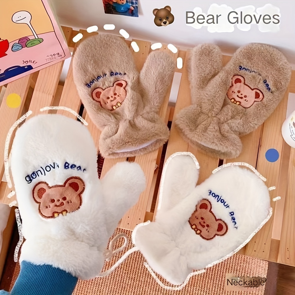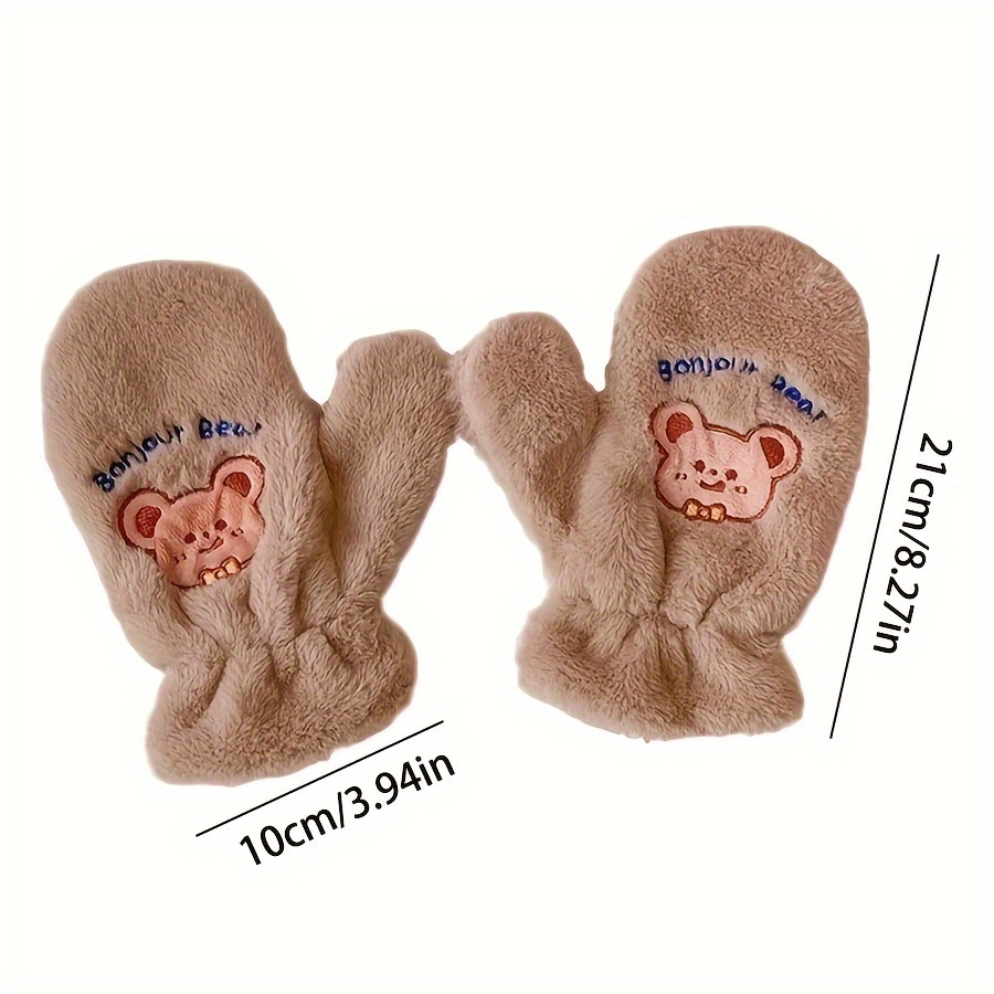 Cozycraft, Cozy Fleece-Lined Winter Gloves with Cute Bear Design - Windproof, Warm Mittens for Outdoor Activities, Non-Slip Touchscreen Compatible, Winter Accessories