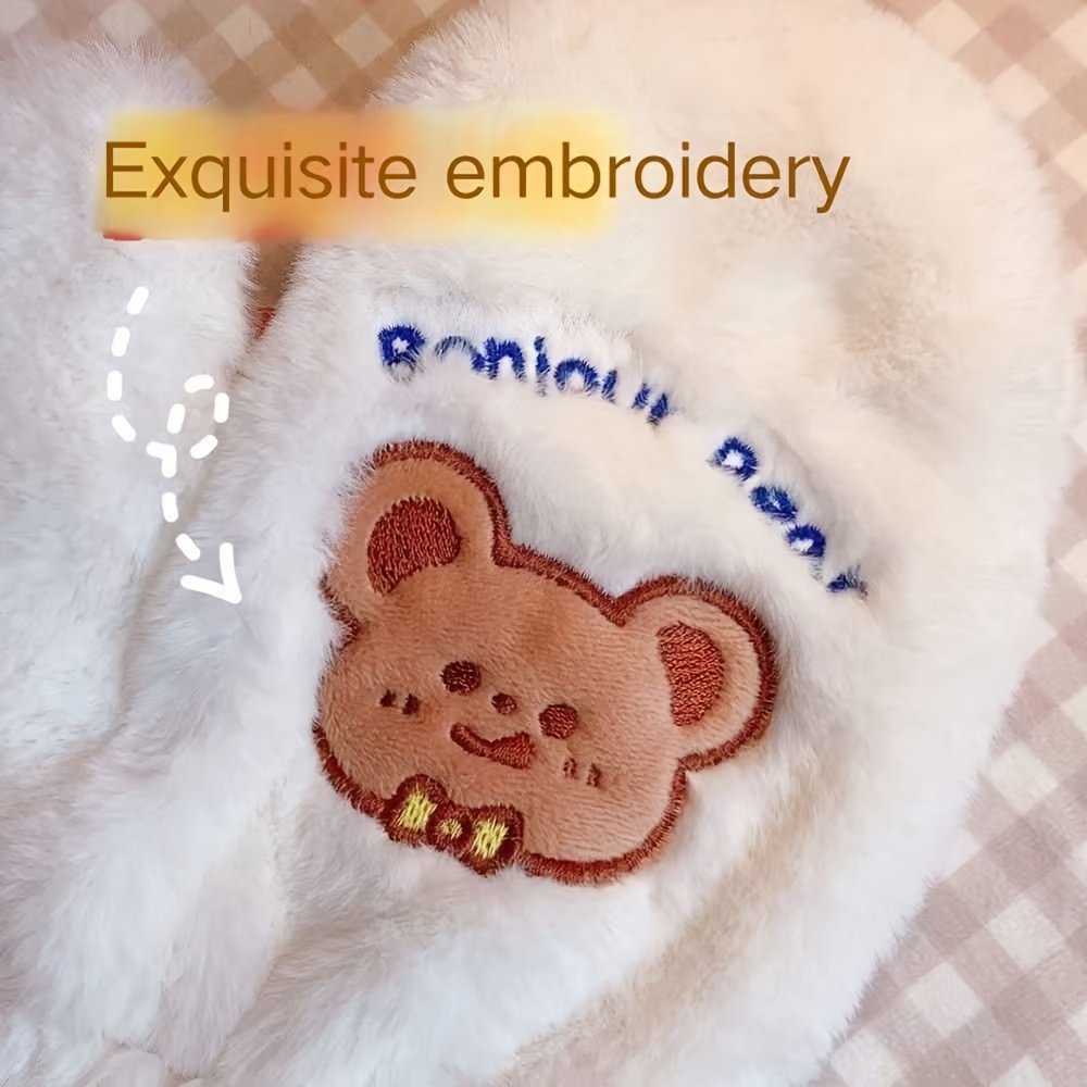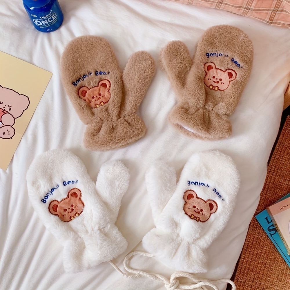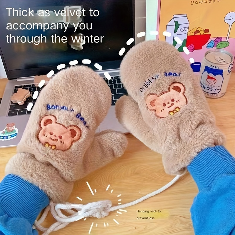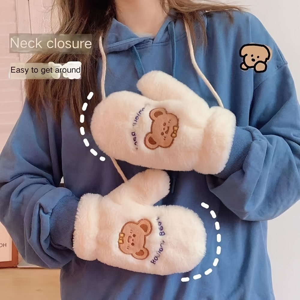Cozycraft, Cozy Fleece-Lined Winter Gloves with Cute Bear Design - Windproof, Warm Mittens for Outdoor Activities, Non-Slip Touchscreen Compatible, Winter Accessories
