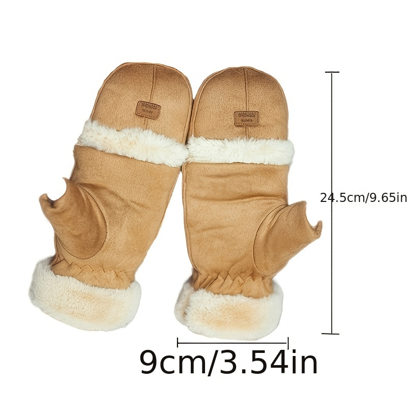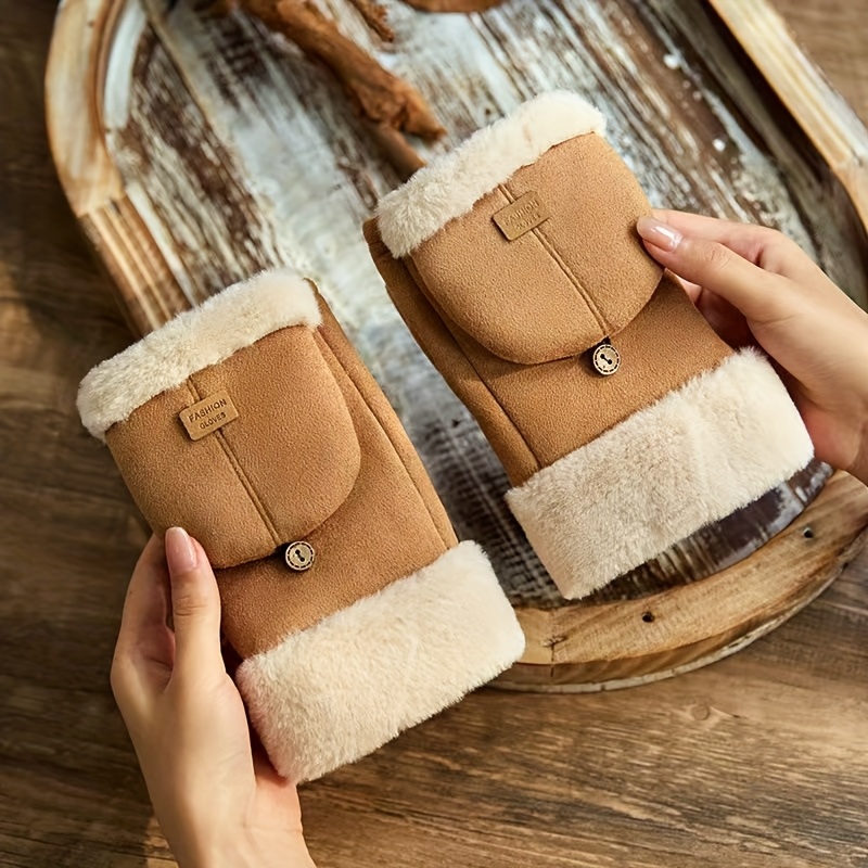 Women'S Autumn And Winter Warm And Cute Thick Fleece-Lined Half-Finger Touchscreen Gloves for Biking, Featuring a Flip Cover.