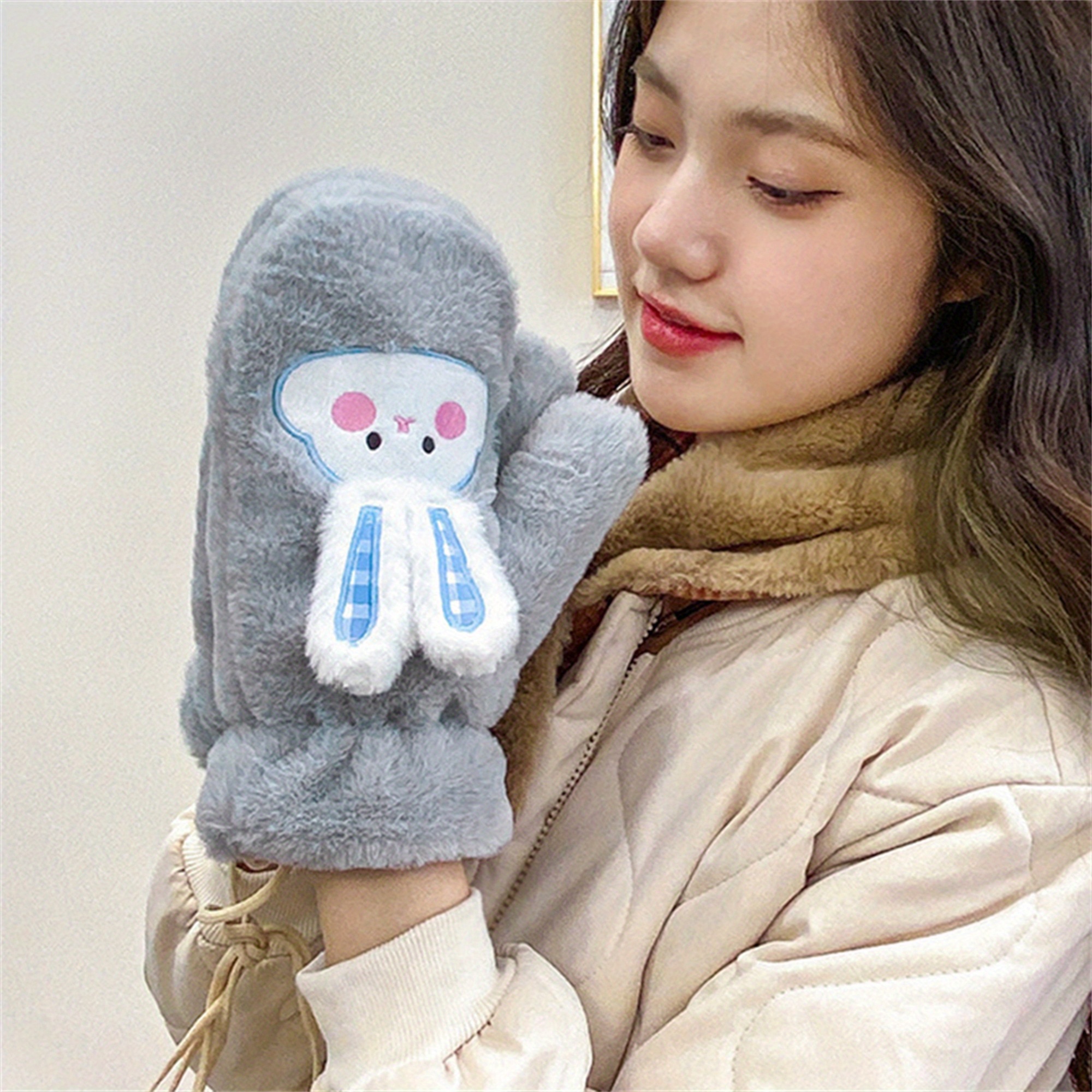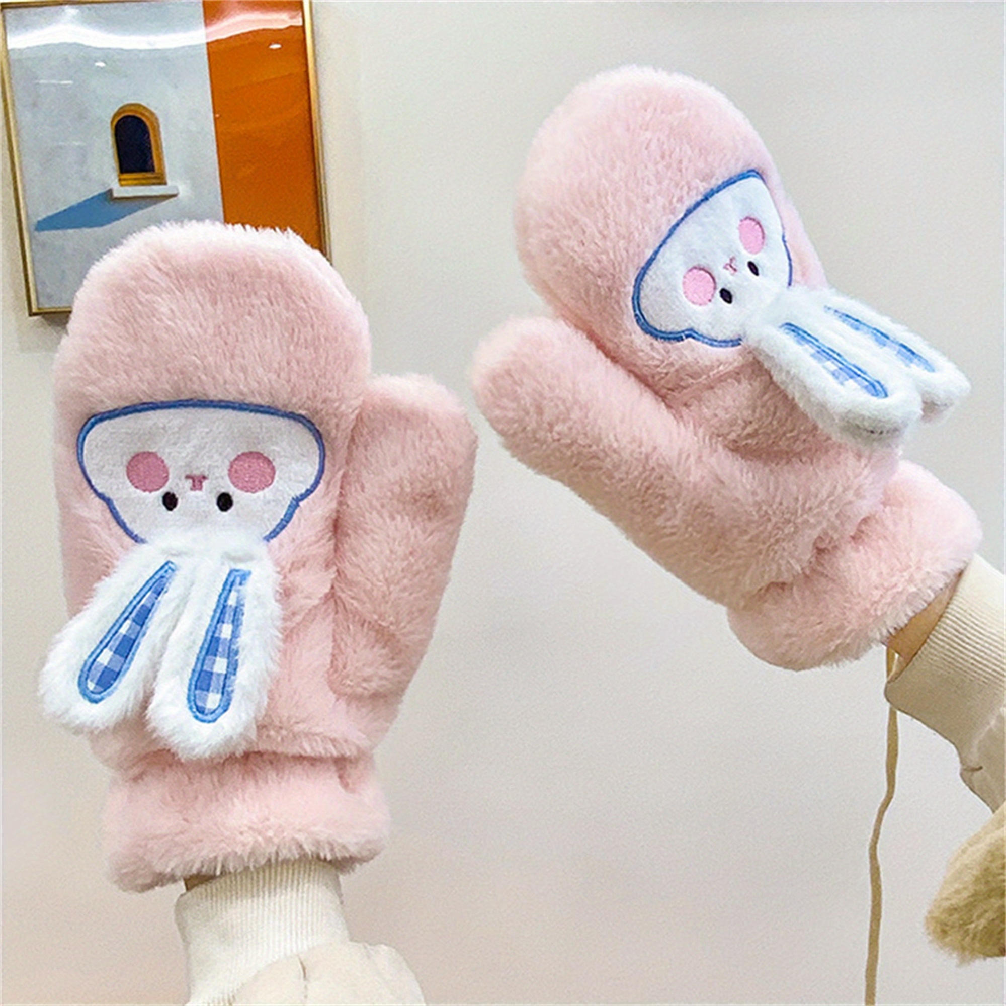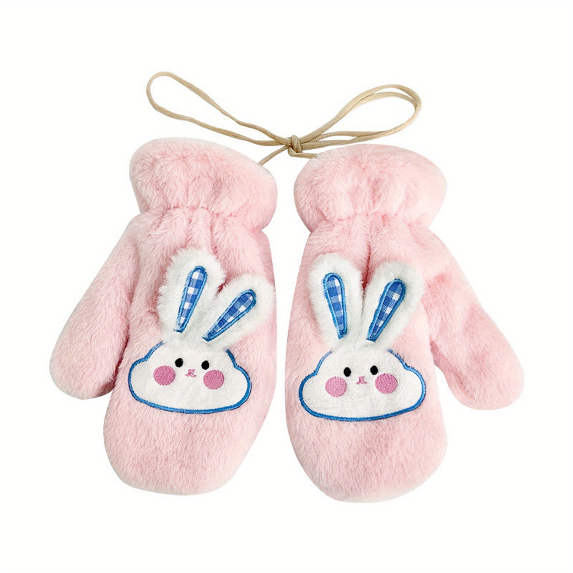 Women's Winter Mittens | Cute Rabbit Design Fleece Gloves | Pink Cotton Blend with Bunny Ears and Face | Plush Warmth for Cold Weather | Non-Stretch, Hand Washable | Cozy Outdoor Accessory