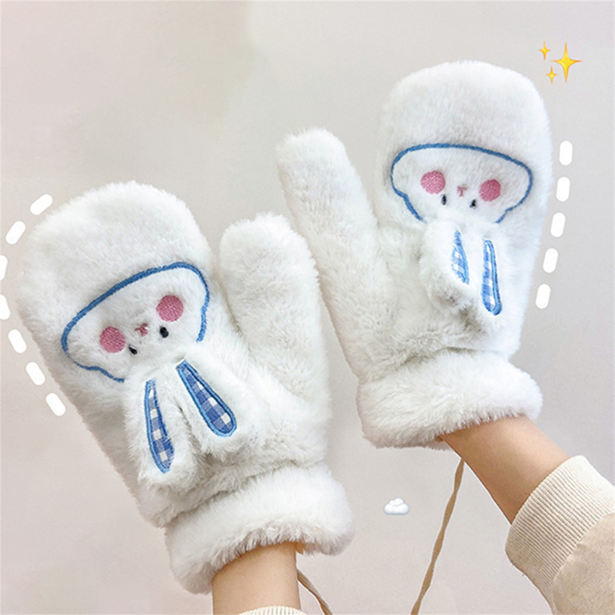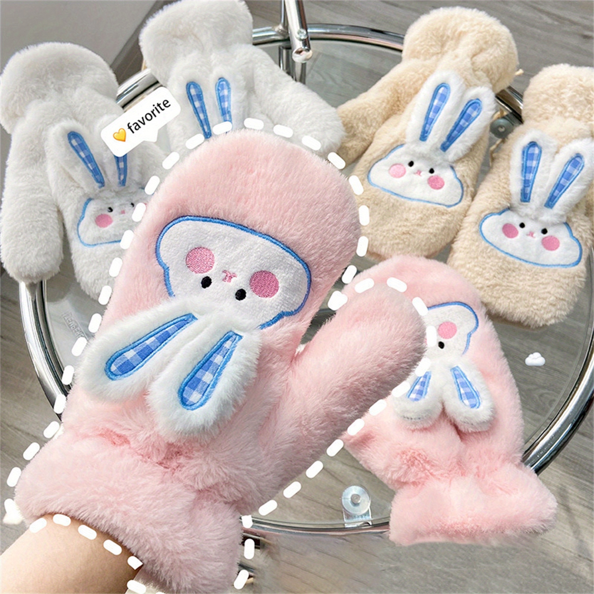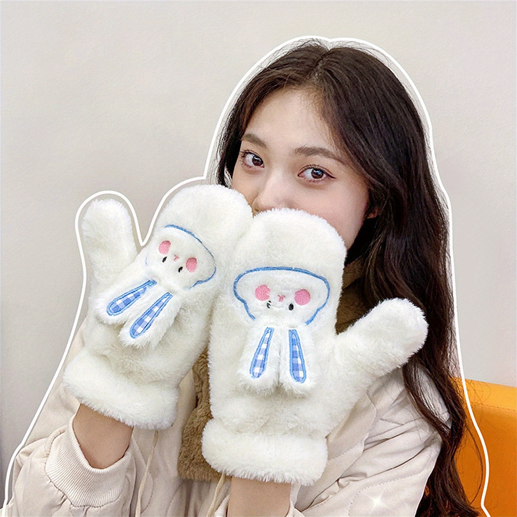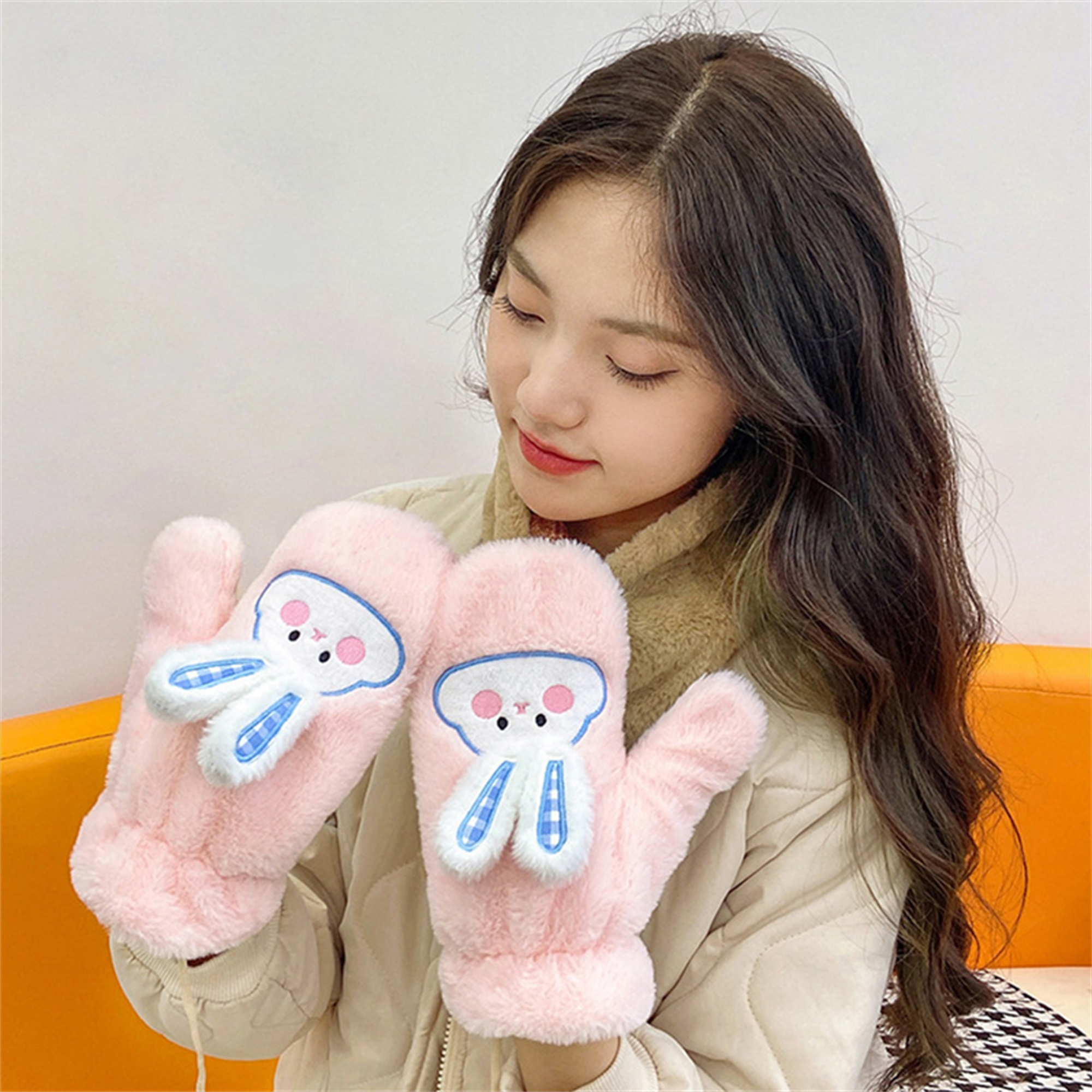 Women's Winter Mittens | Cute Rabbit Design Fleece Gloves | Pink Cotton Blend with Bunny Ears and Face | Plush Warmth for Cold Weather | Non-Stretch, Hand Washable | Cozy Outdoor Accessory