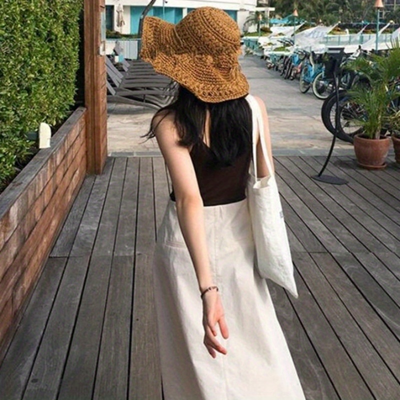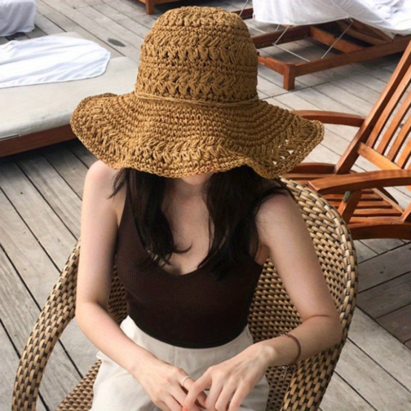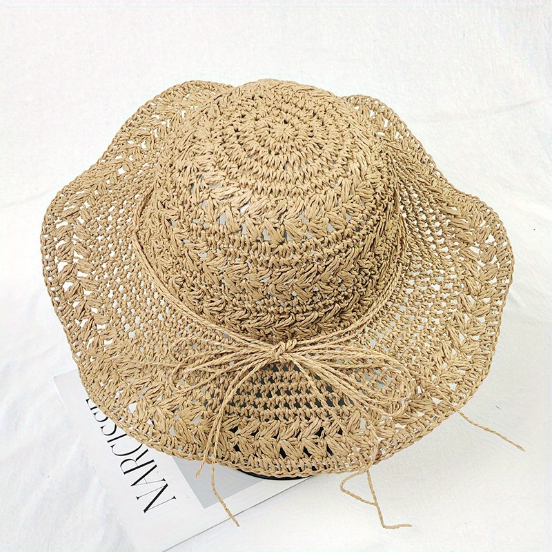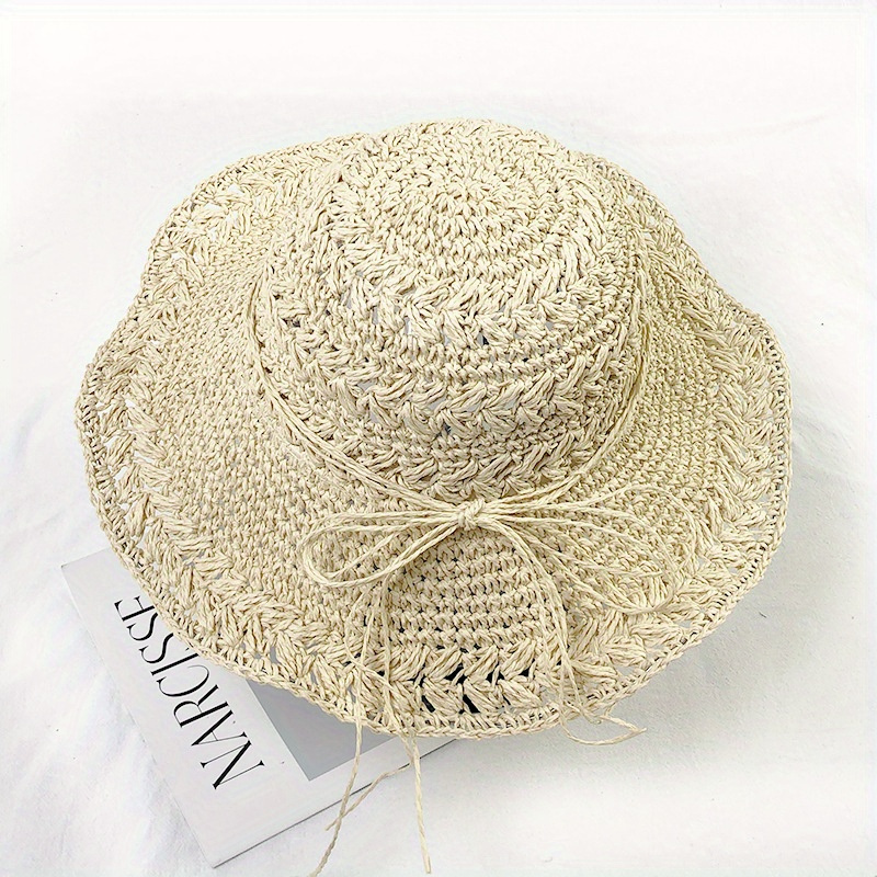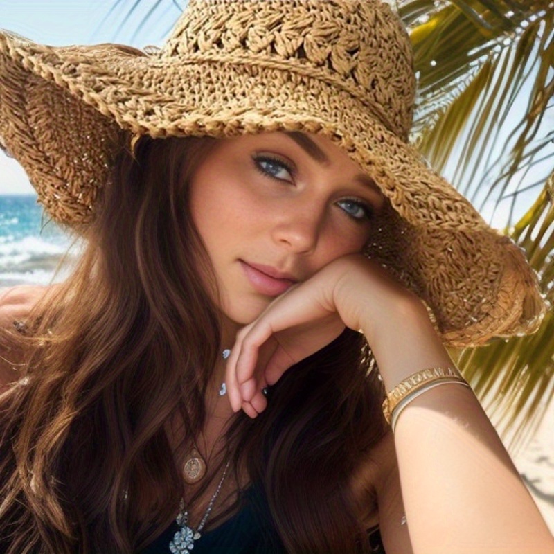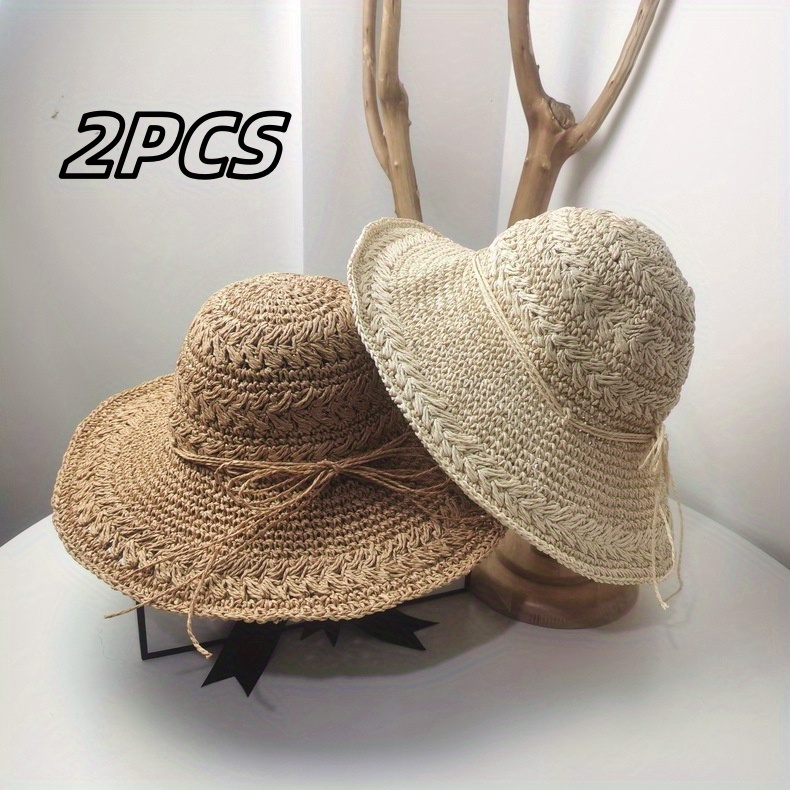 2pcs Handmade Linen Sun Hats for Women, Summer Beach Straw Hat with Wide Brim, Artistic Fresh Outdoor Foldable Sun Protection Cap, All-Season Inelastic Weave, Hand Wash Only, Beach Sun Protection | Natural Style Hat | Texture