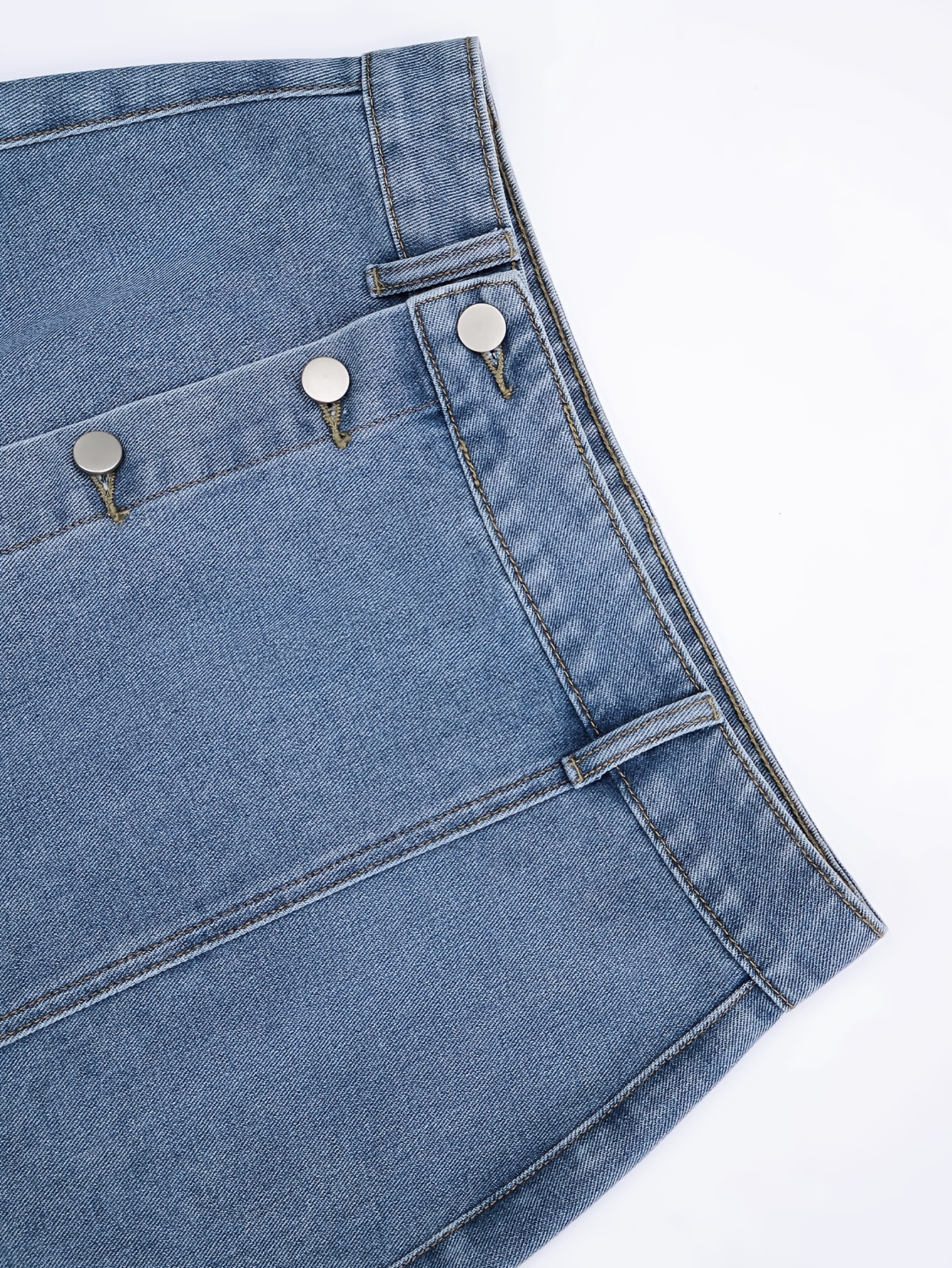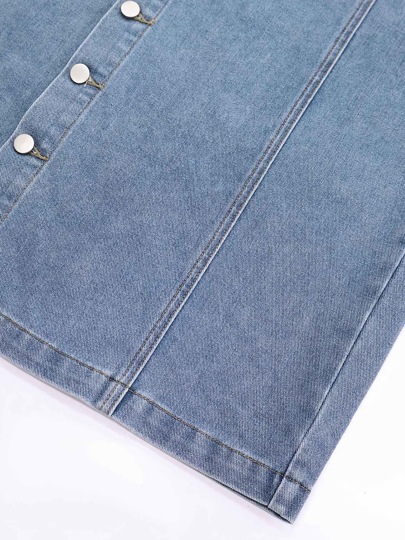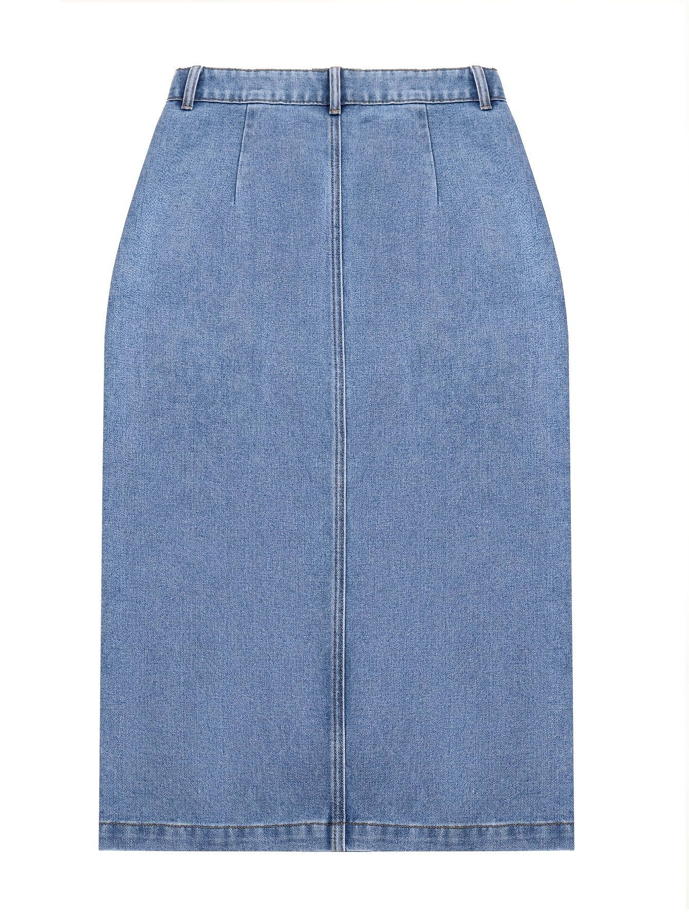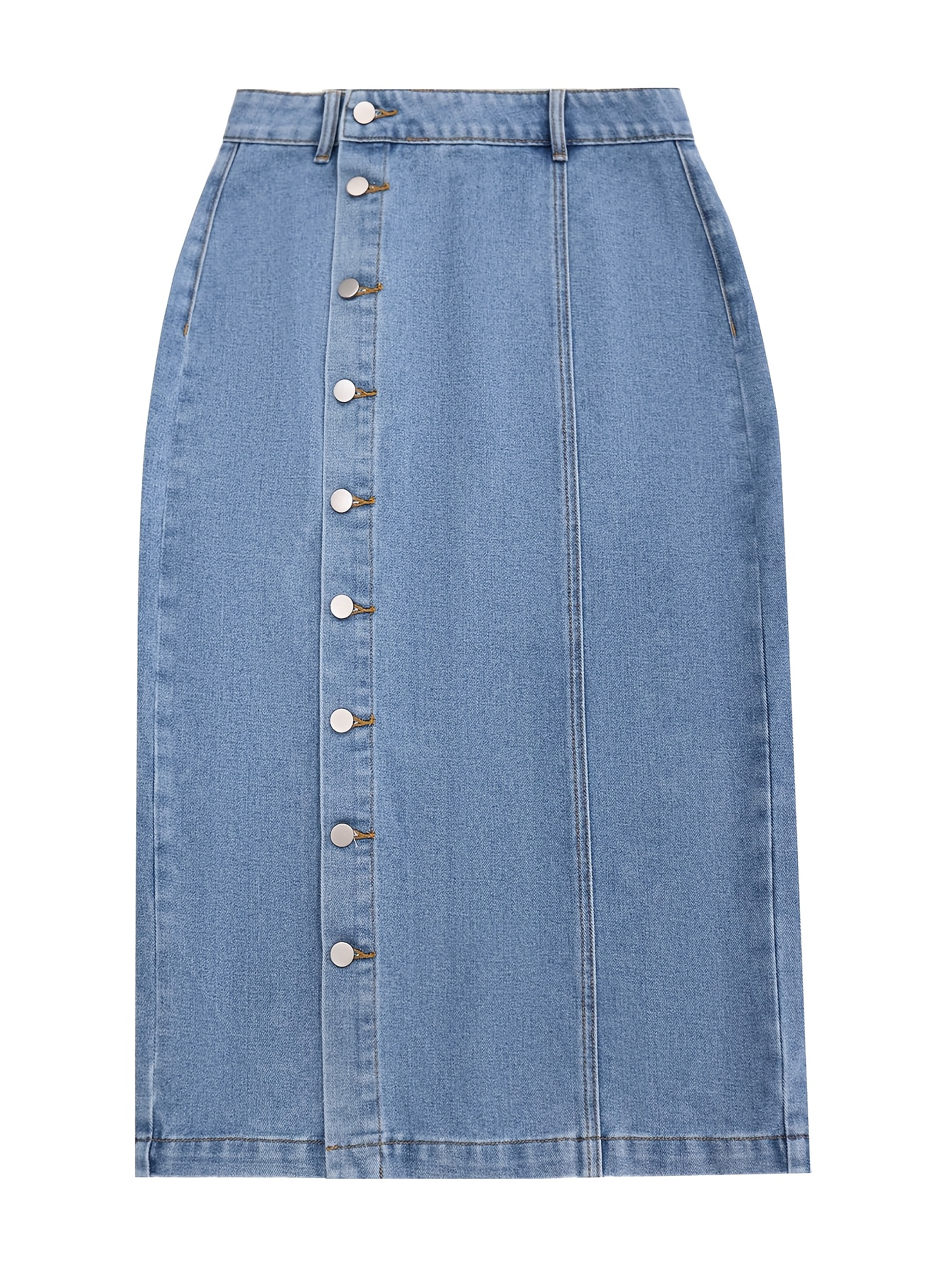 1pc NVFelix Women'S Casual Denim Midi Skirt, Front Button Detail, Solid Color, Non-Stretch, Straight Cut, Woven Fabric, for Spring/Summer/Autumn