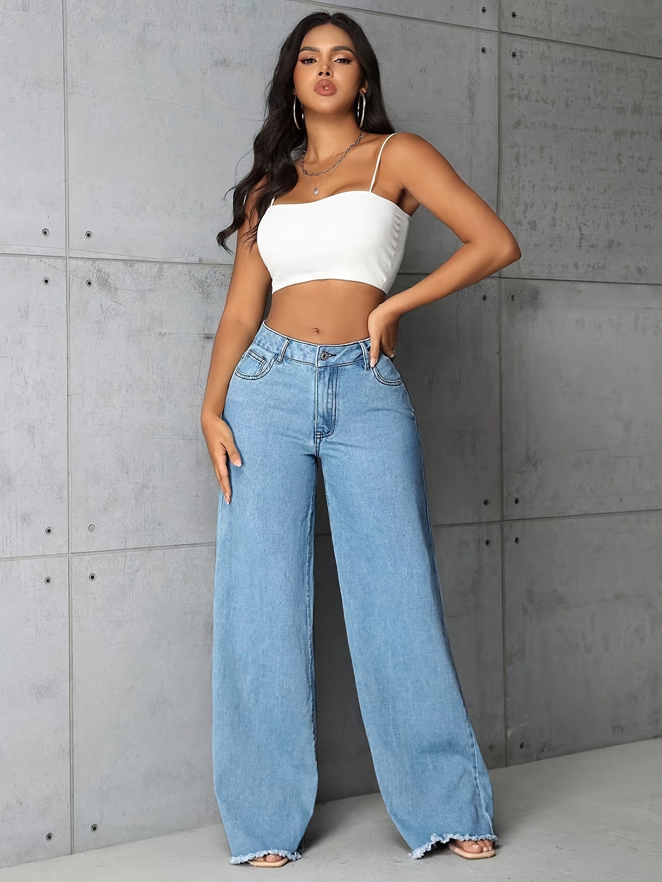 Women'S Low Rise Wide Leg Jeans Raw Hem Straight Baggy Denim Pants Casual Loose Boyfriend Mom Jean Trouser
