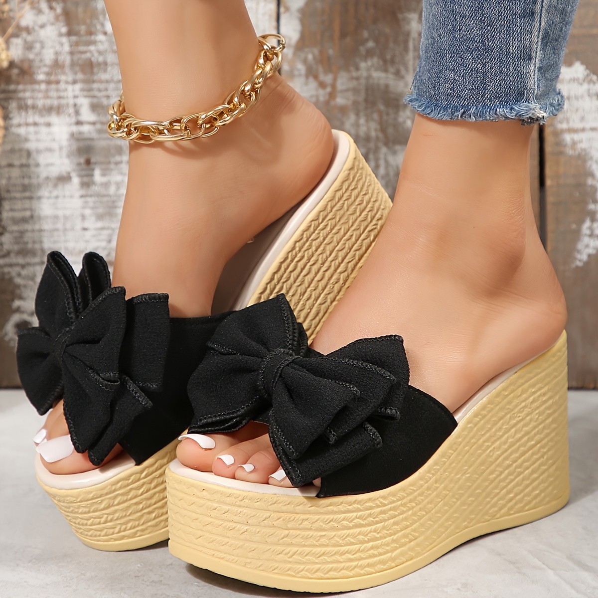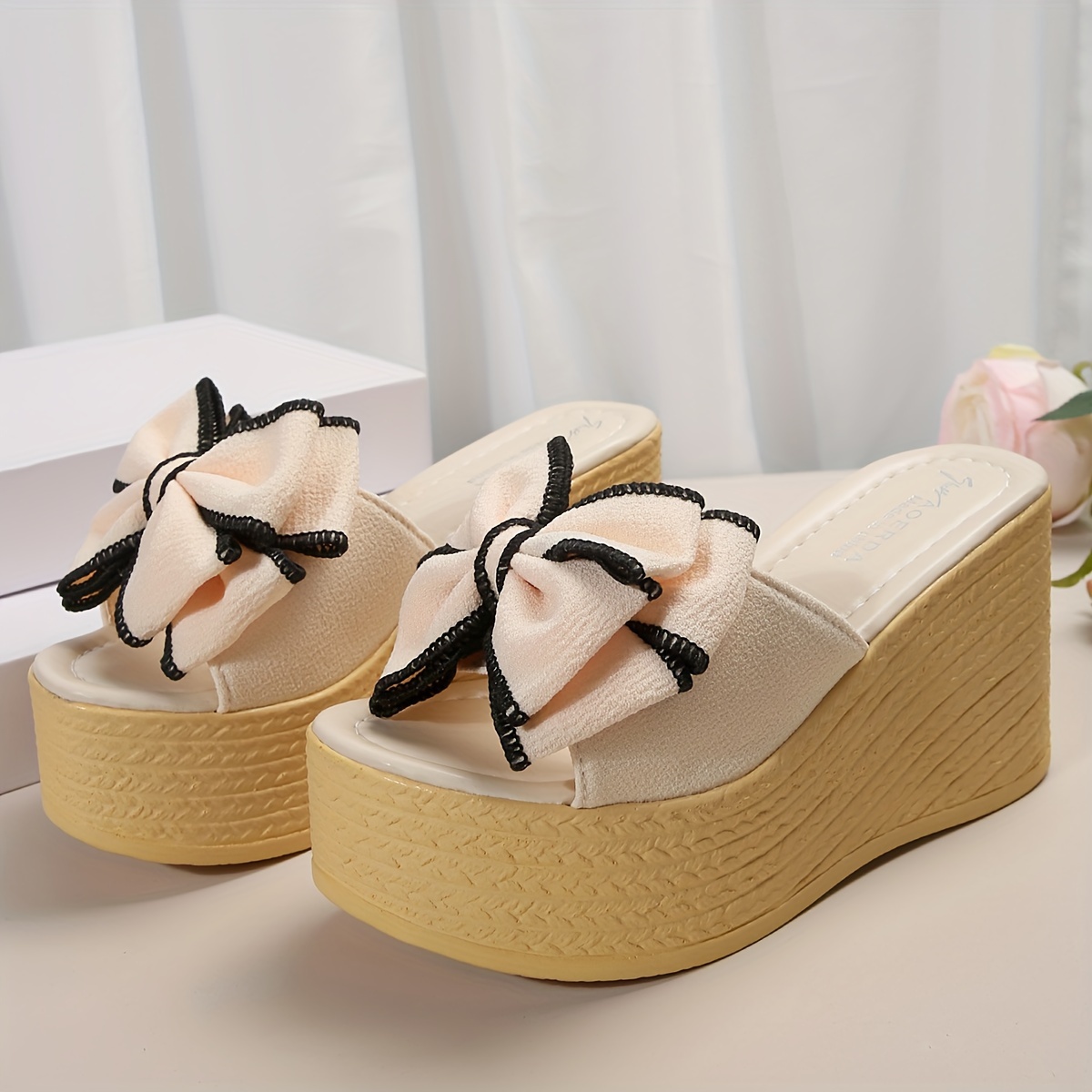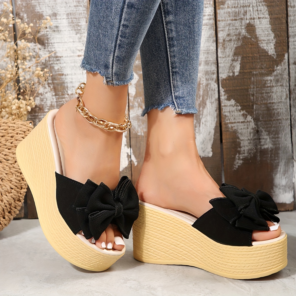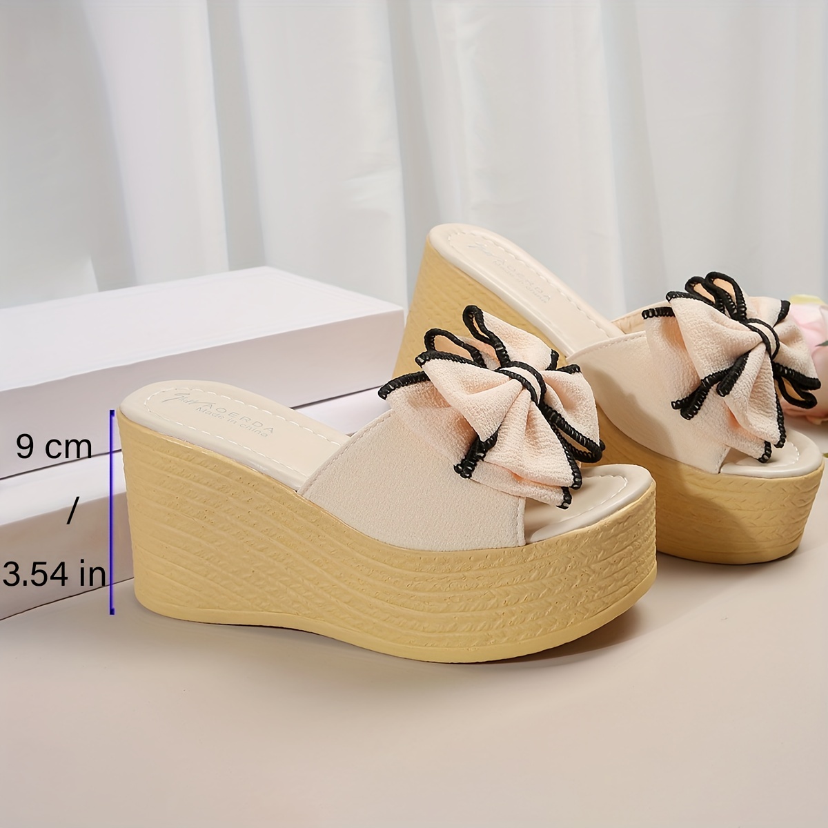 Chic Bowknot Adorned Women's Sandals - Easy Slip-On, Elevated Comfort Platform, Summer Beach-Ready Wedge Slides with Non-Slip Sole for Leisure and Vacation