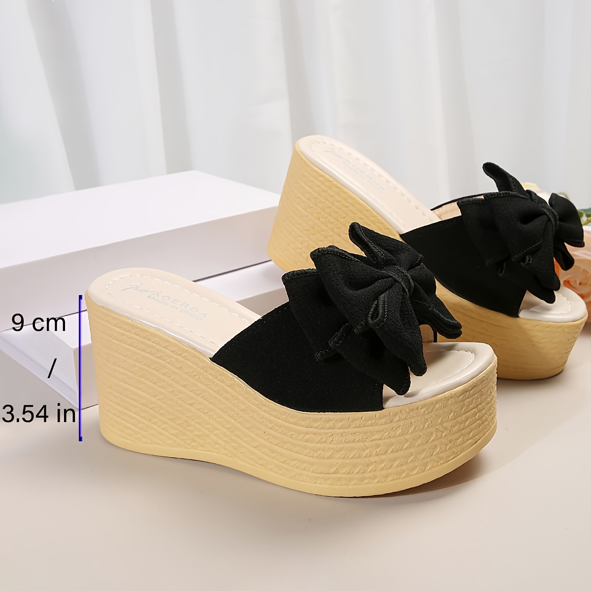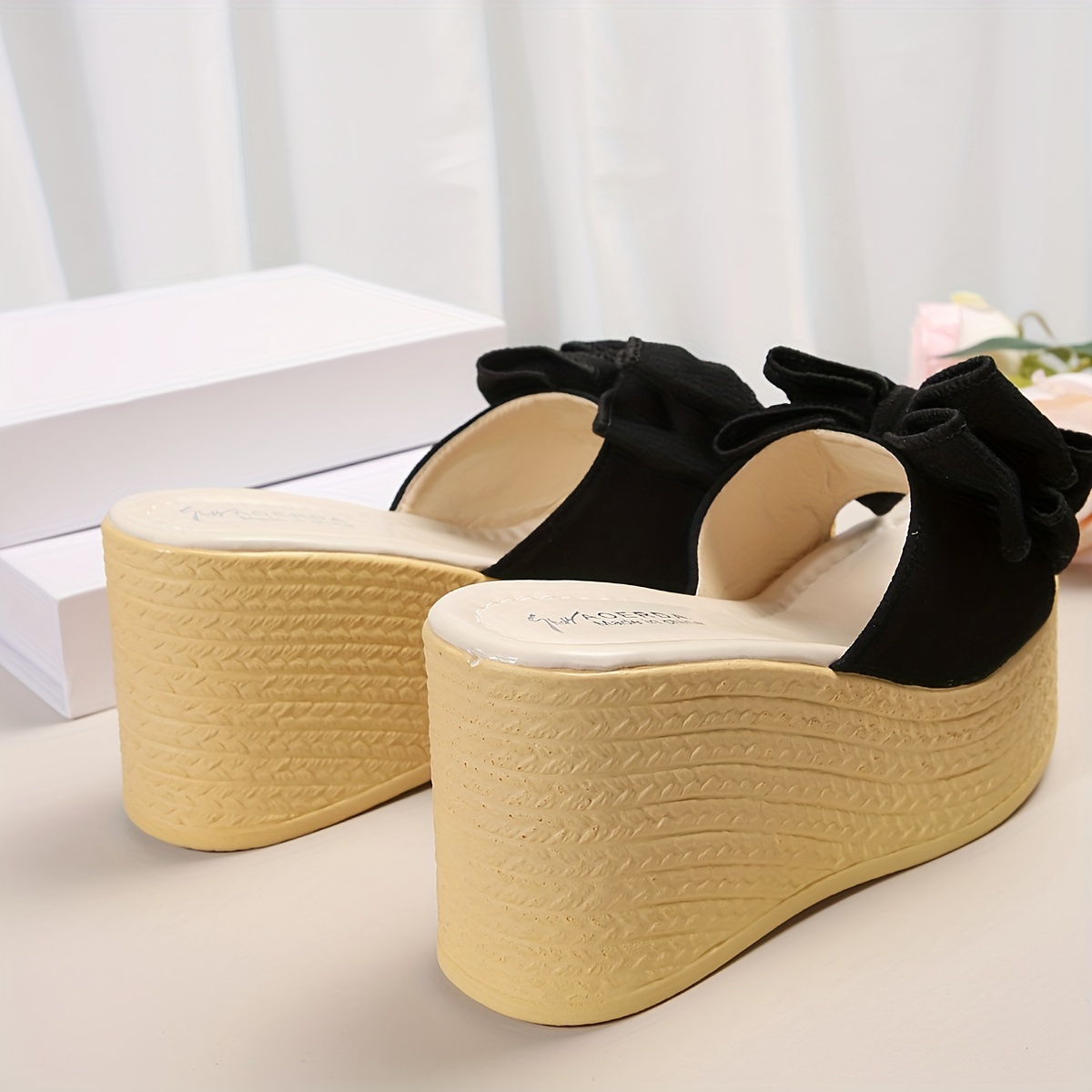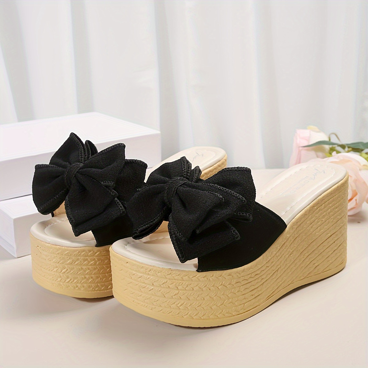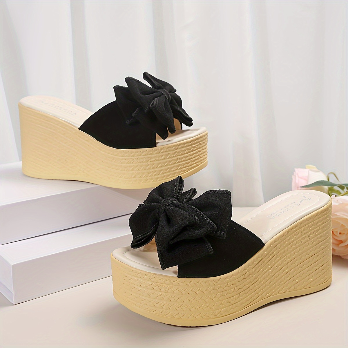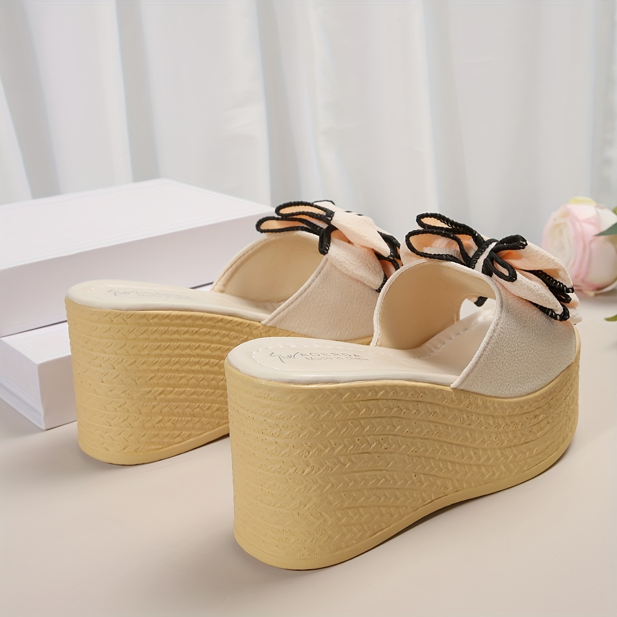 Chic Bowknot Adorned Women's Sandals - Easy Slip-On, Elevated Comfort Platform, Summer Beach-Ready Wedge Slides with Non-Slip Sole for Leisure and Vacation