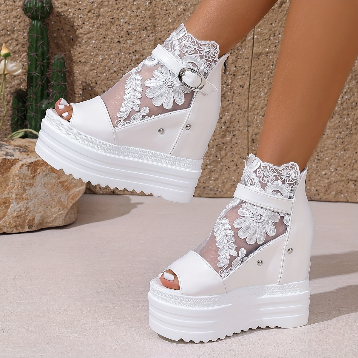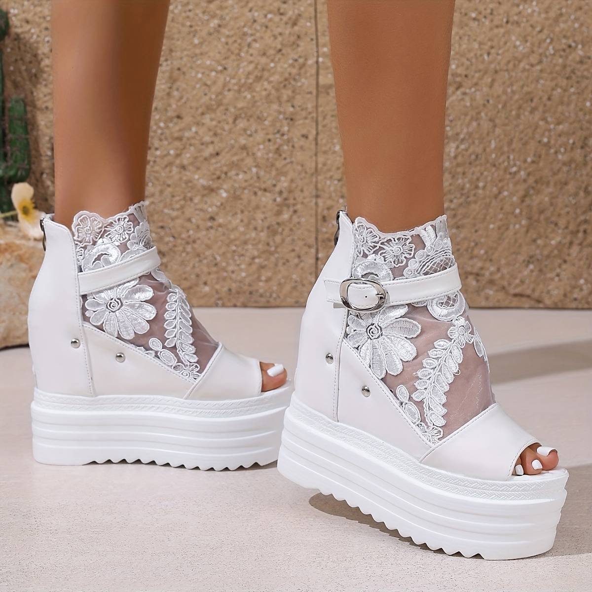 Chic Summer 2024 Women's Platform Wedge Sandals with Peep Toe Design - Breathable Mesh, Lace-Up Back Zipper, Faux Cover & Fabric Upper, Comfortable Thick Sole Heels for Outdoor Wear