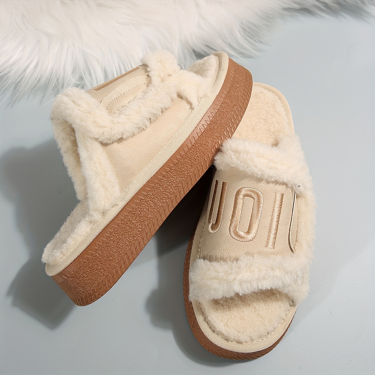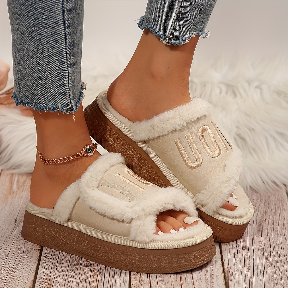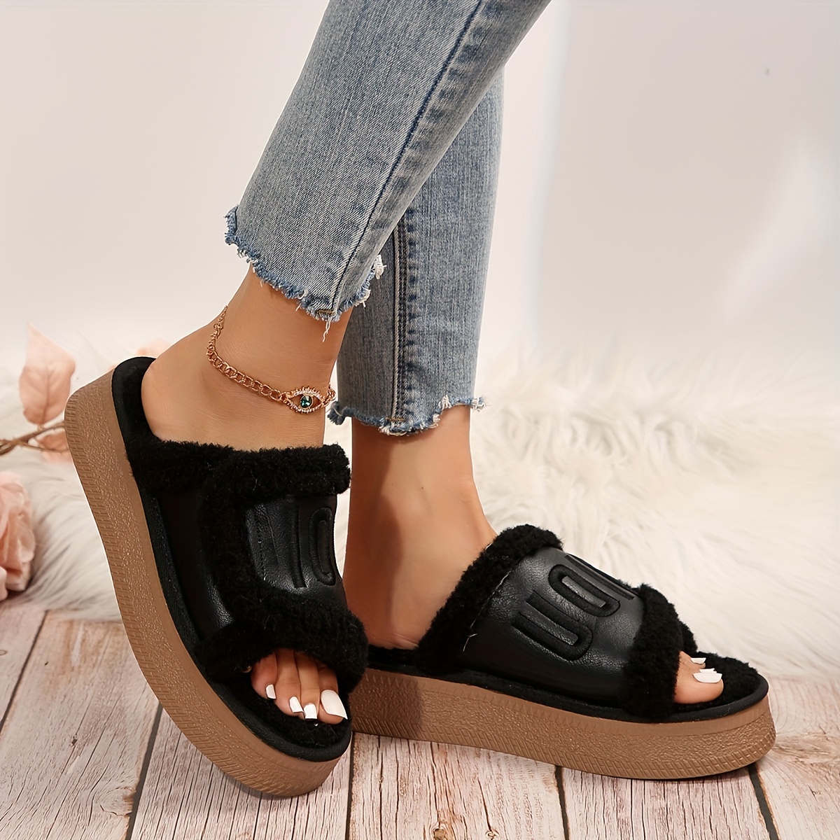 Fashionable Chunky Platform Slippers with Faux Fur for Indoor Comfort - Women's Home Slippers - Cozy & Stylish - Soft Faux Fur Lining - Perfect for Lounging & Relaxing - Ideal Gift for Women