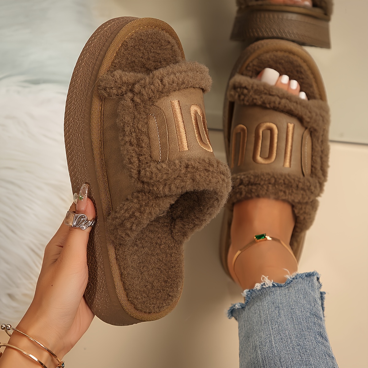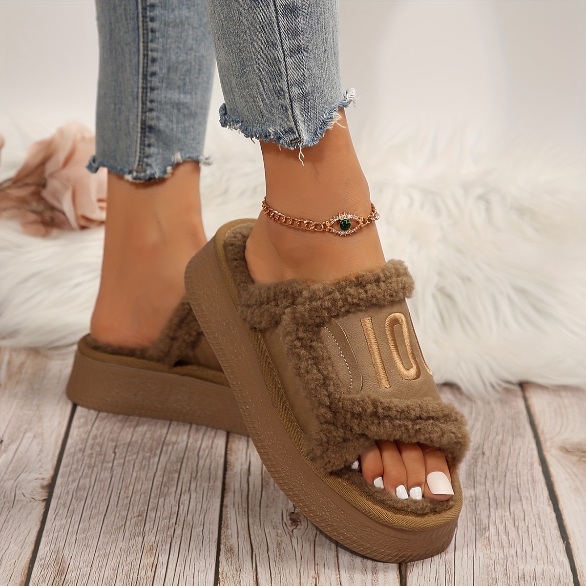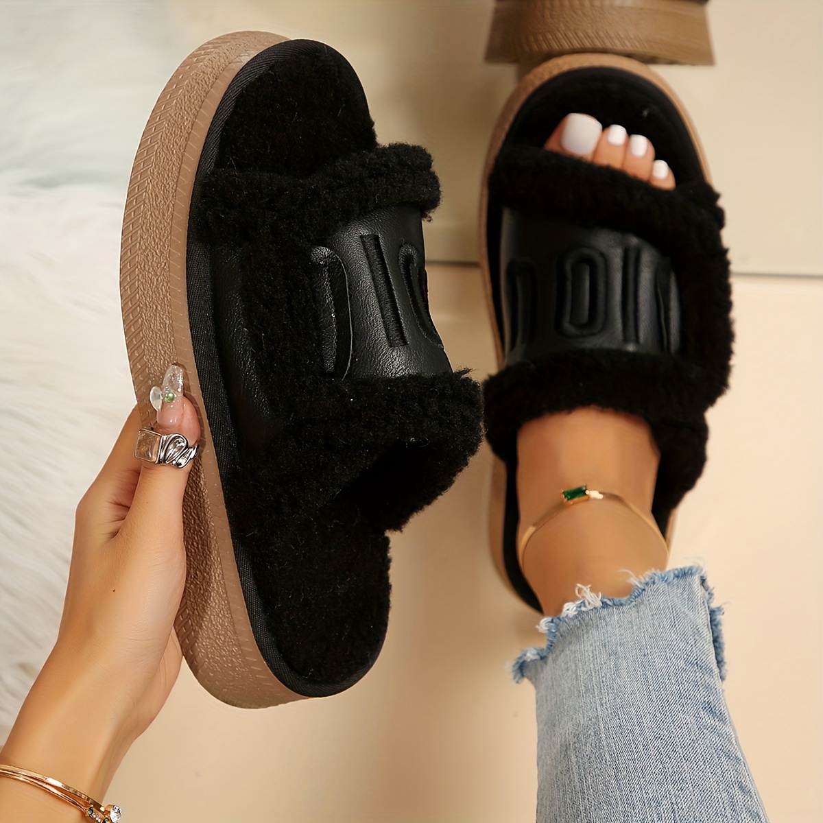 Fashionable Chunky Platform Slippers with Faux Fur for Indoor Comfort - Women's Home Slippers - Cozy & Stylish - Soft Faux Fur Lining - Perfect for Lounging & Relaxing - Ideal Gift for Women