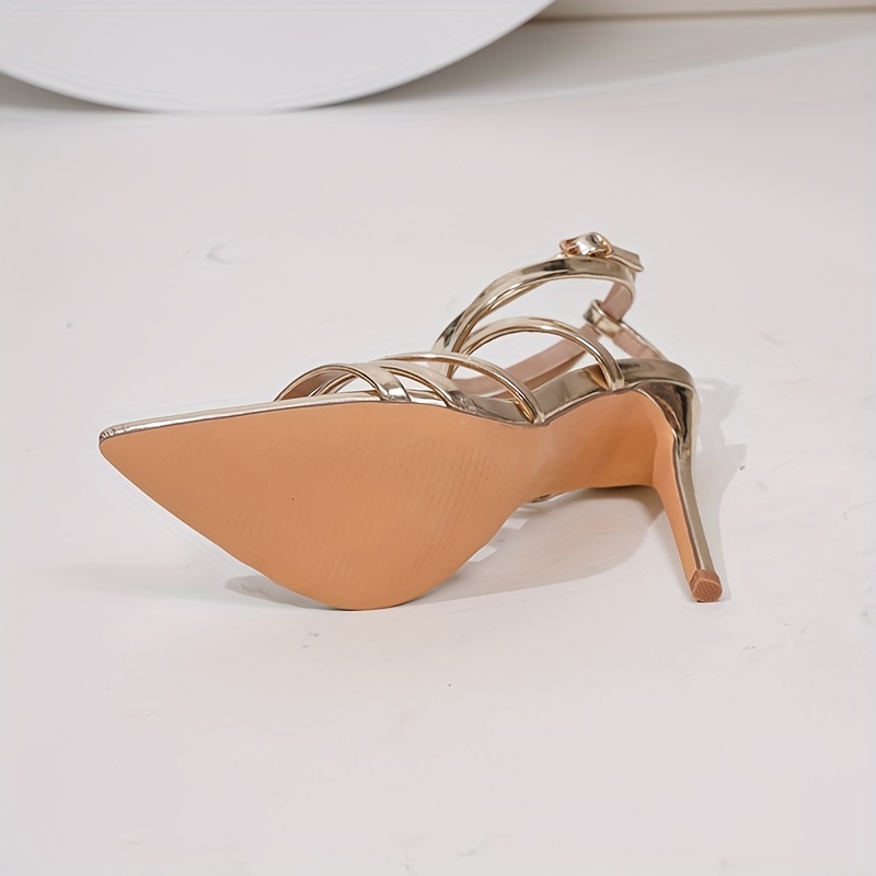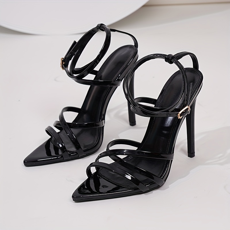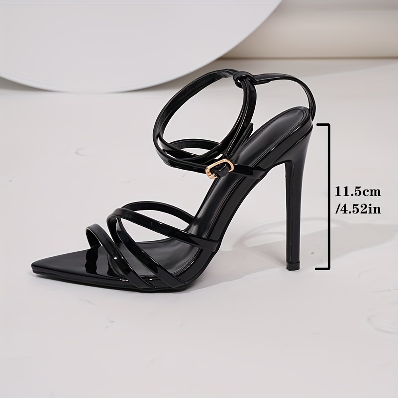 Mei Oi Women's Summer Sandals - Pointed Toe Stiletto Heel Ankle Strap High Heels with Buckle Closure, Black Synthetic Cover Dress Shoes for Parties & Formal Events, Party Footwear | Sleek Stiletto Design | Durable Rubber Sole