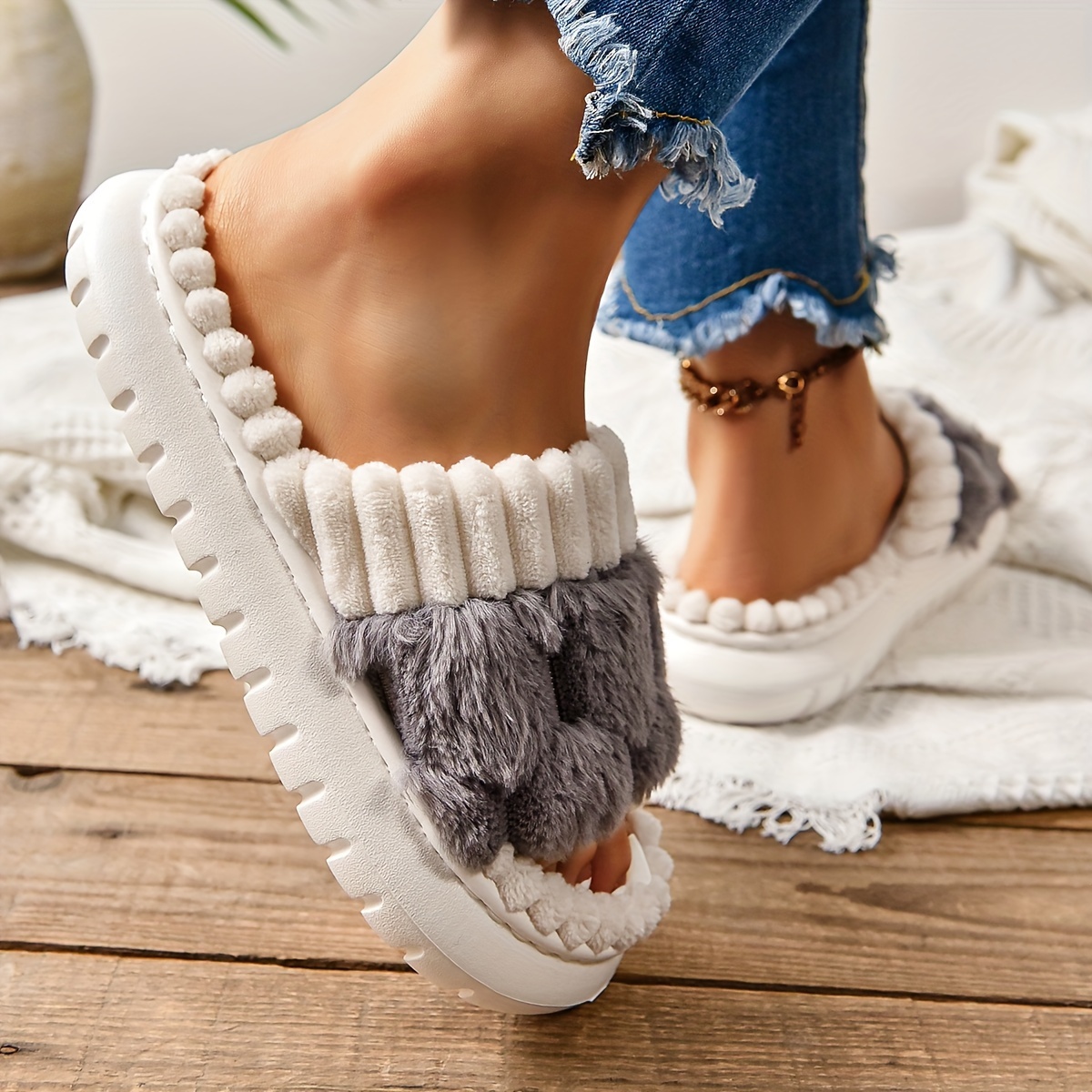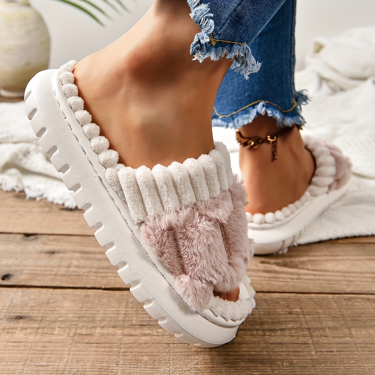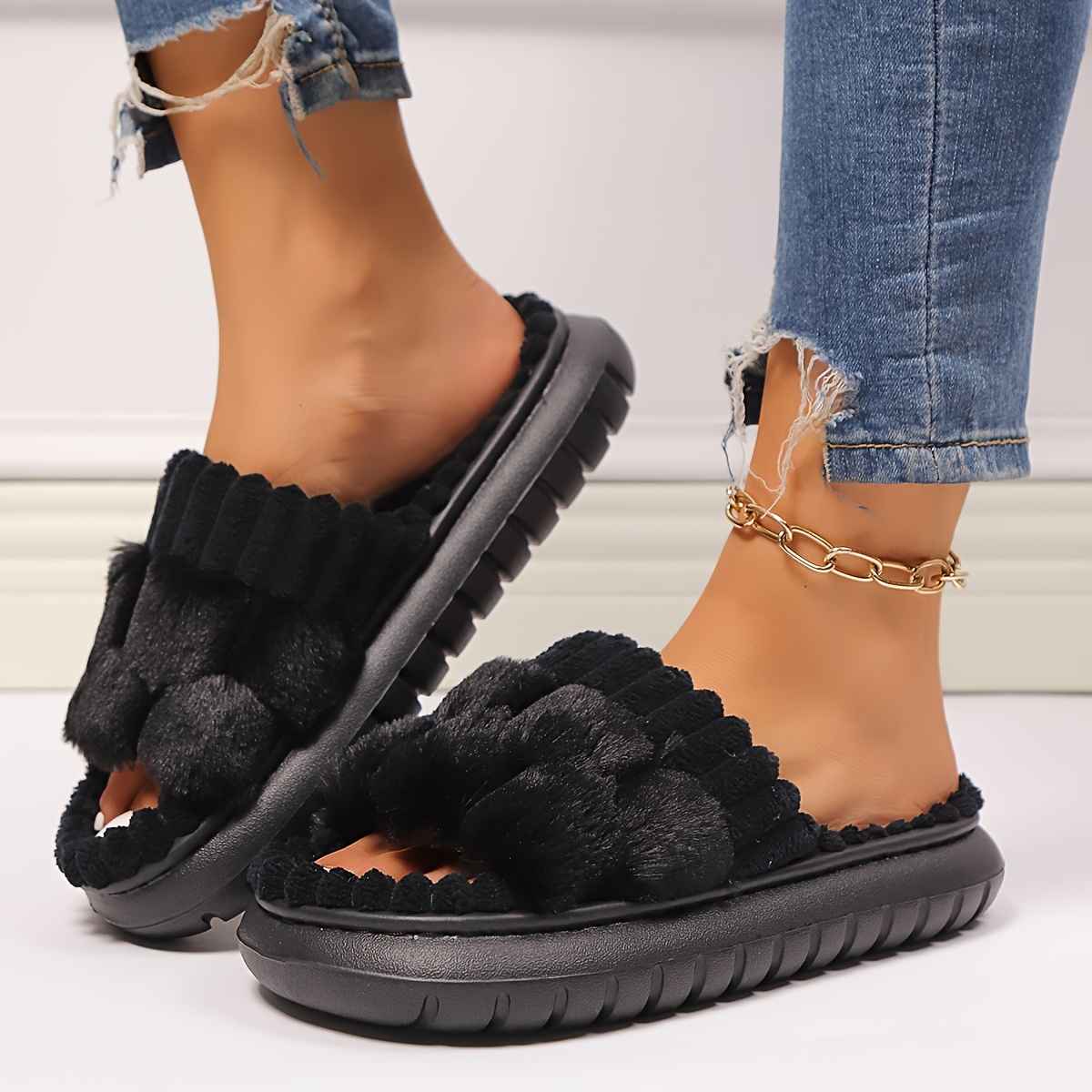 Simple Platform Slippers, Casual Open Toe Plush Shoes, Comfortable Indoor Home Slippers