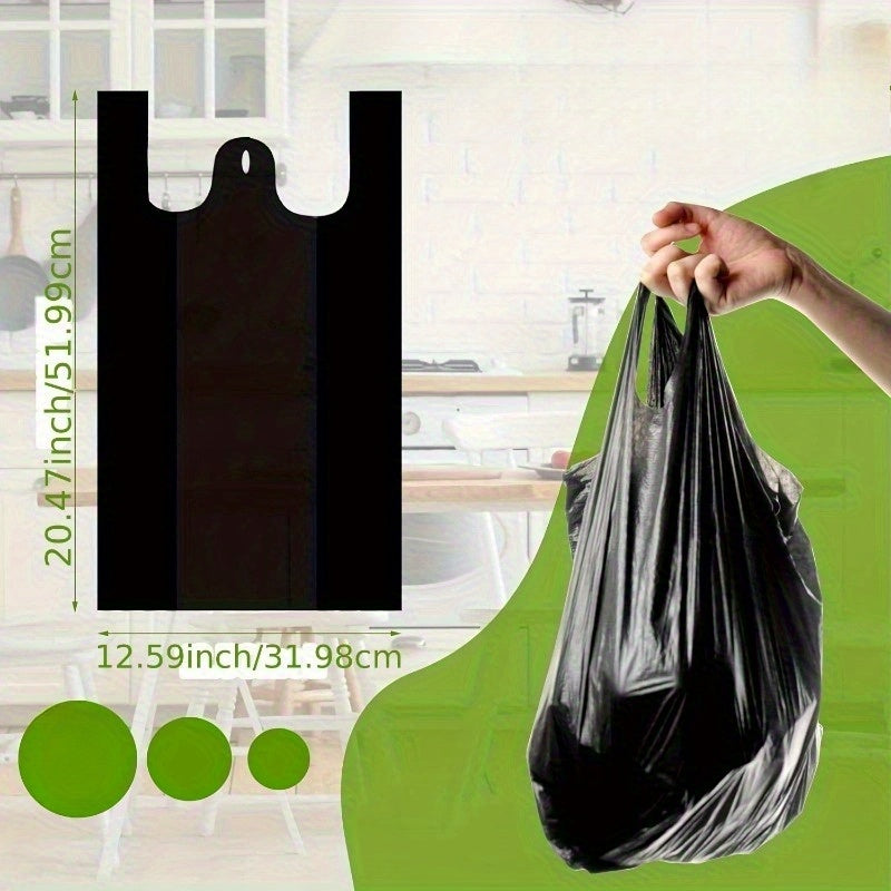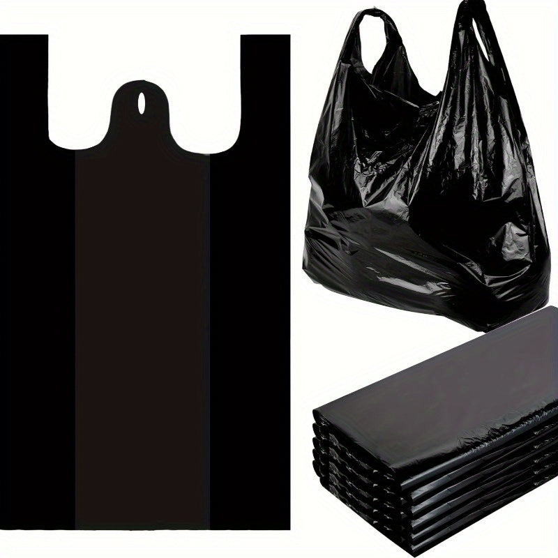 100pcs Black Plastic Bags with Handles, Large Black Supermarket Bags, Black T-Shirt Shopping Bags, Wholesale 20.5"X12.6", 35 Micron Heavy Duty