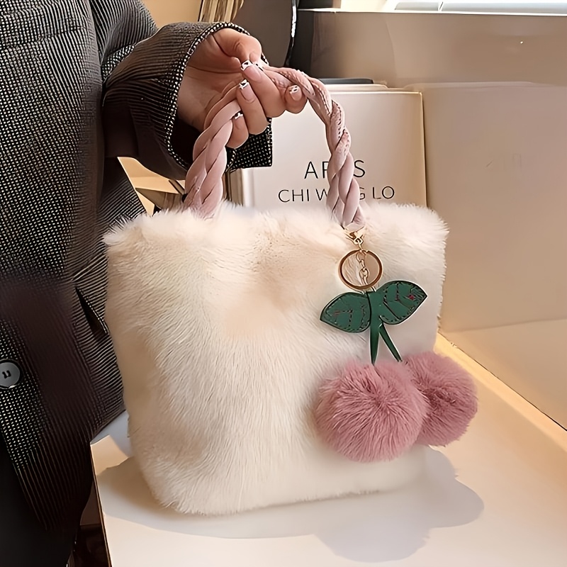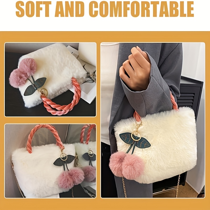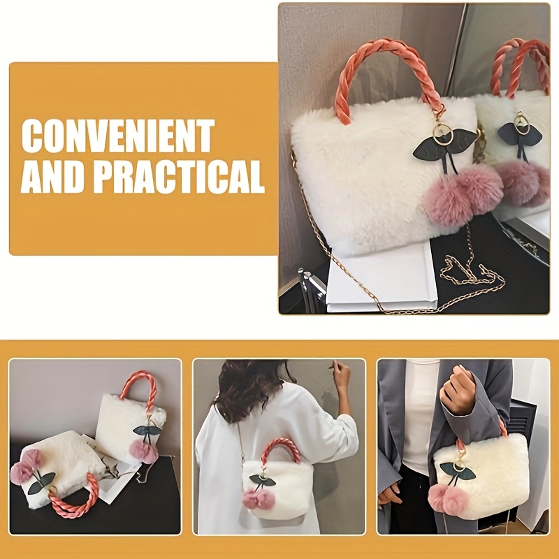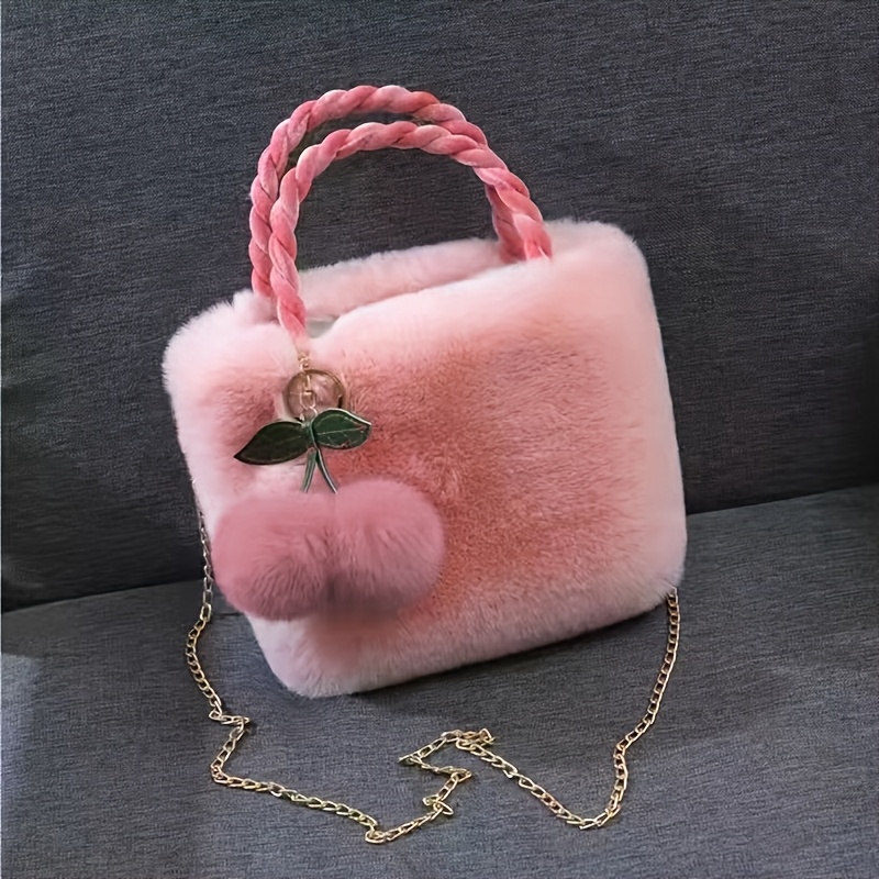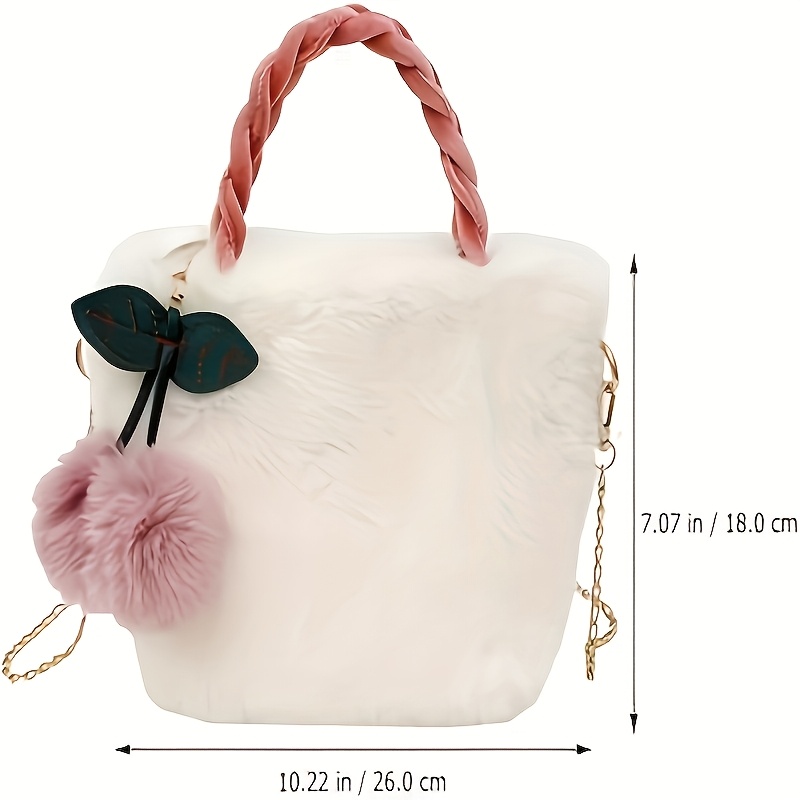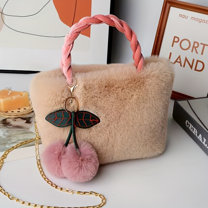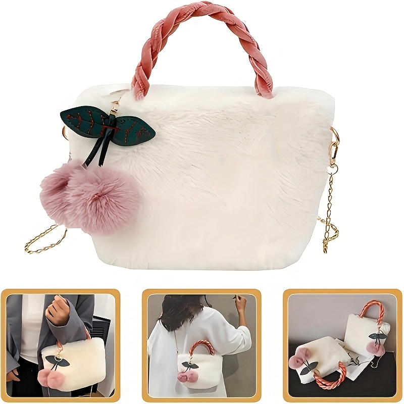 1pc Women's Preppy Synthetic Crossbody Bag With Detachable Chain Strap, Buckle Closure, Wristlet and Plush Cherry Pendant - Unlined, Edge Painted, Perfect for Gifts and Birthdays | Removable Strap | Dry Clean Only