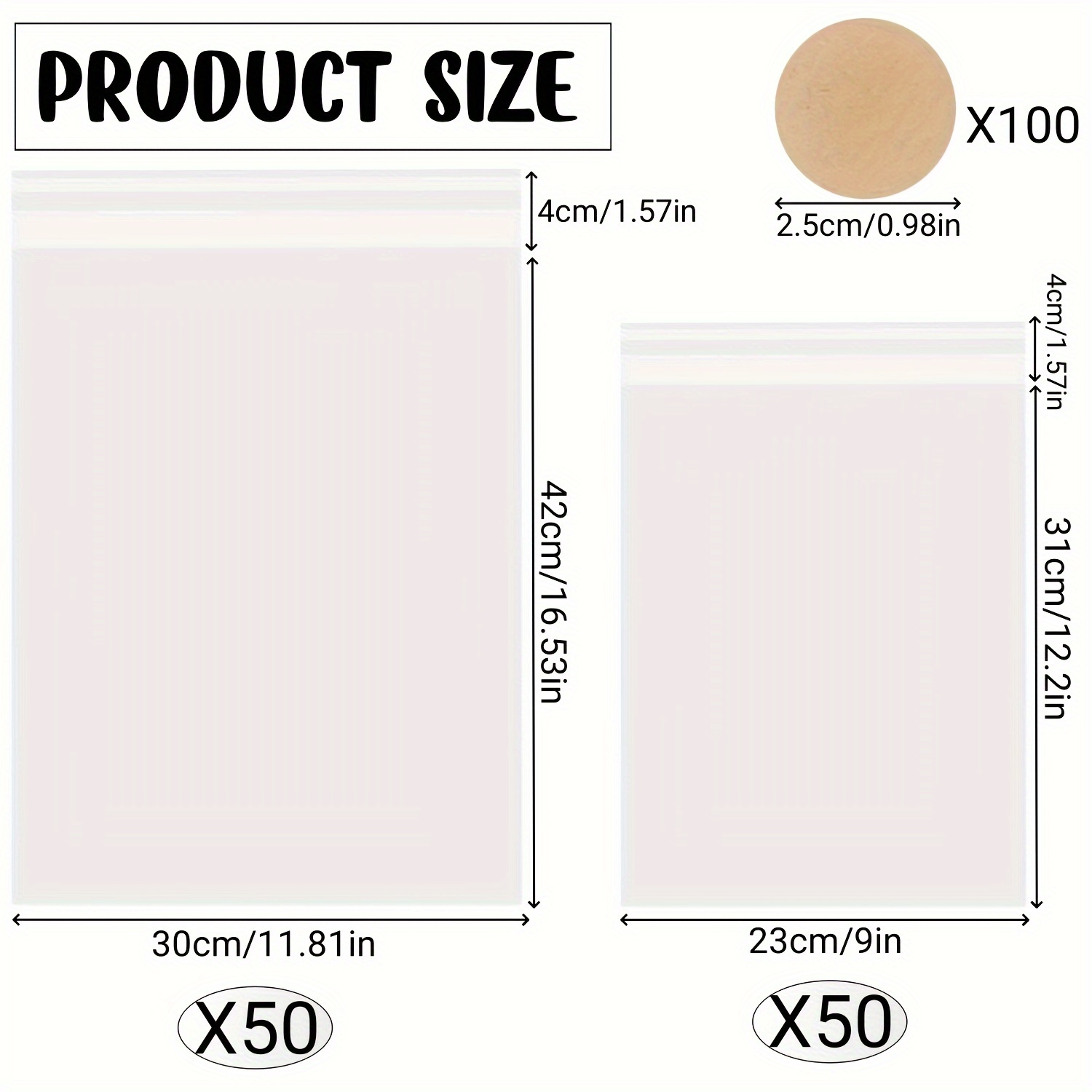200-Pack Assorted Self-Seal Bags with 100 Labels, 50 Large & 50 Small, Thickened Plastic Bags for Clothing & Shoes, Animal & Snowflake Themed, Office & Gift Packaging Supplies