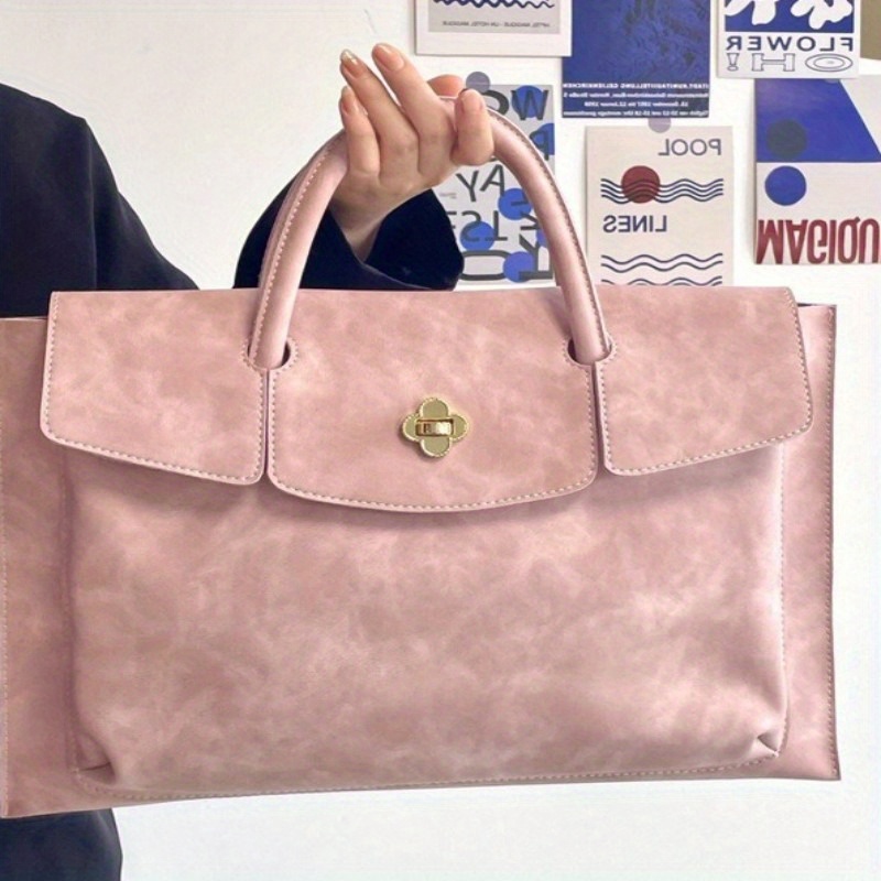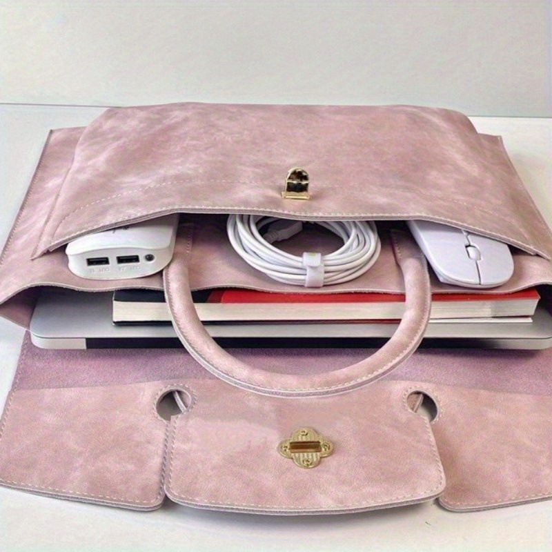 Pink Laptop Tote Bag for Women, Lightweight 13-16 Inch MacBook/ Notebook Bag with Metal Clasp, Stylish Work Commute Shoulder Bag for Office, College, Travel (Fits 13/ 14/ 15.6/ 16 Inch Laptops)