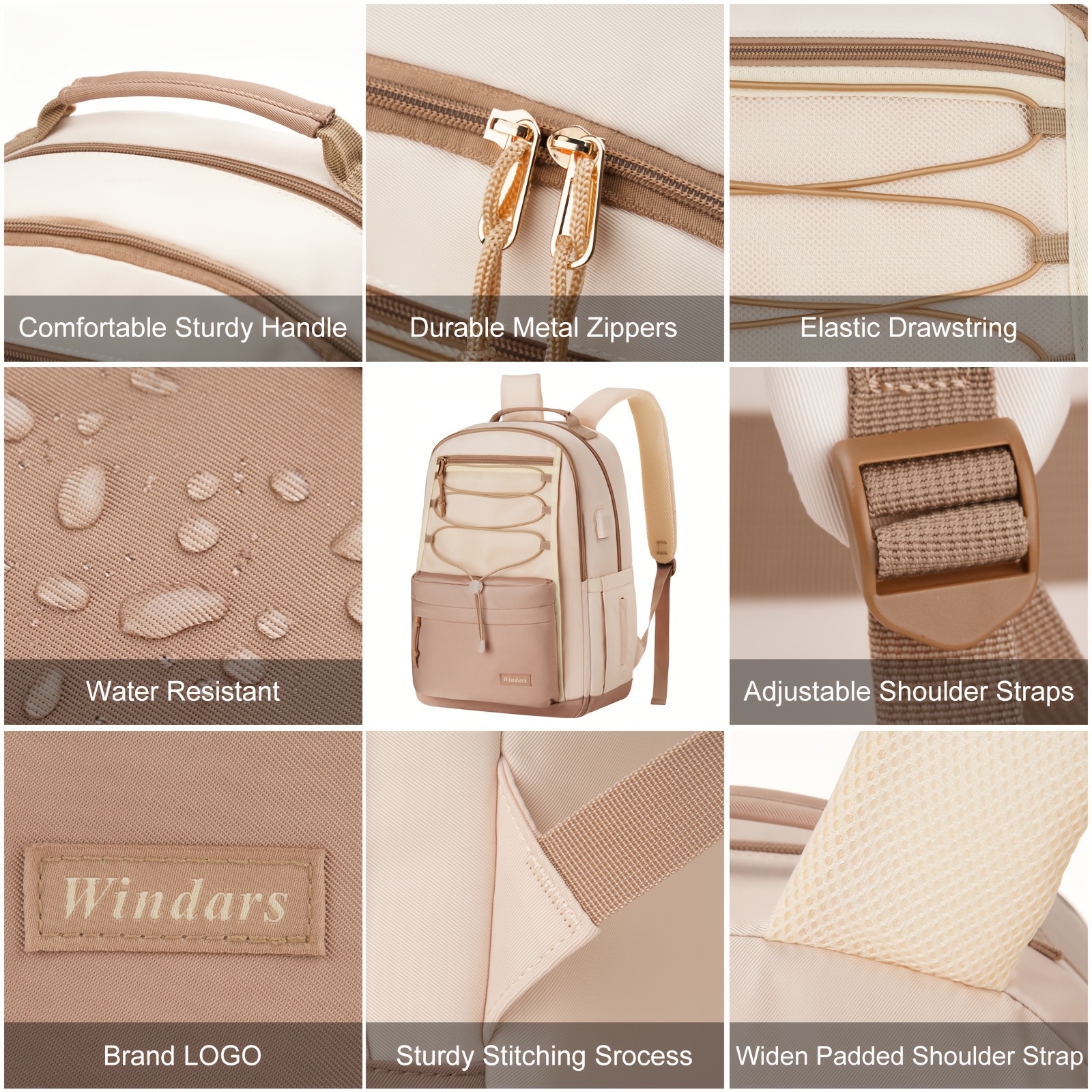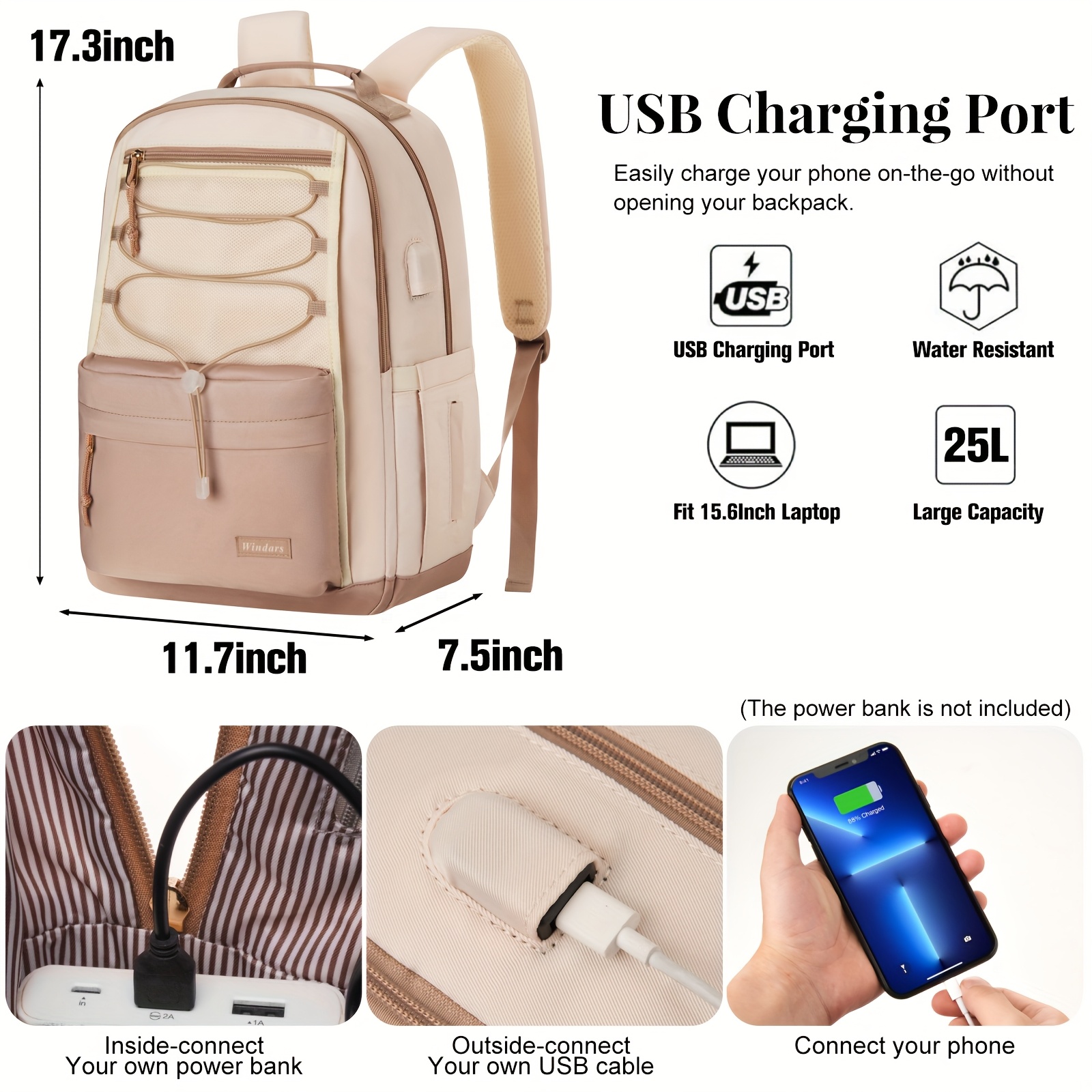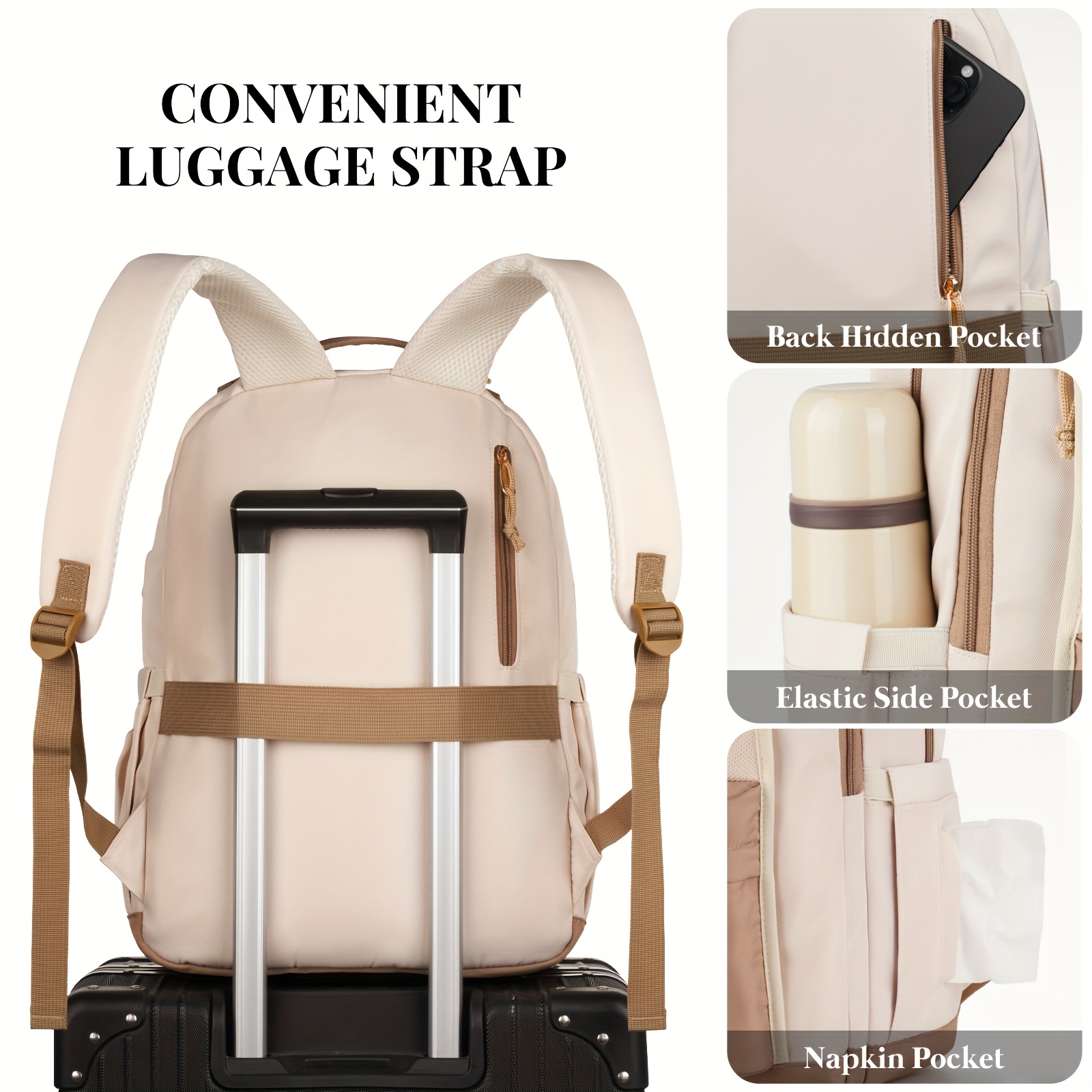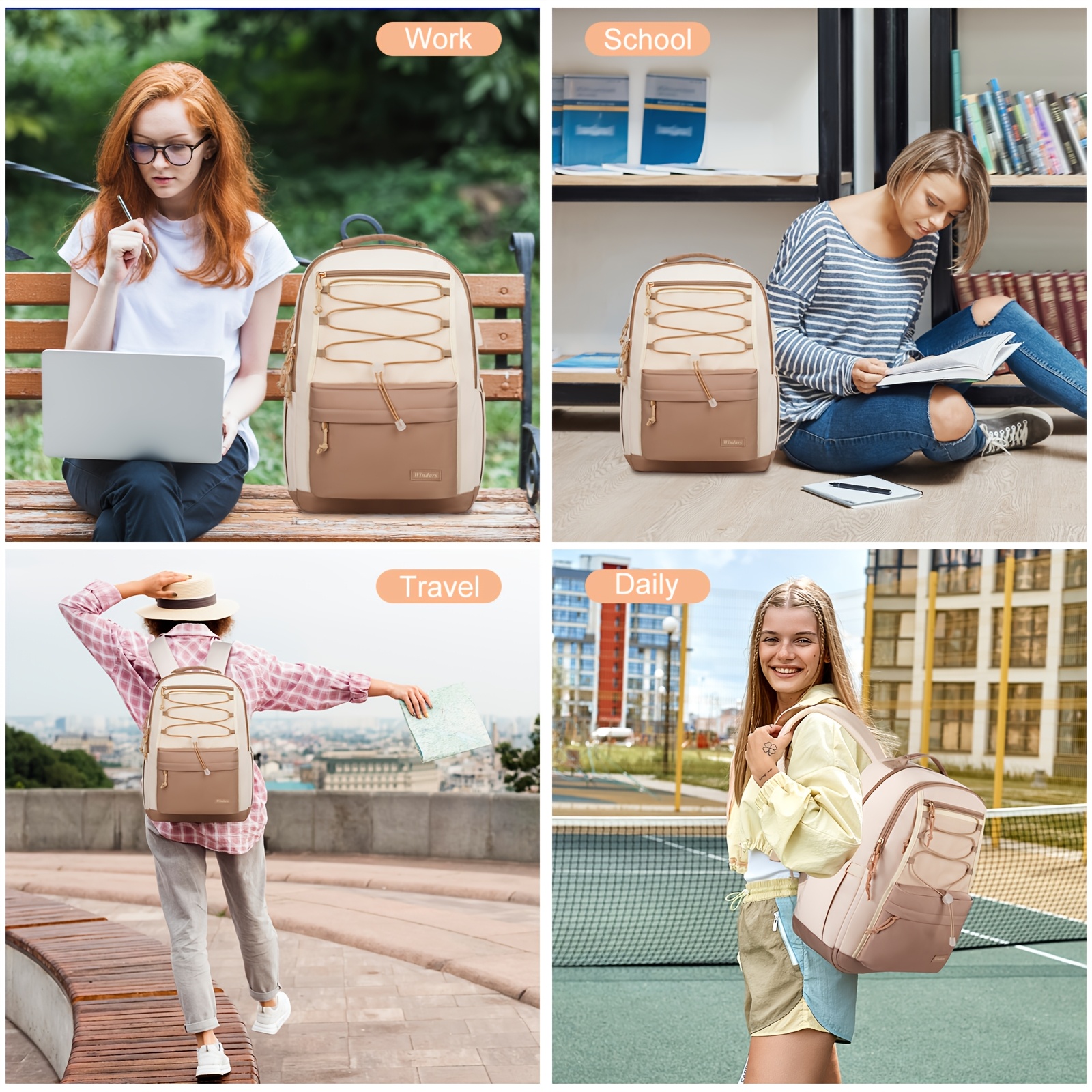 Stylish Large Capacity School Backpack for Teens Girls & Women Students - 15.6 Inch Laptop Bag with USB Charging Port, Durable Polyester College Bookbag, Khaki/Beige Travel Backpack for Work & Daily Commute, Backpack for Scho
